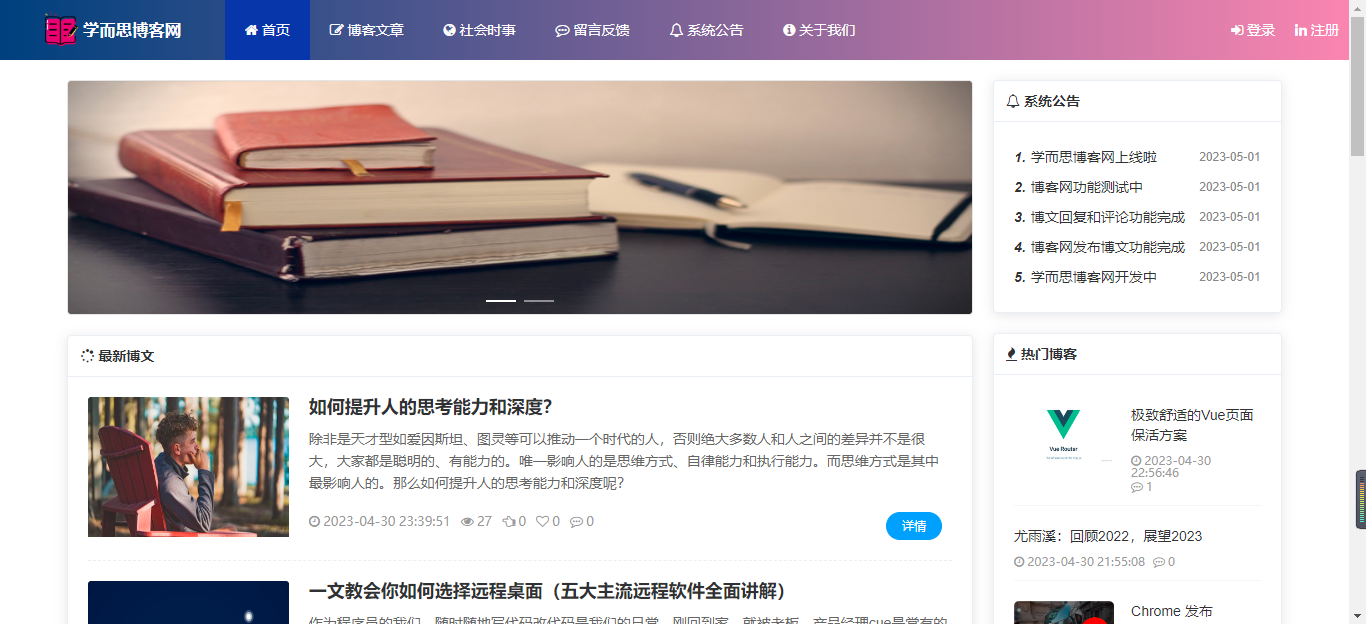 项目介绍:使用java+springboot+mysql开发的高校社团网,系统包含管理员、学生角色,功能如下:管理员:登录系统;首页;用户管理;社团分类管理;社团信息管理(社团审核);系统留言;系统公告;友链管理;系统配置;修改个人信息;修改密码。学生:主要是前台网站功能,包含首页;社团中心(查看所有社团、收藏、申请加入社团、参加社团活动);系统公告;系统留言;关于我们。学生还有个人中心功能,包含:基本信息、头像、密码修改;我的社团管理;入团审核;我加入的社团;我发布的活动管理;我报名的活动;我的收藏;我的留言。系统界面美观大方,功能丰富,使用了springboot、jquery、ajax、layui等技术栈,适合作为毕业设计、课程设计,有需要可提供指导。开发工具:idea+jdk1.8+mysql5.7.24部分截图: -