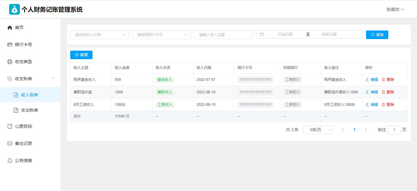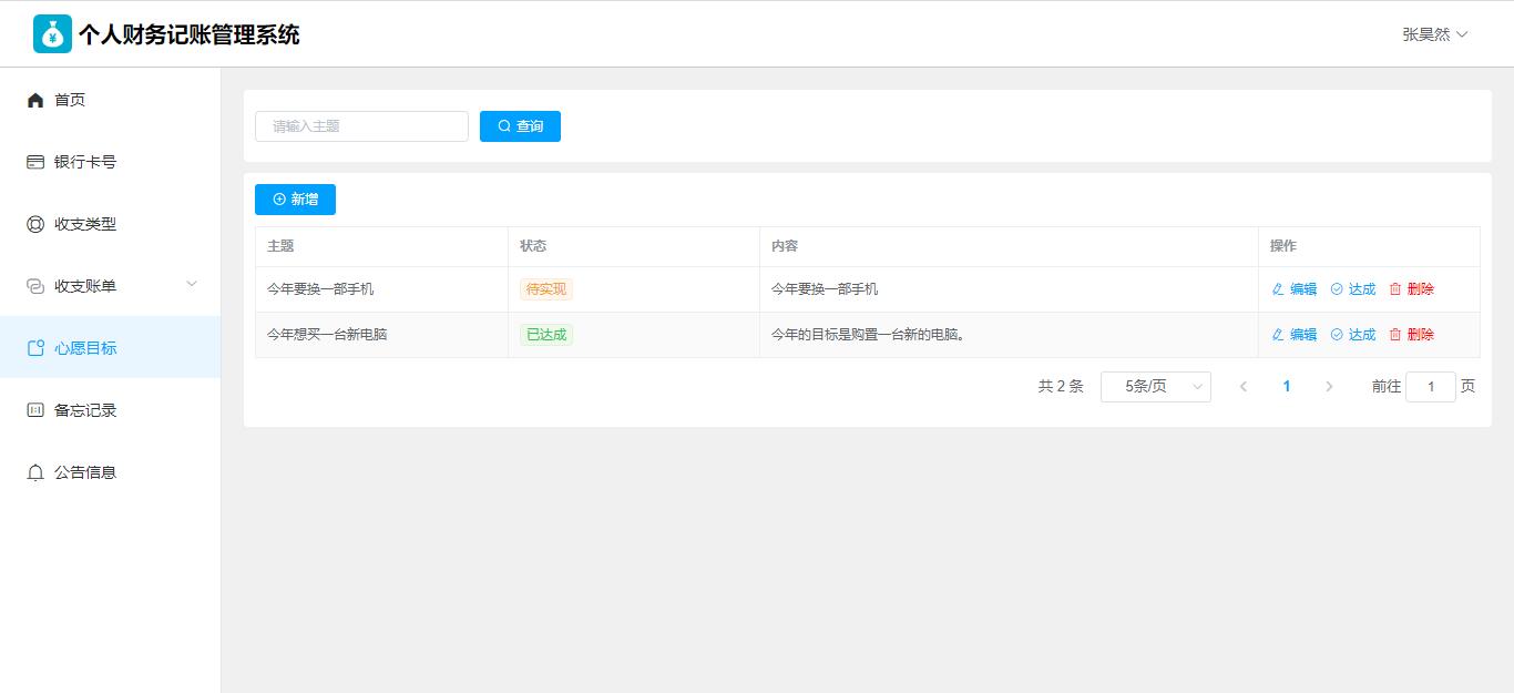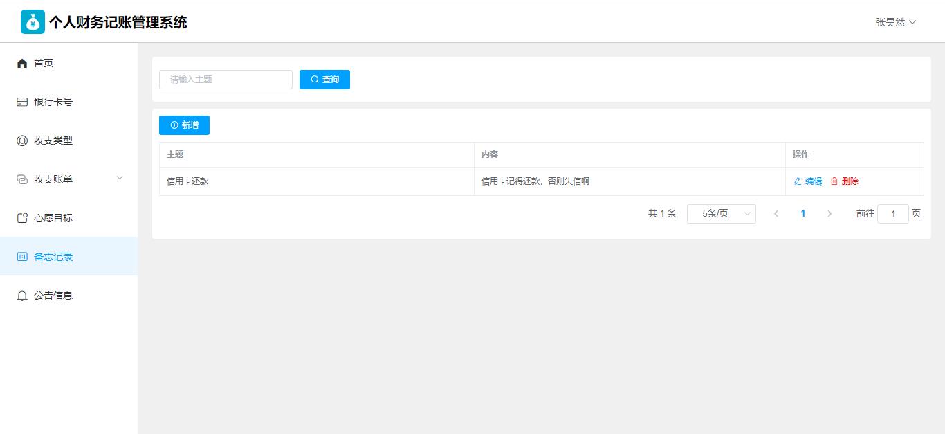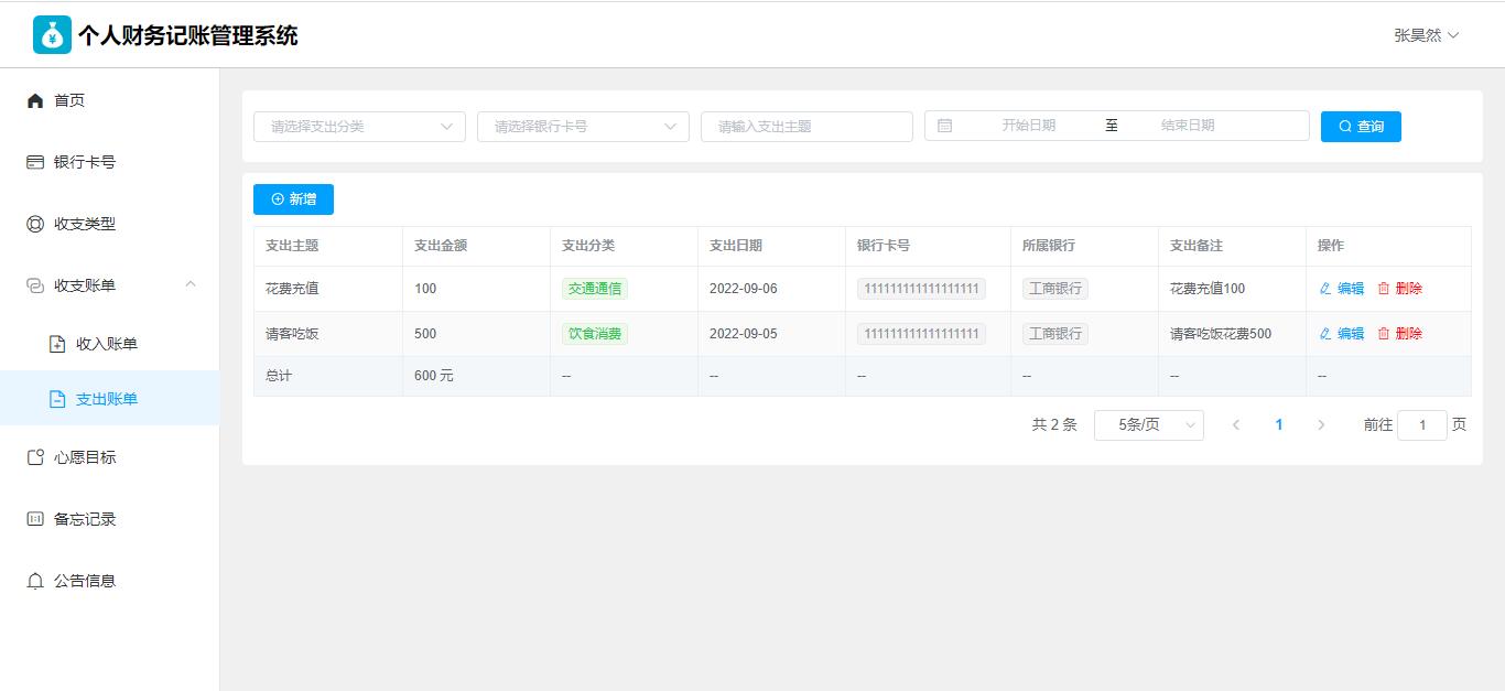 基于SpringBoot+Vue前后端分离的个人财务记账管理系统,本人原创开发。