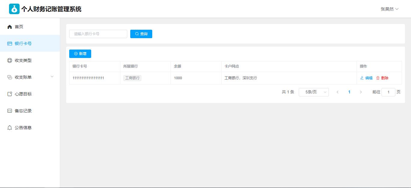 基于SpringBoot+Vue前后端分离的个人财务记账管理系统,系统包含管理员、用户角色,功能如下: