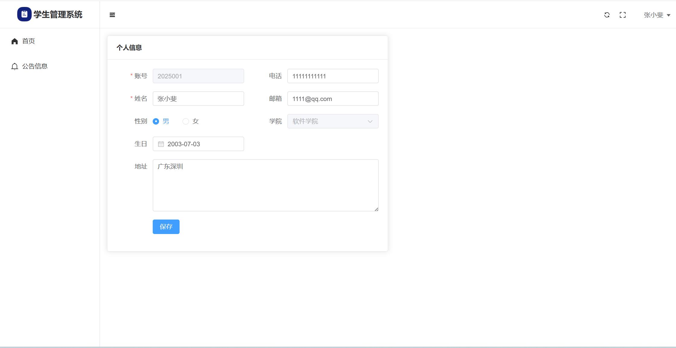 基于SpringBoot3+Vue3前后端分离的学生信息管理系统,系统包含管理员、学生角色,功能如下: