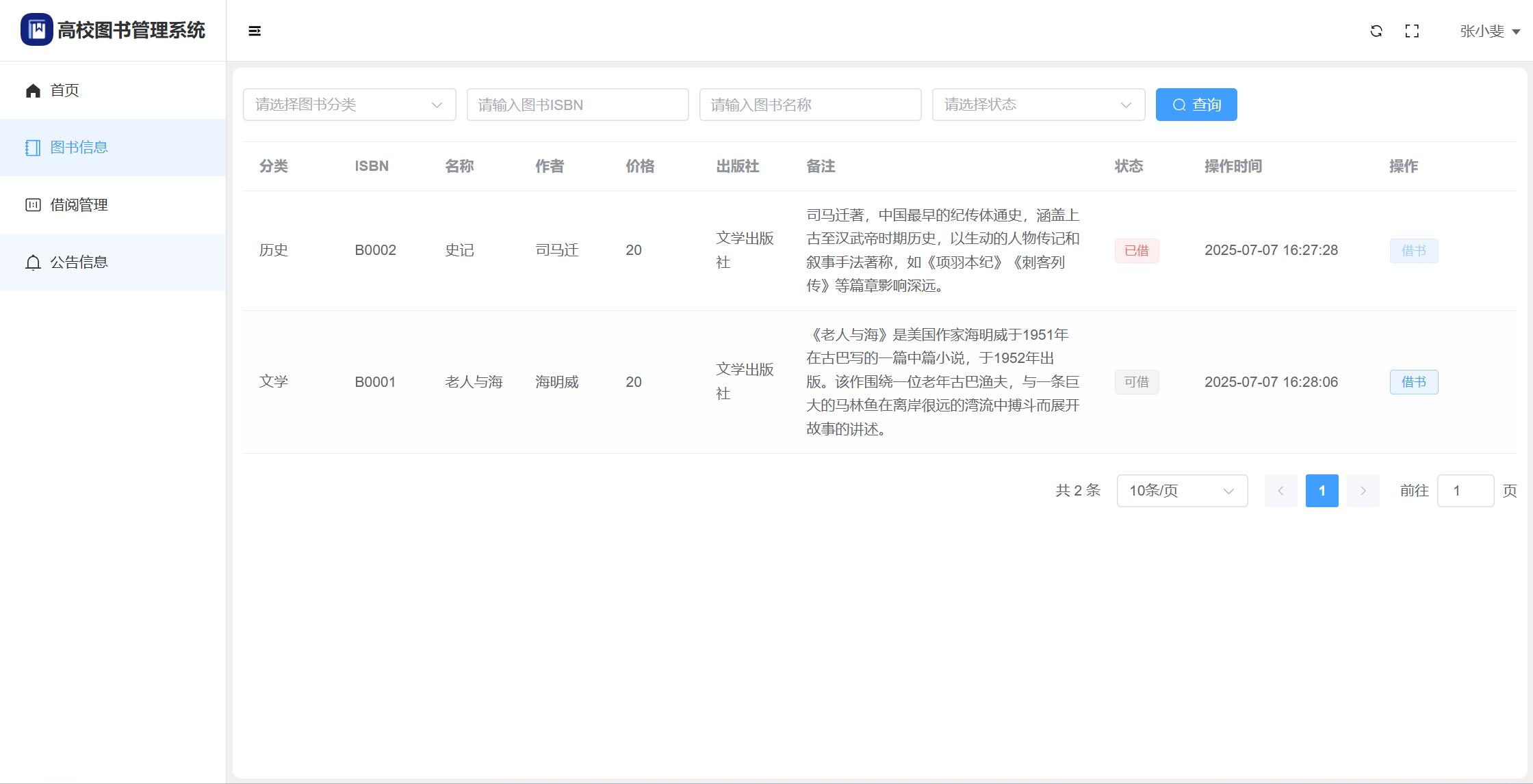 基于SpringBoot3+Vue3前后端分离的高校图书管理系统,本人原创开发。