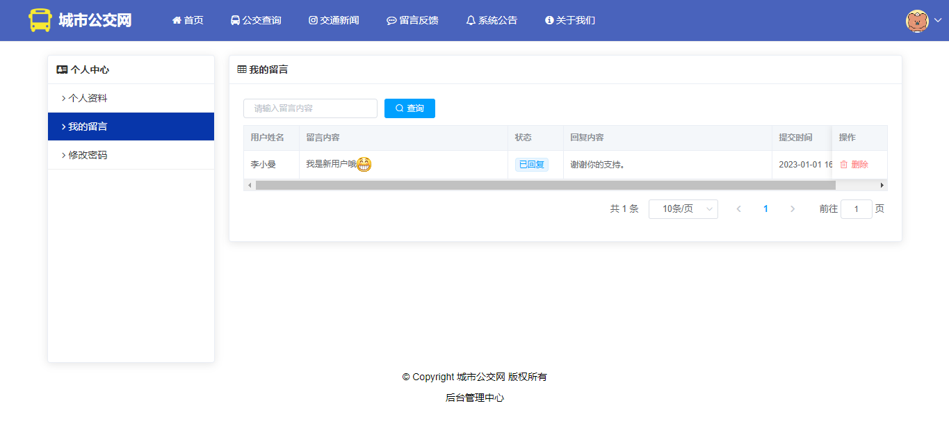 用户:注册登录系统;首页;公交查询(按出发地和目的地查询公交);交通新闻;留言反馈;系统公告;关于我们;各个中心可以修改个人信息;我的留言;修改密码;