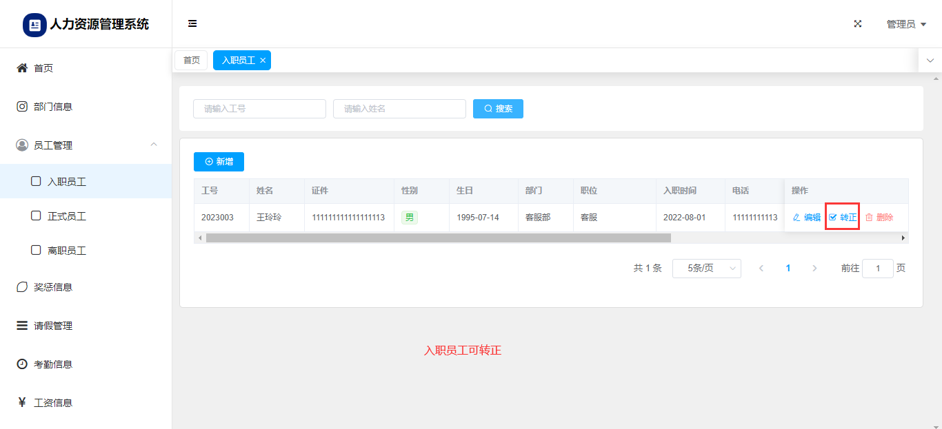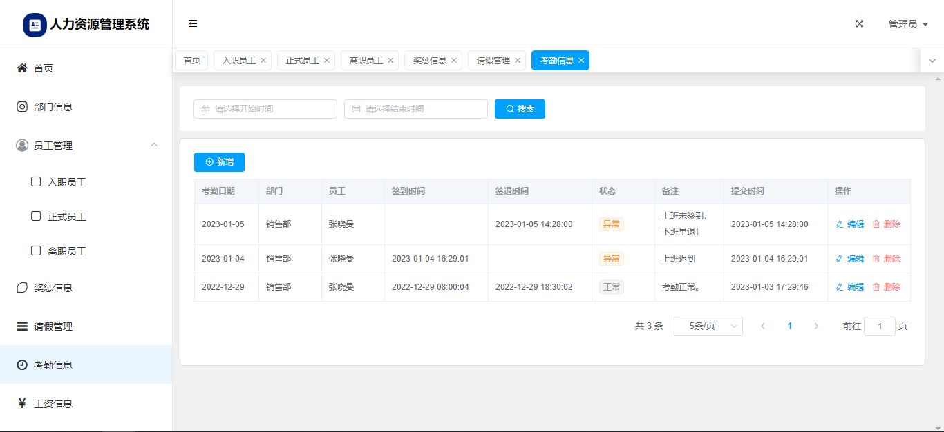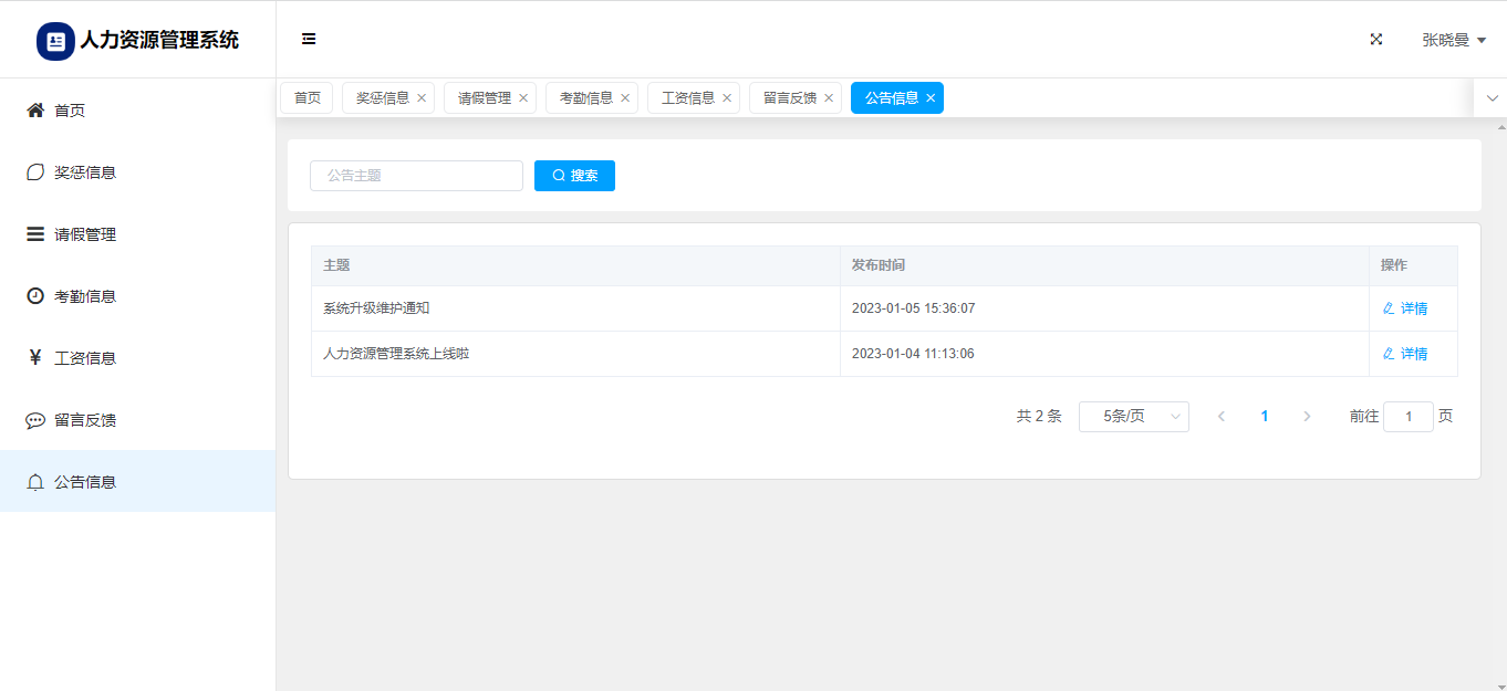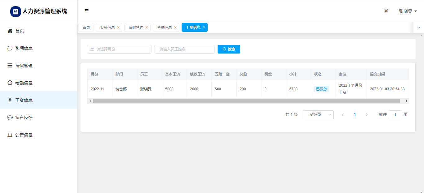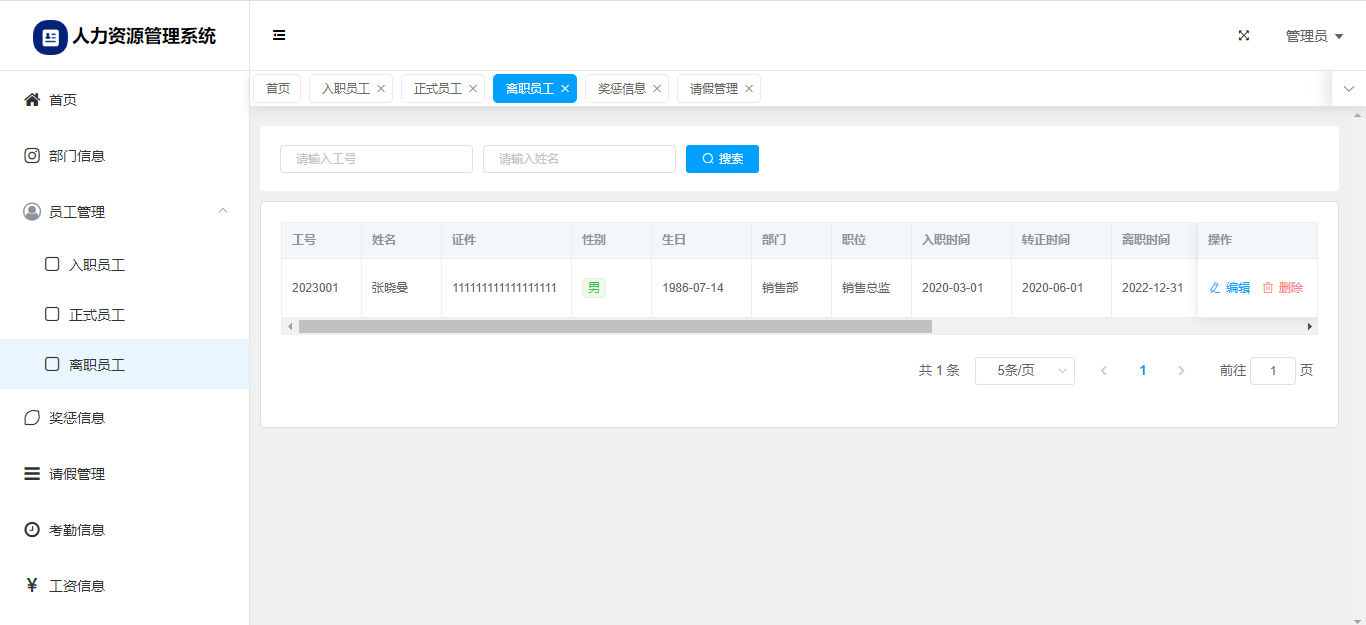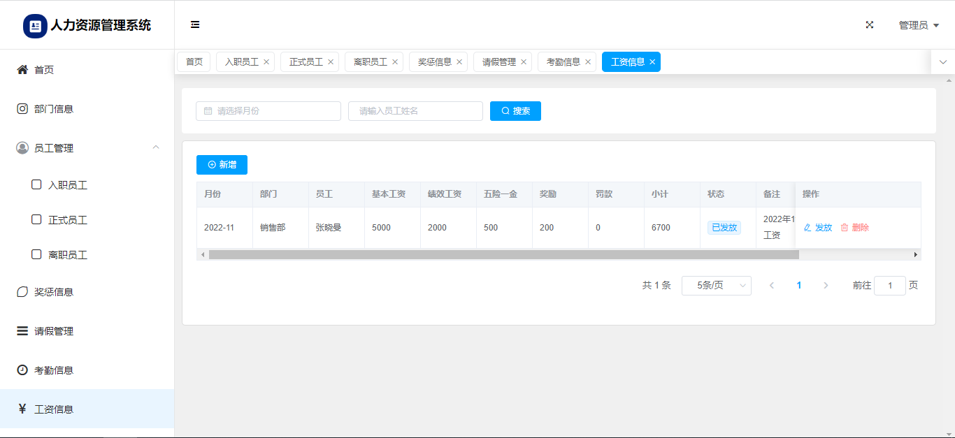 基于SpringBoot+Vue前后端分离的人力资源管理系统,系统包含管理员、员工角色,功能如下: