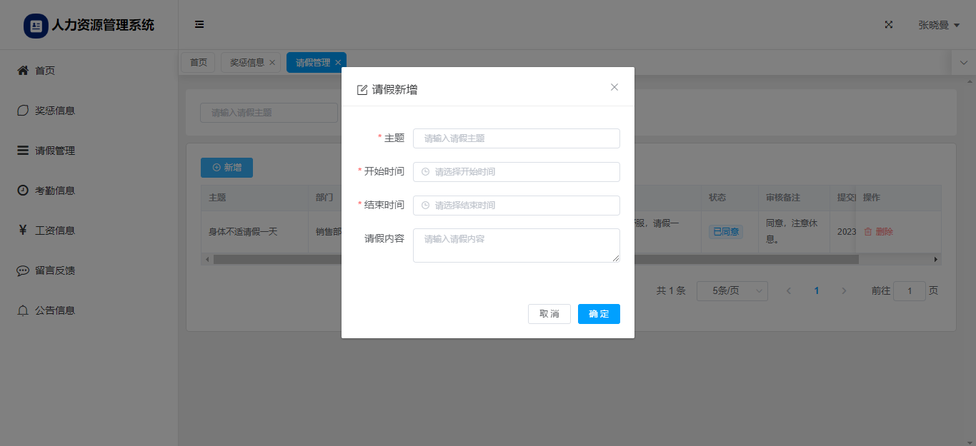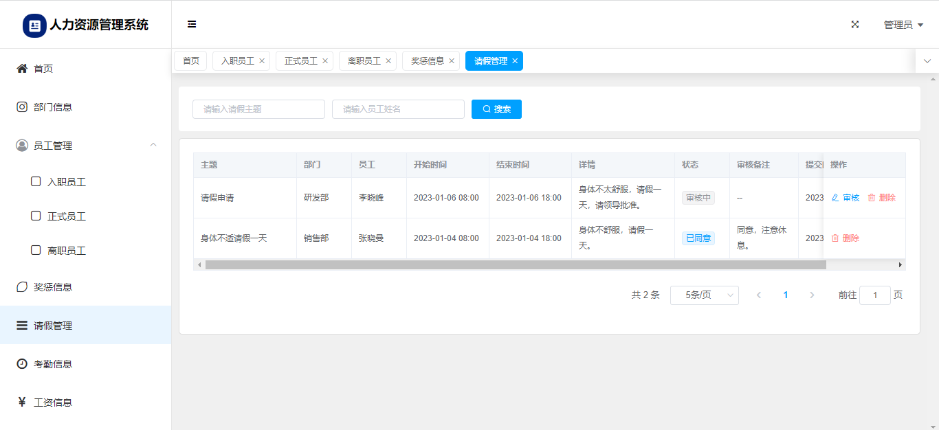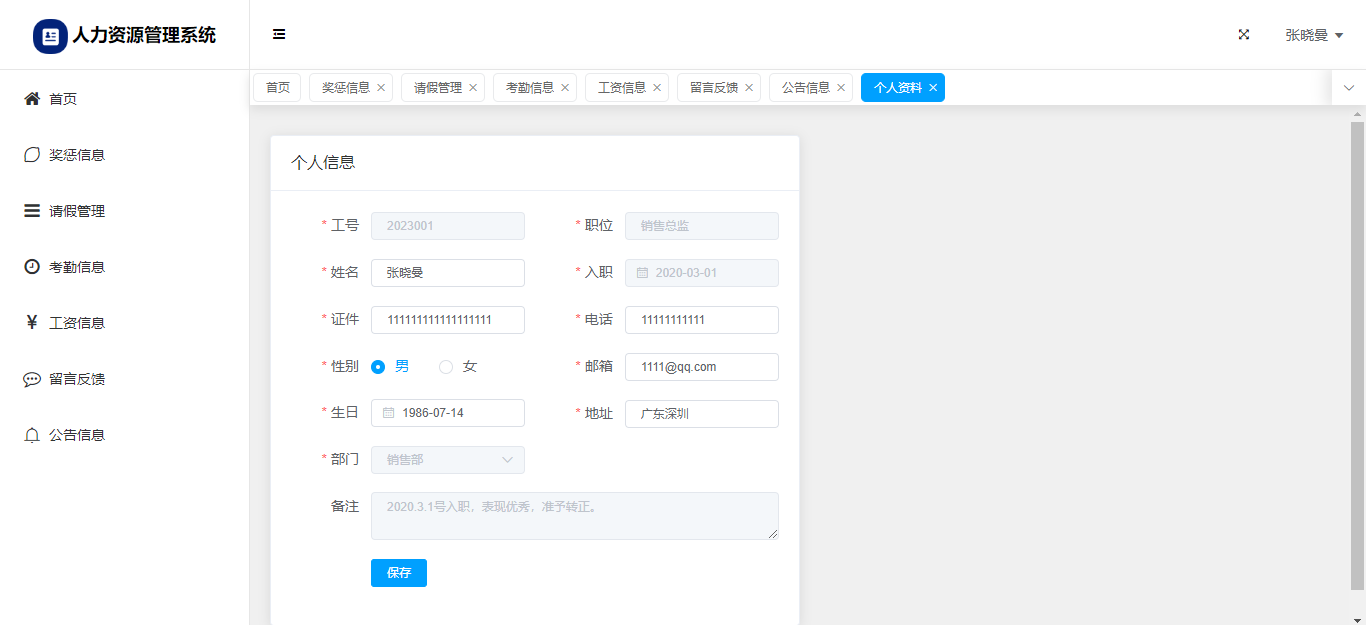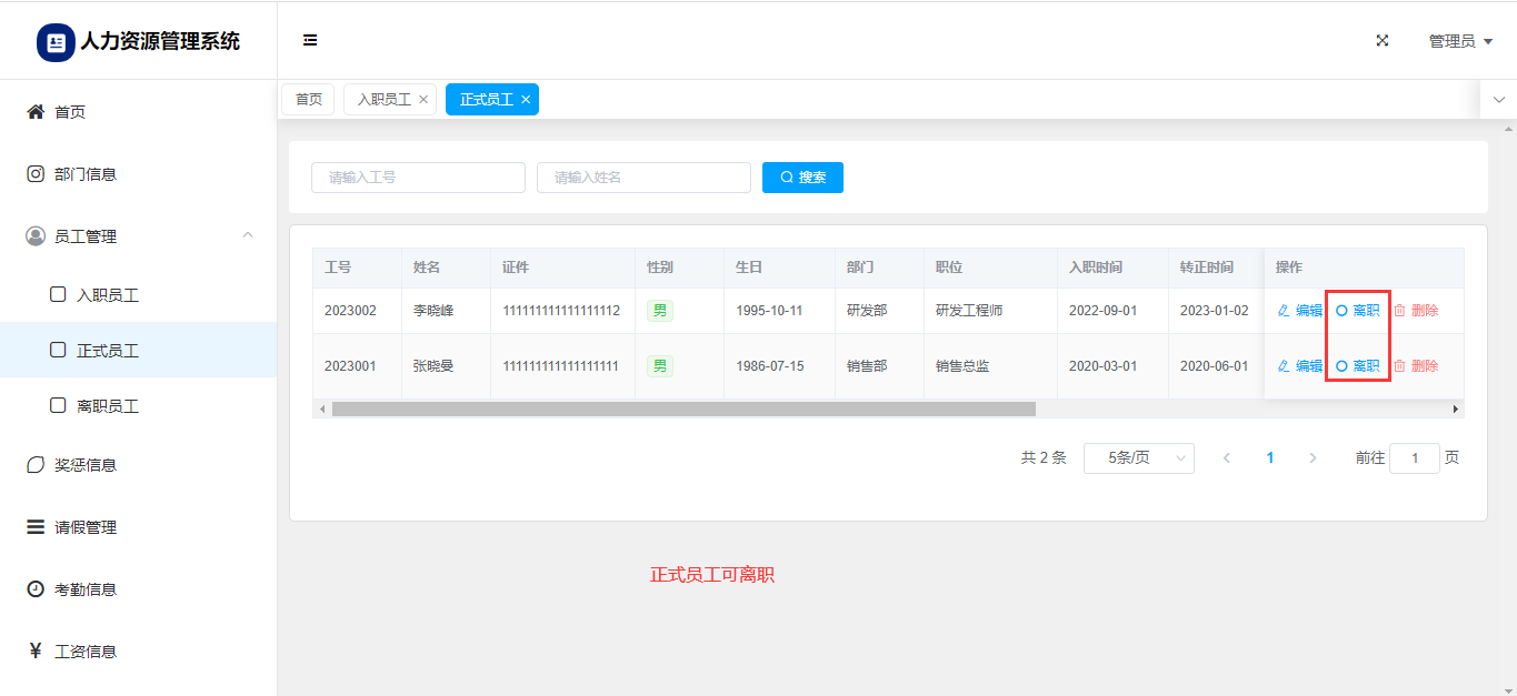 基于SpringBoot+Vue前后端分离的人力资源管理系统,本人原创开发。