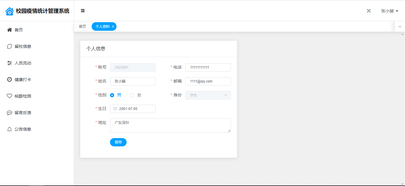 【原创】SpringBoot+Vue校园新冠疫情统计管理系统