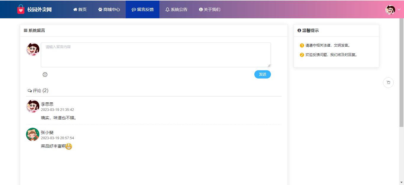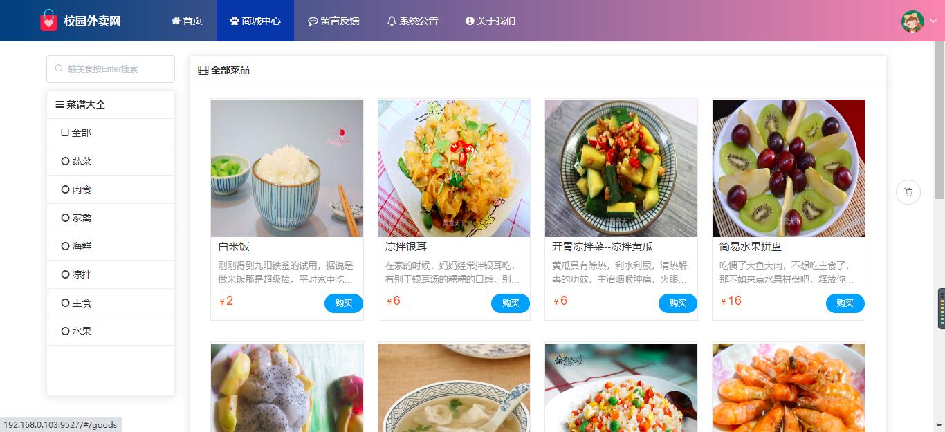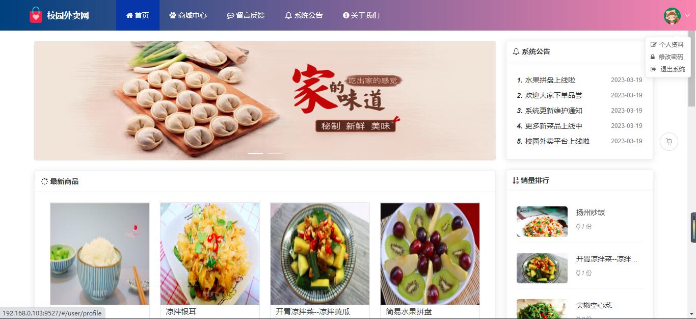 基于SpringBoot+Vue前后端分离的外卖订餐网系统(源码+文档),本人原创开发。