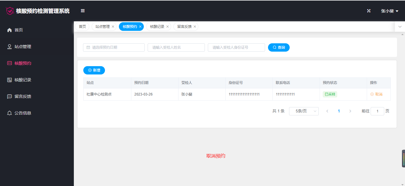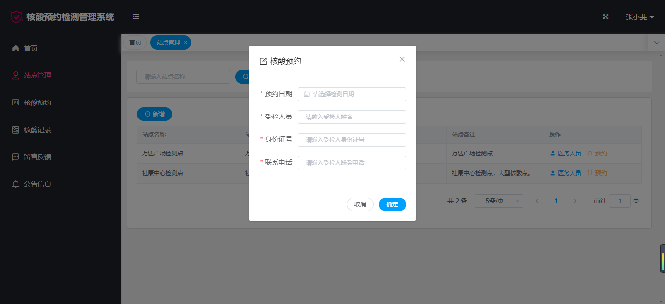 基于SpringBoot+Vue前后端分离的核酸预约检测管理系统,本人原创开发。