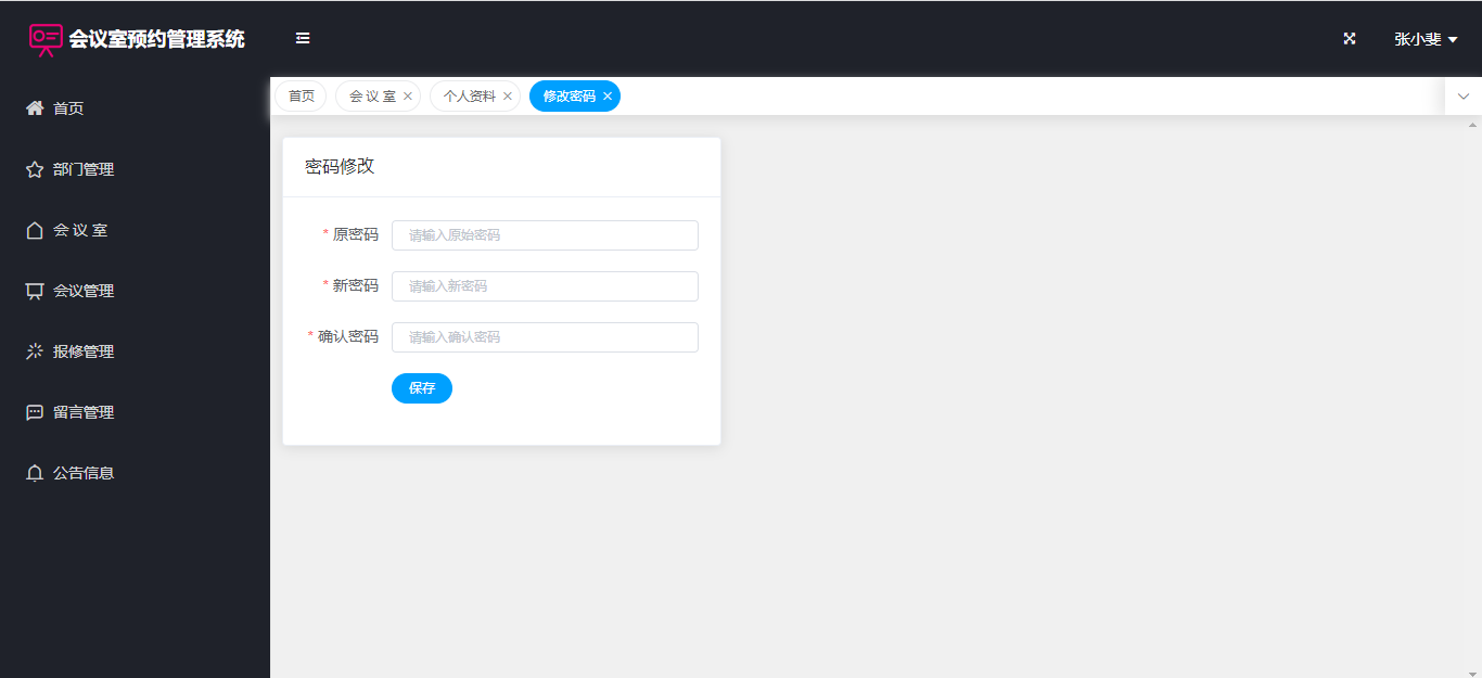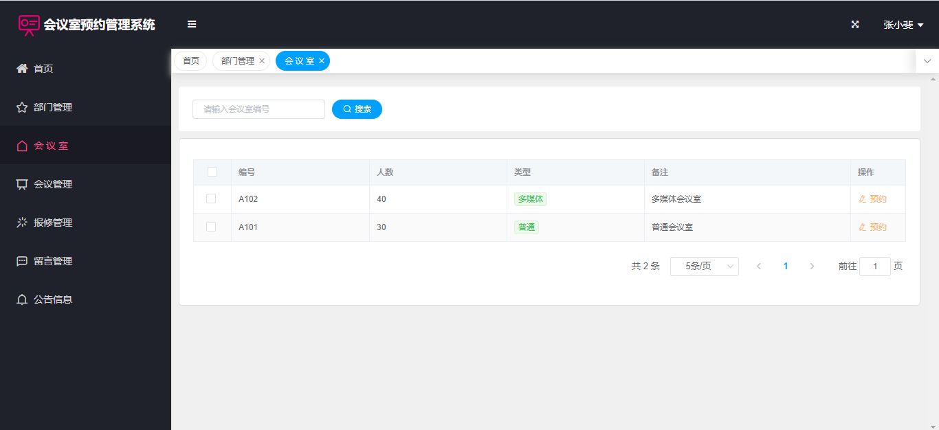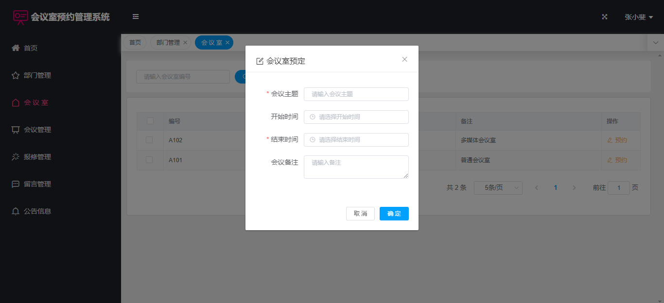 基于SpringBoot+Vue前后端分离的会议室预约管理系统,本人原创开发。