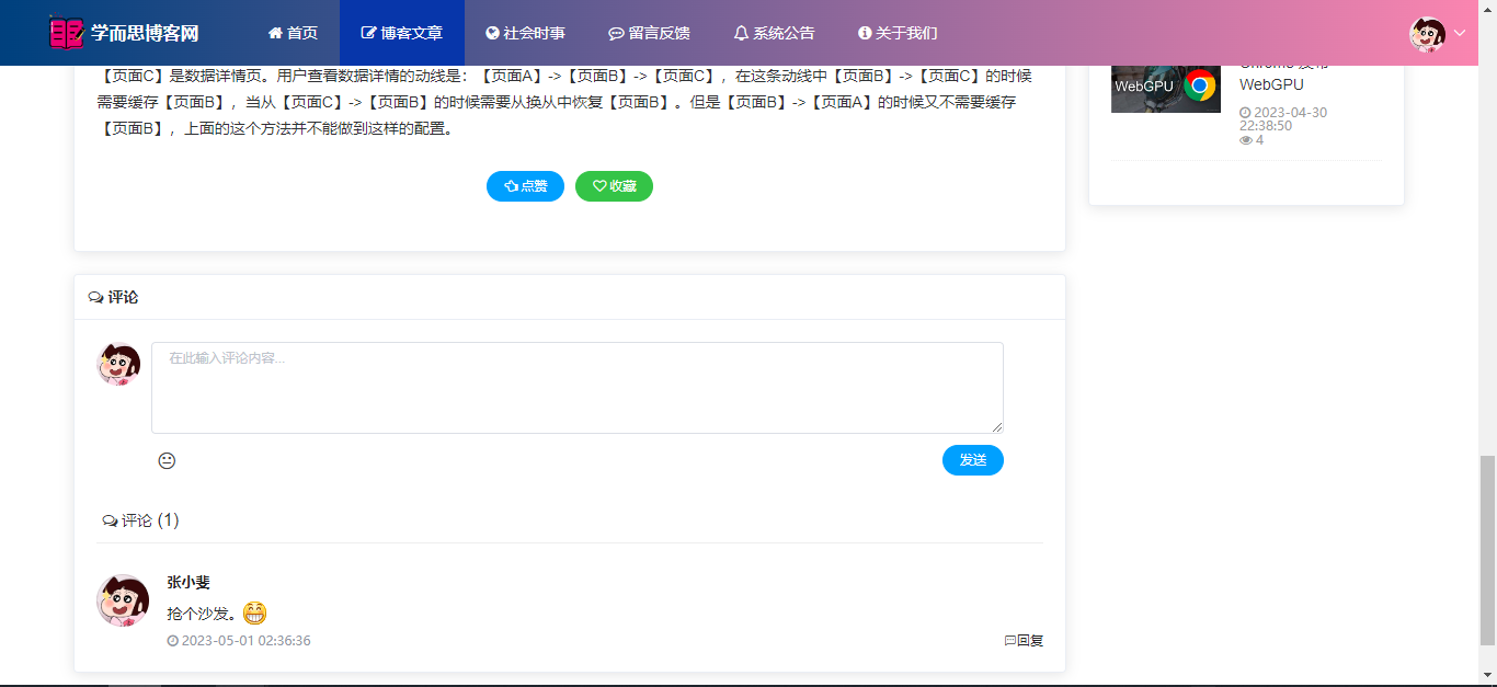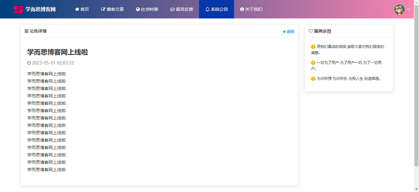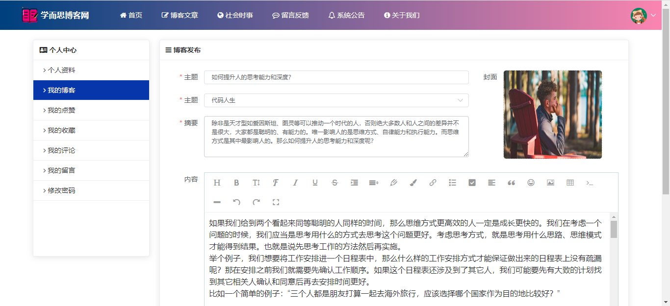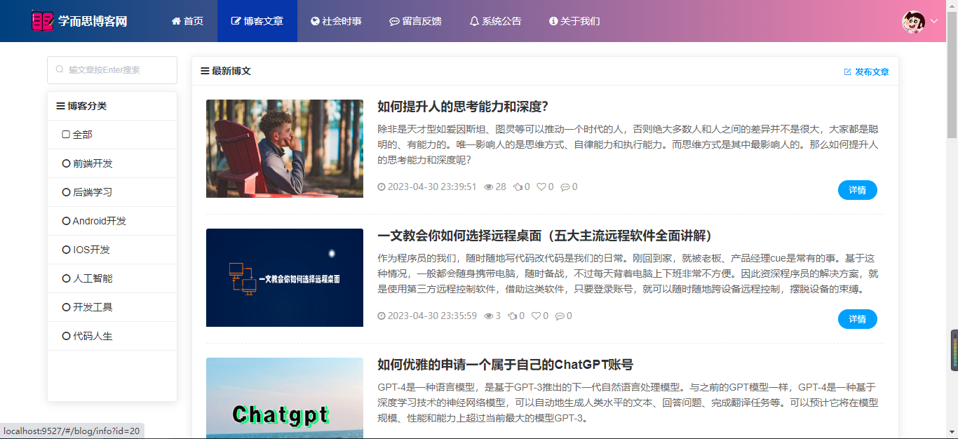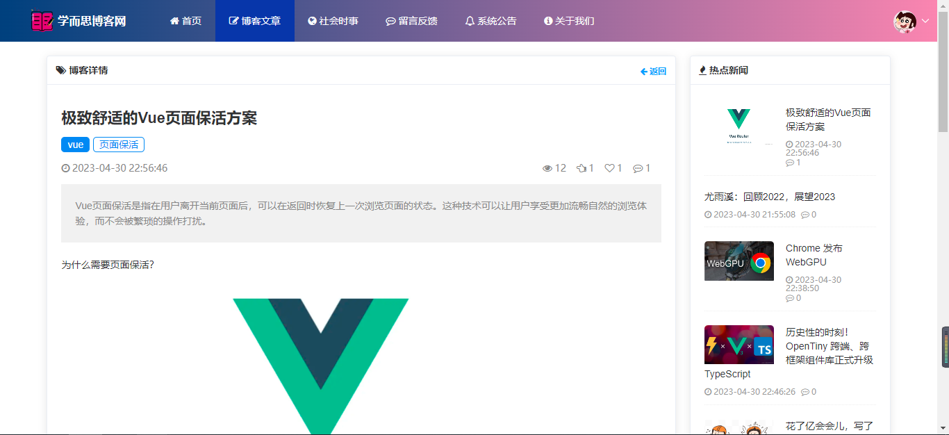 基于SpringBoot+Vue前后端分离的学而思博客网站系统,本人原创开发。