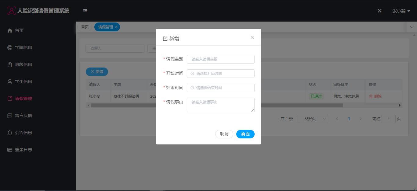 Tags: springboot vue 前后端分离 请假 人脸识别