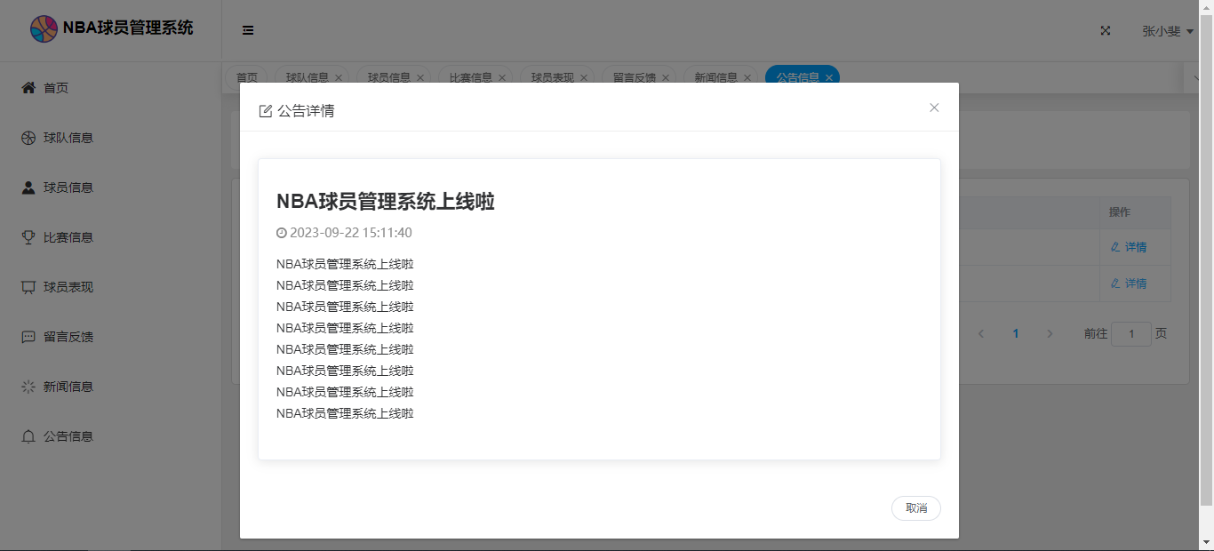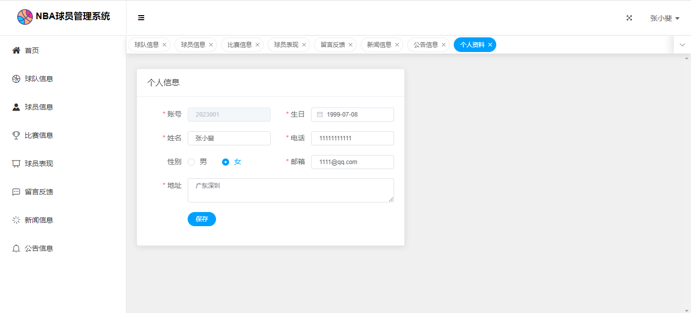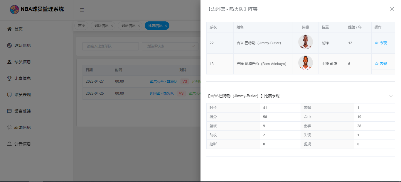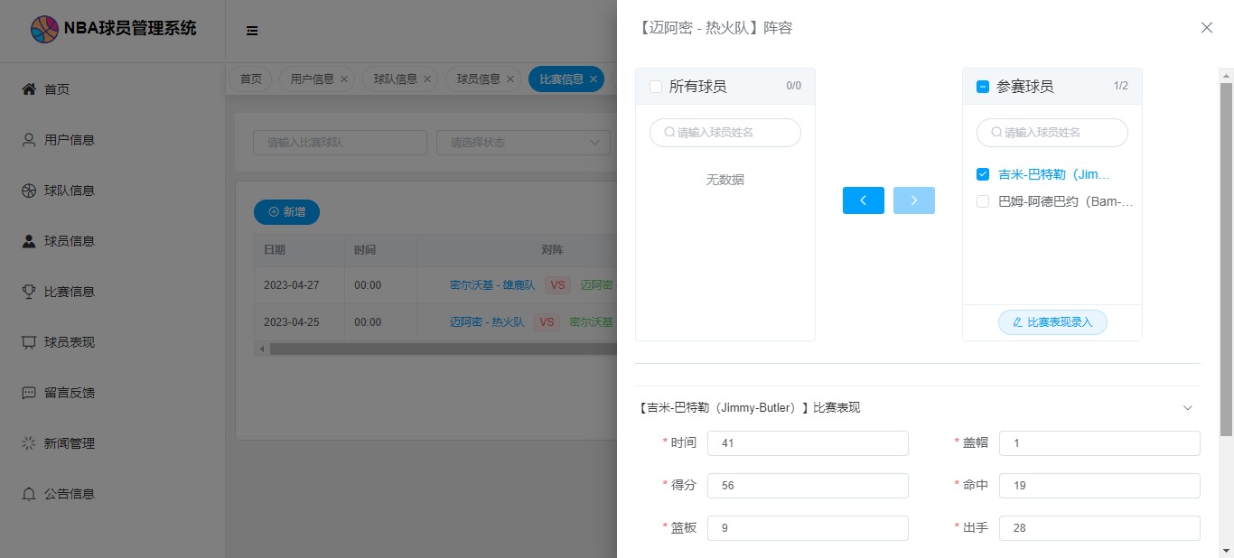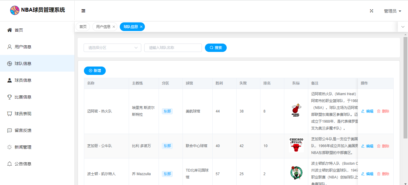 基于SpringBoot+Vue前后端分离的NBA球员管理系统,本人原创开发。
