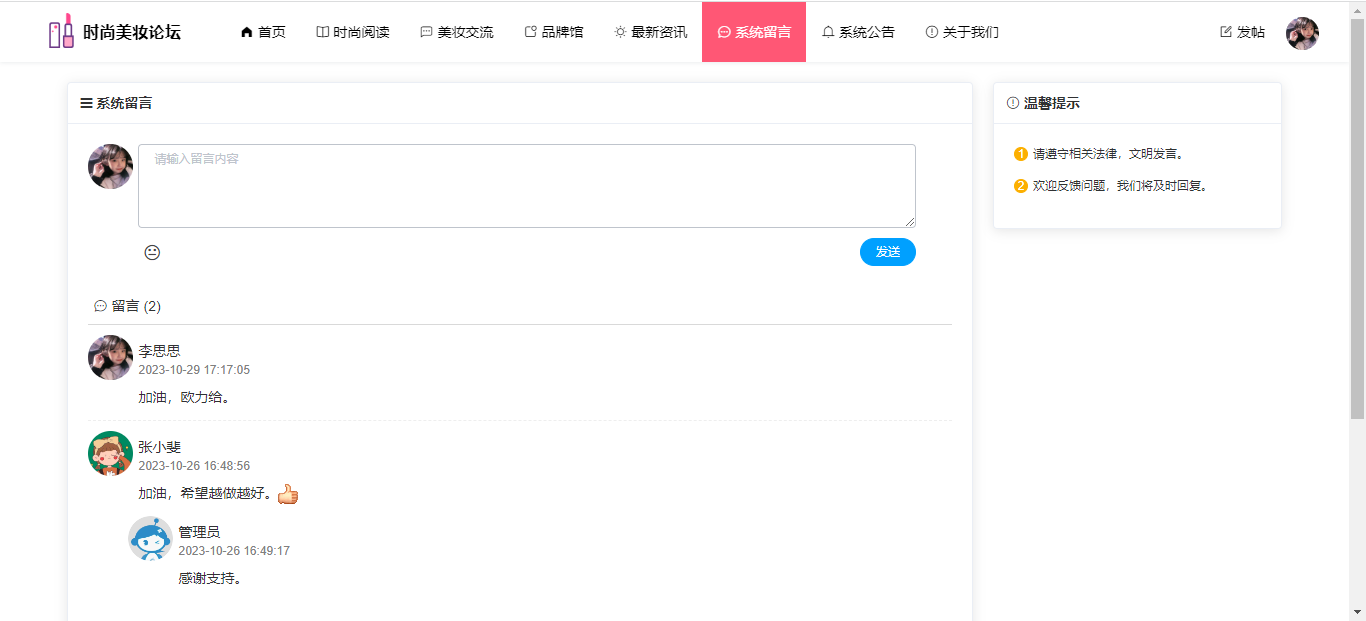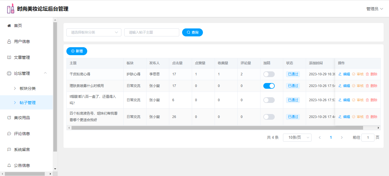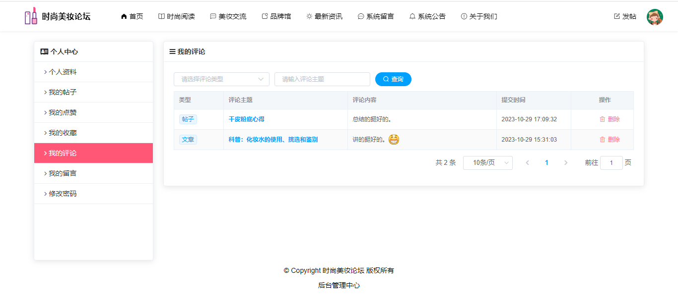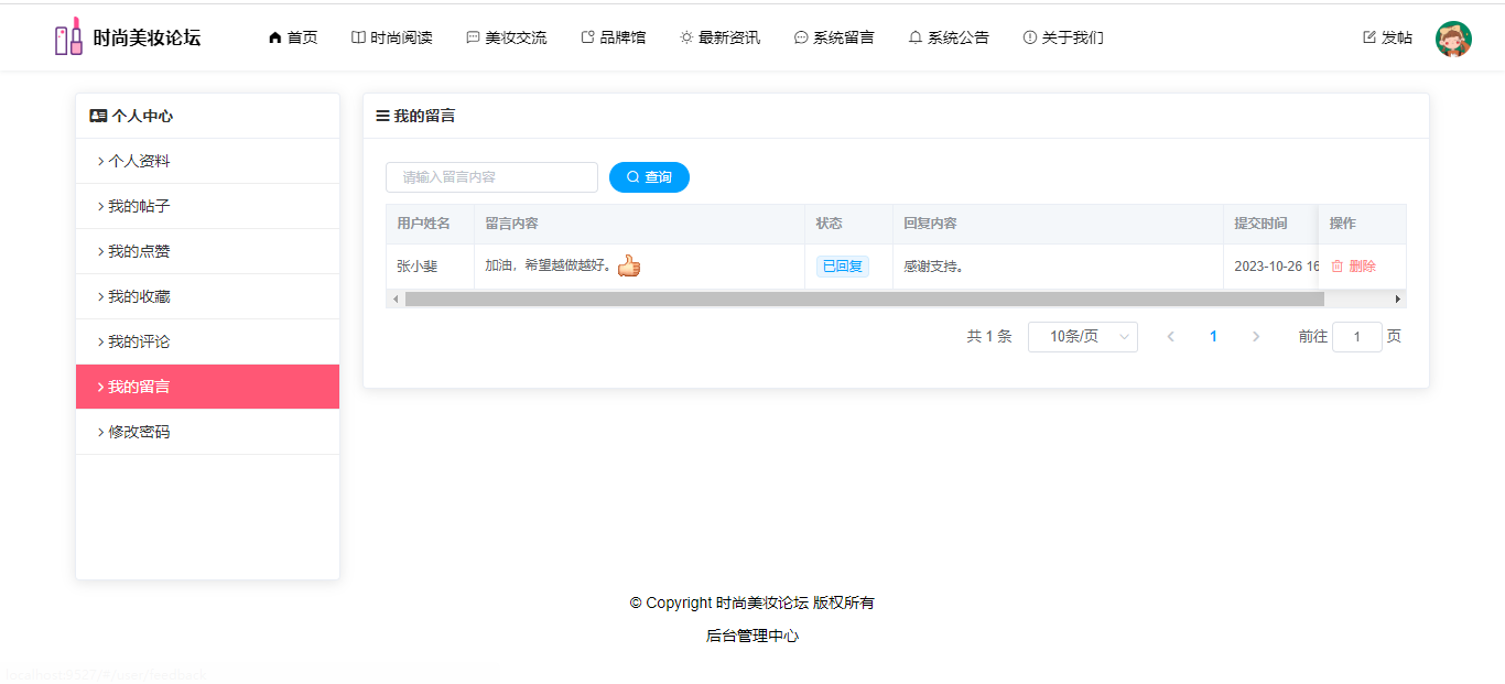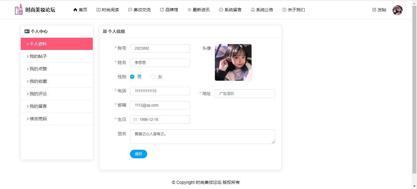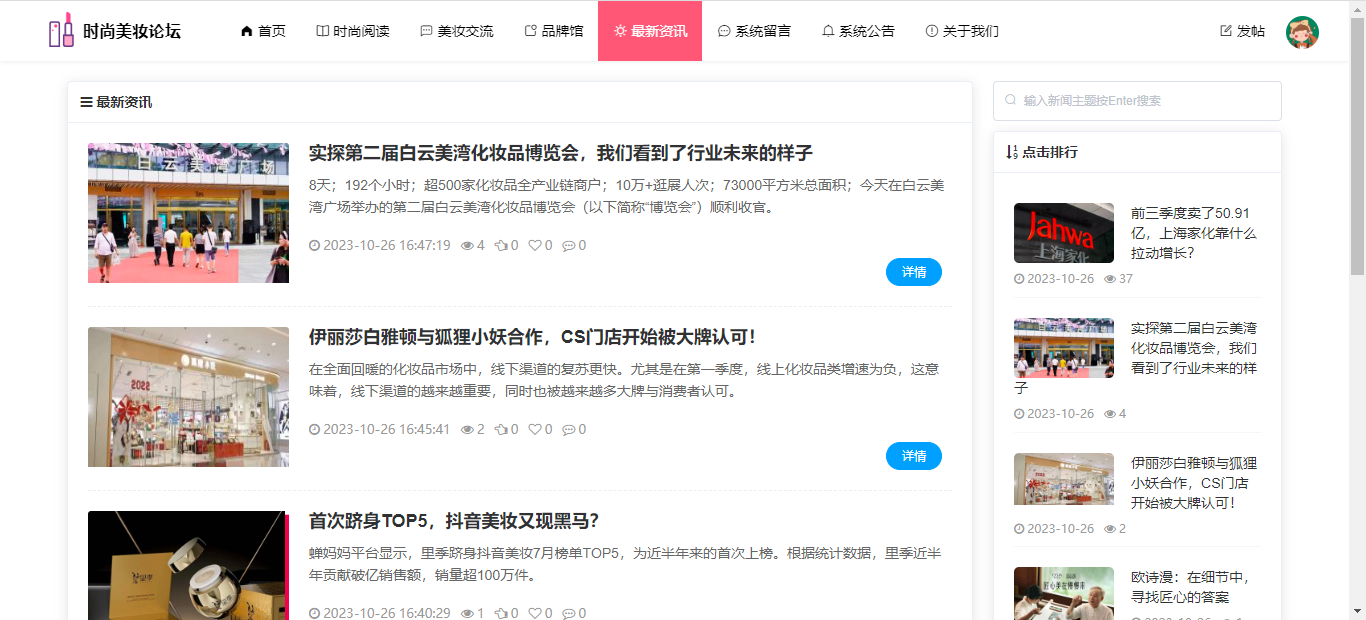 基于SpringBoot+Vue前后端分离的时尚美妆论坛社区系统,本人原创开发。