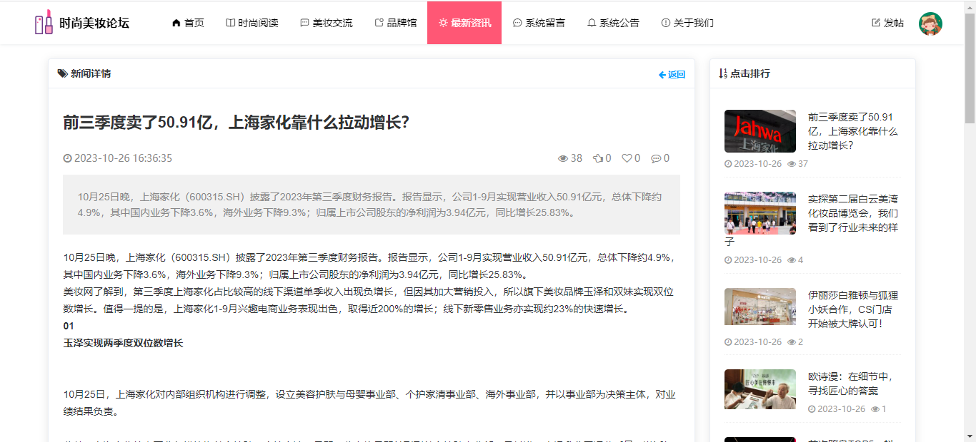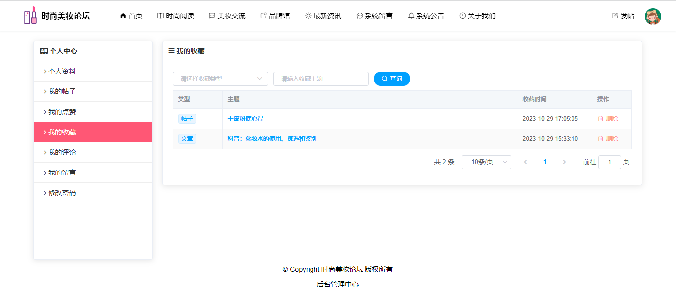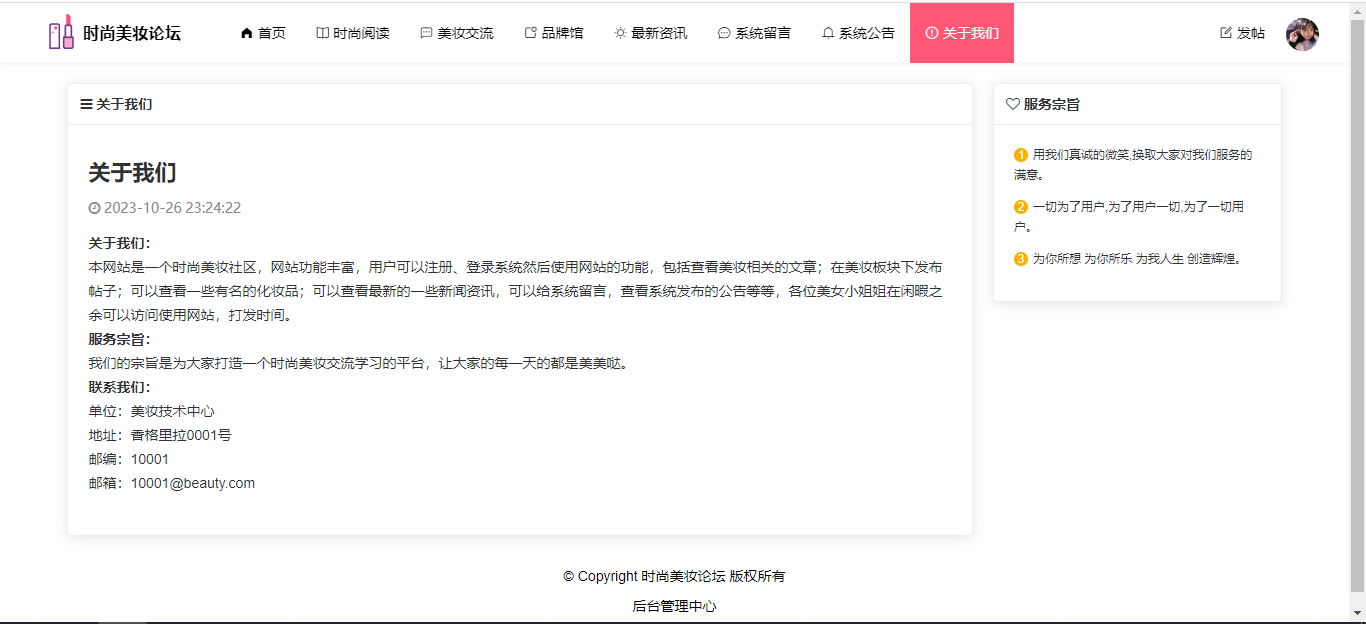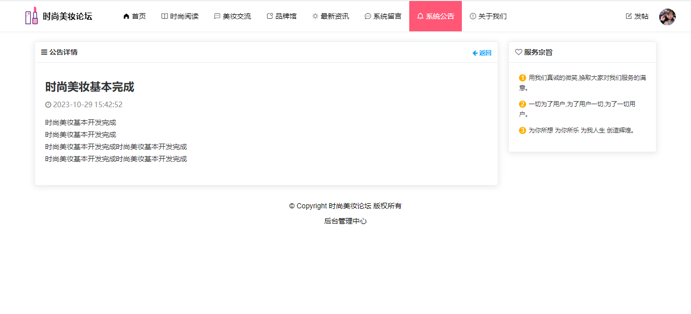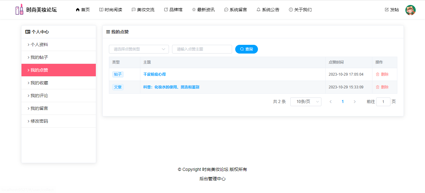 基于SpringBoot+Vue前后端分离的时尚美妆论坛社区系统,本人原创开发。