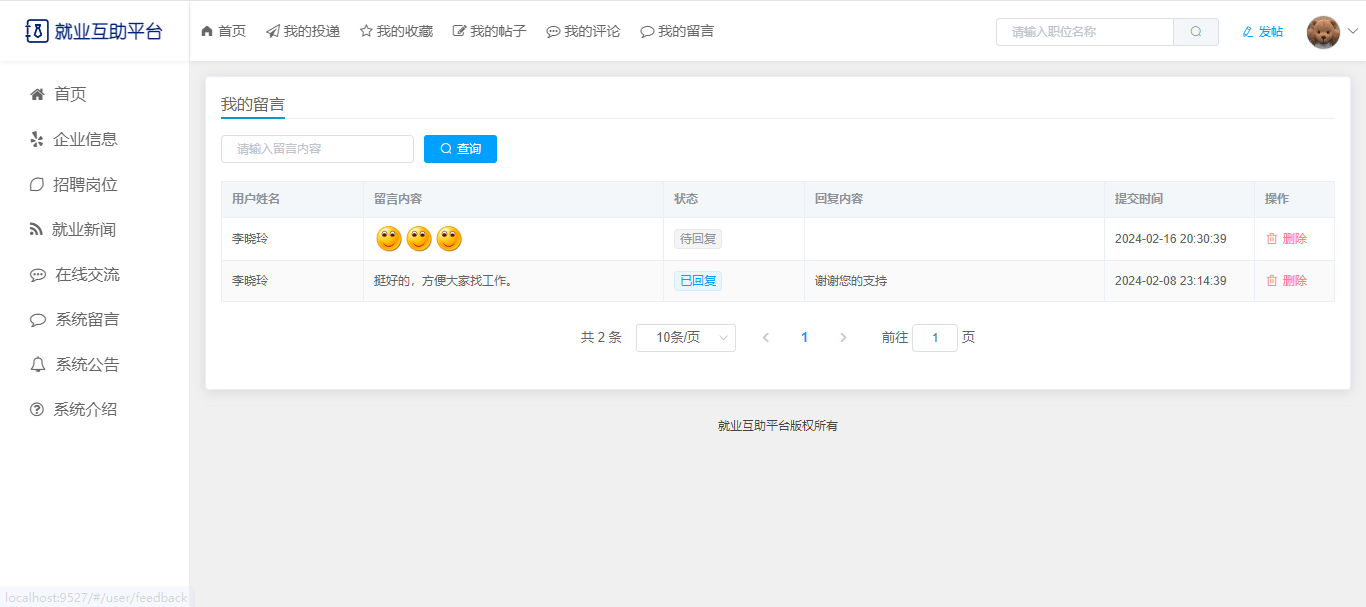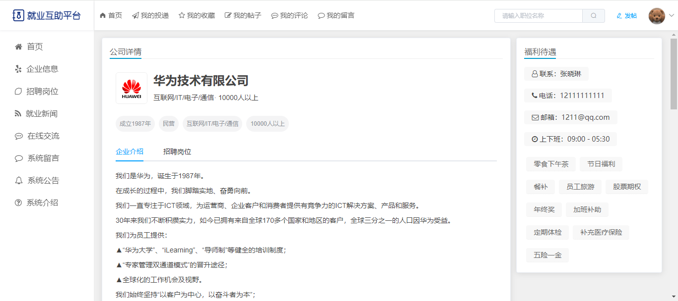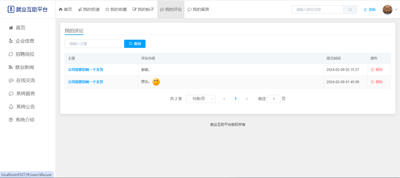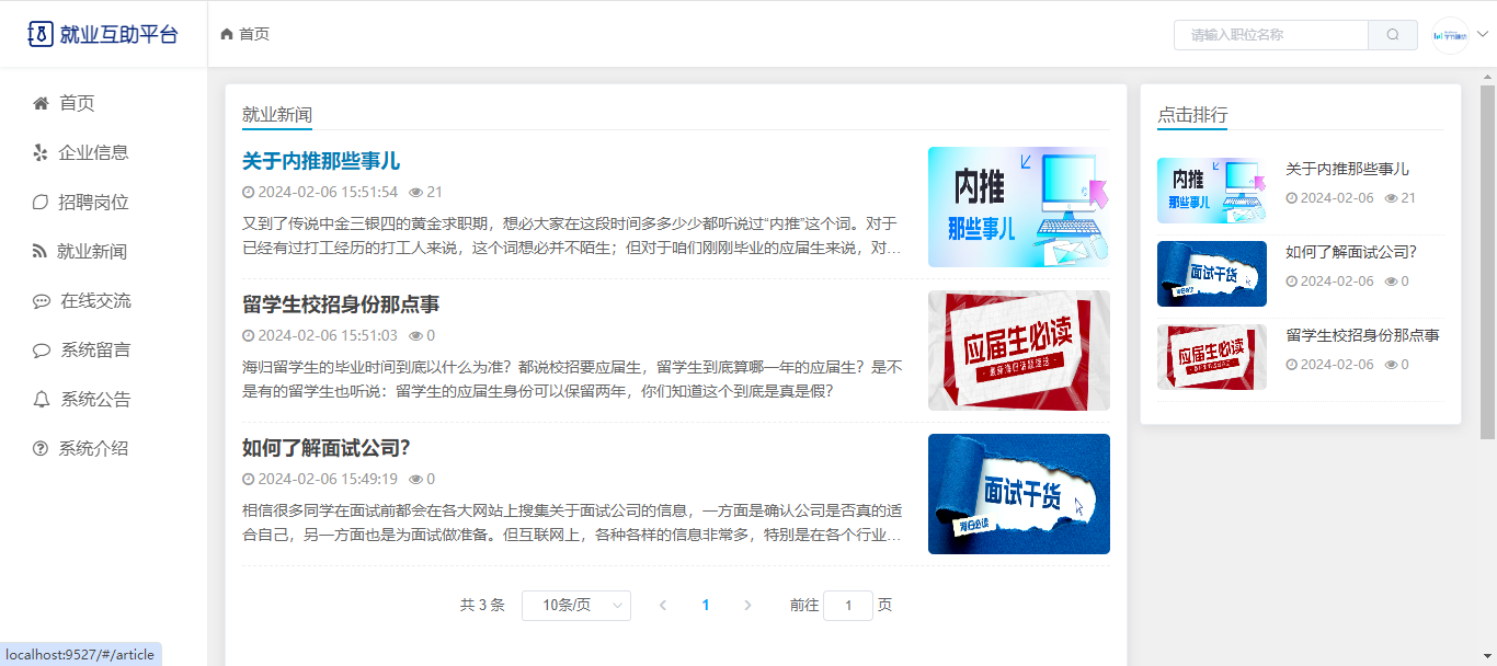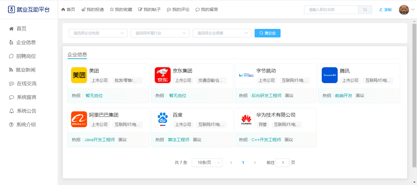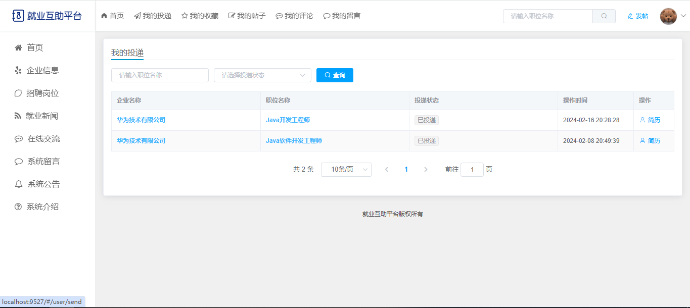 基于SpringBoot+Vue前后端分离的就业互助平台,本人原创开发。