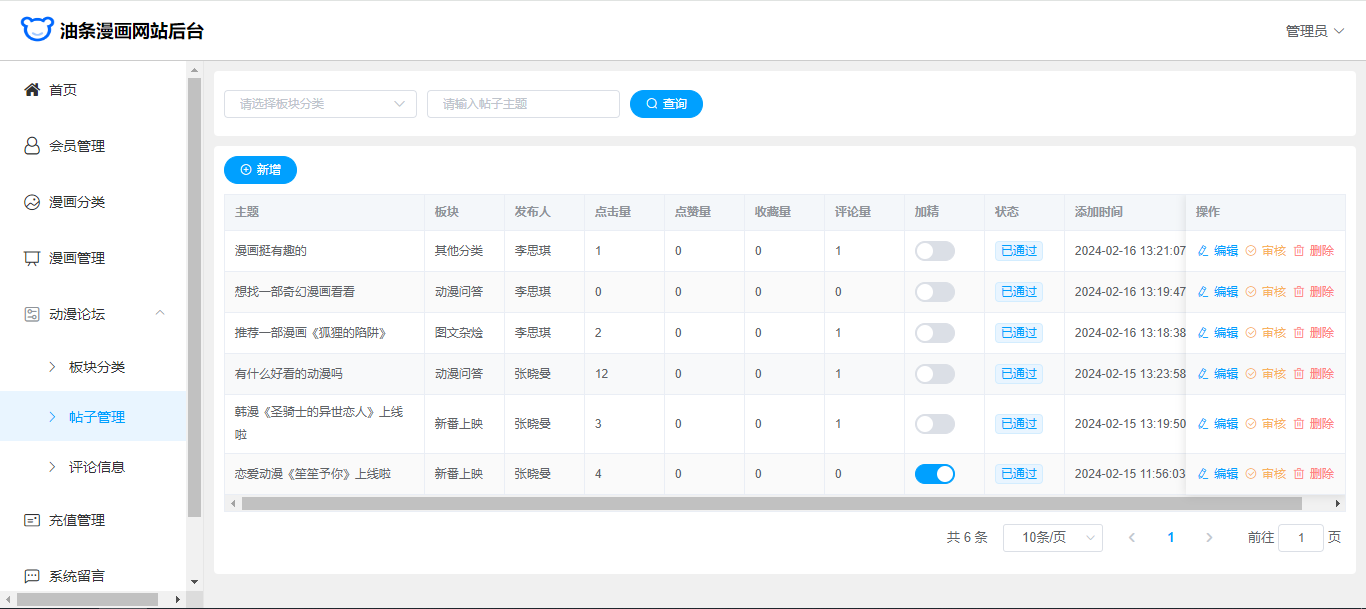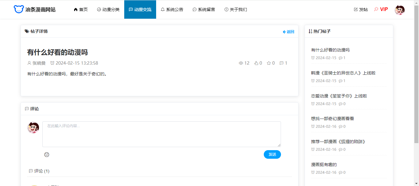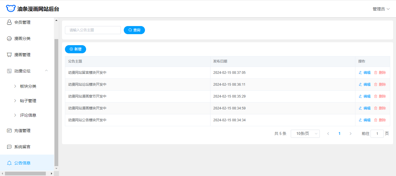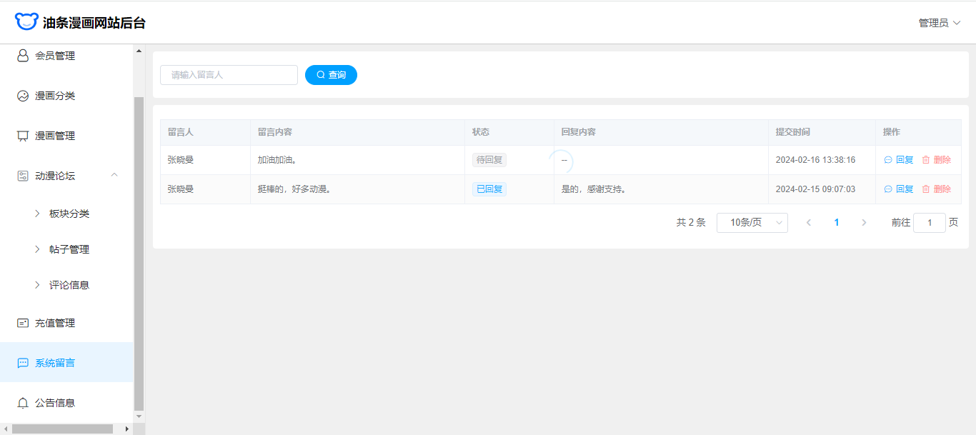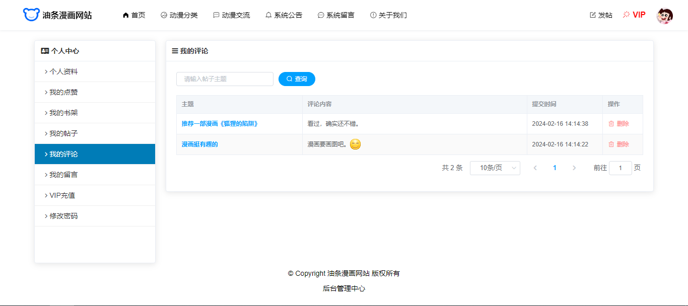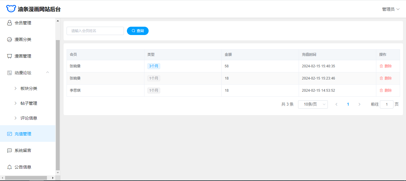 基于SpringBoot+Vue前后端分离的漫画网站(源码+文档),系统包含管理员、会员用户角色,功能如下: