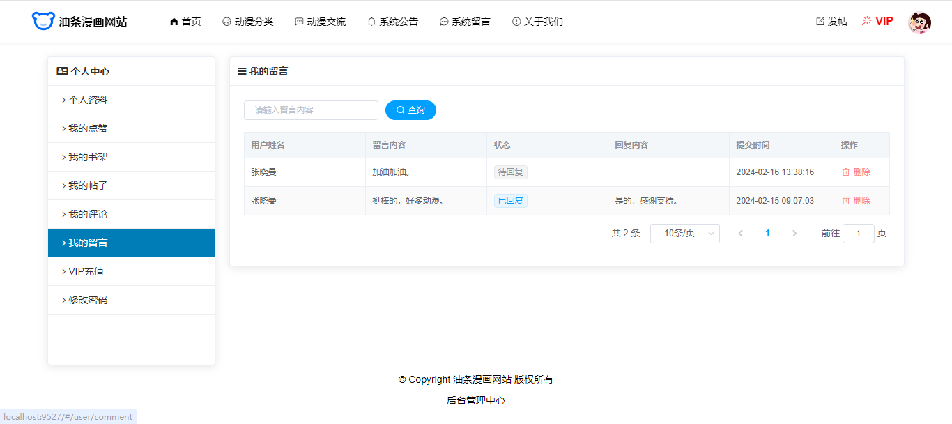 基于SpringBoot+Vue前后端分离的前后端分离的漫画网站(源码+文档),本人原创开发。
