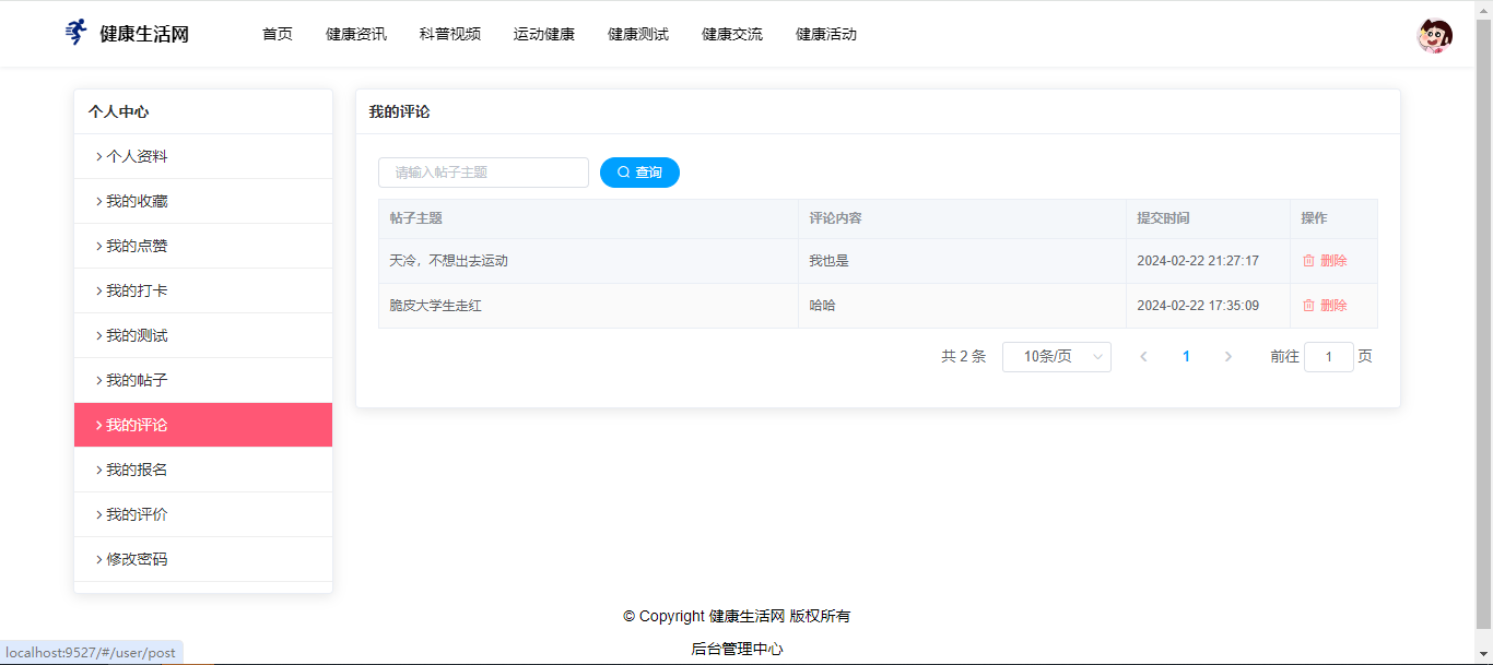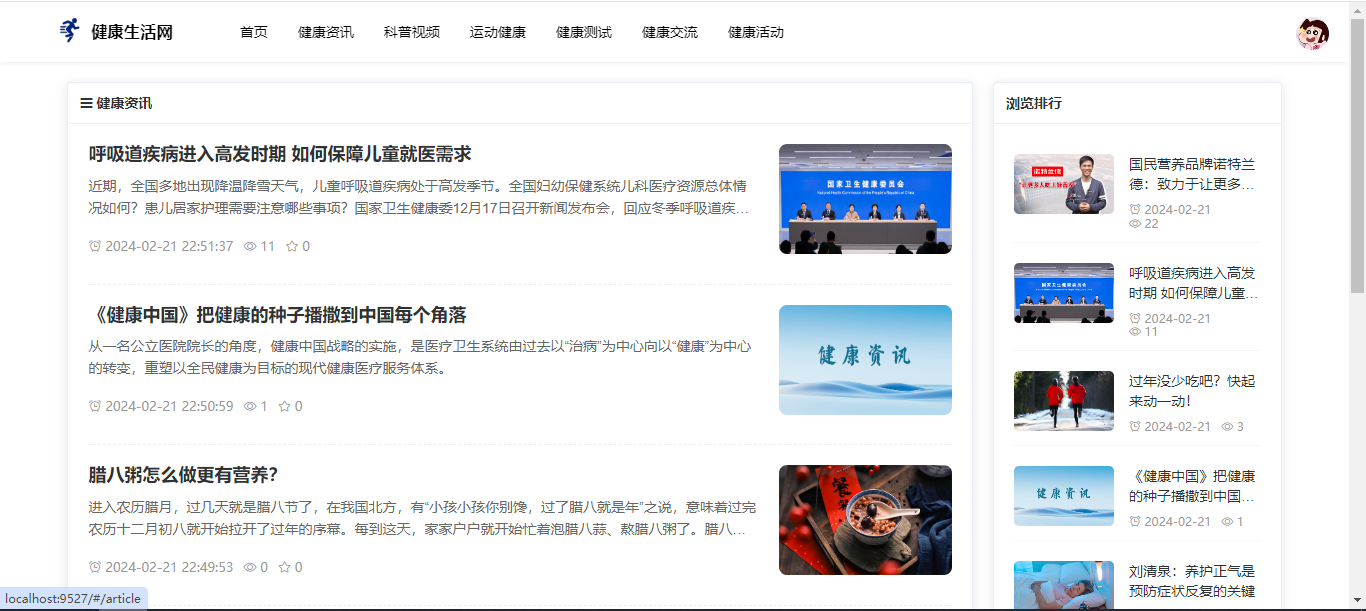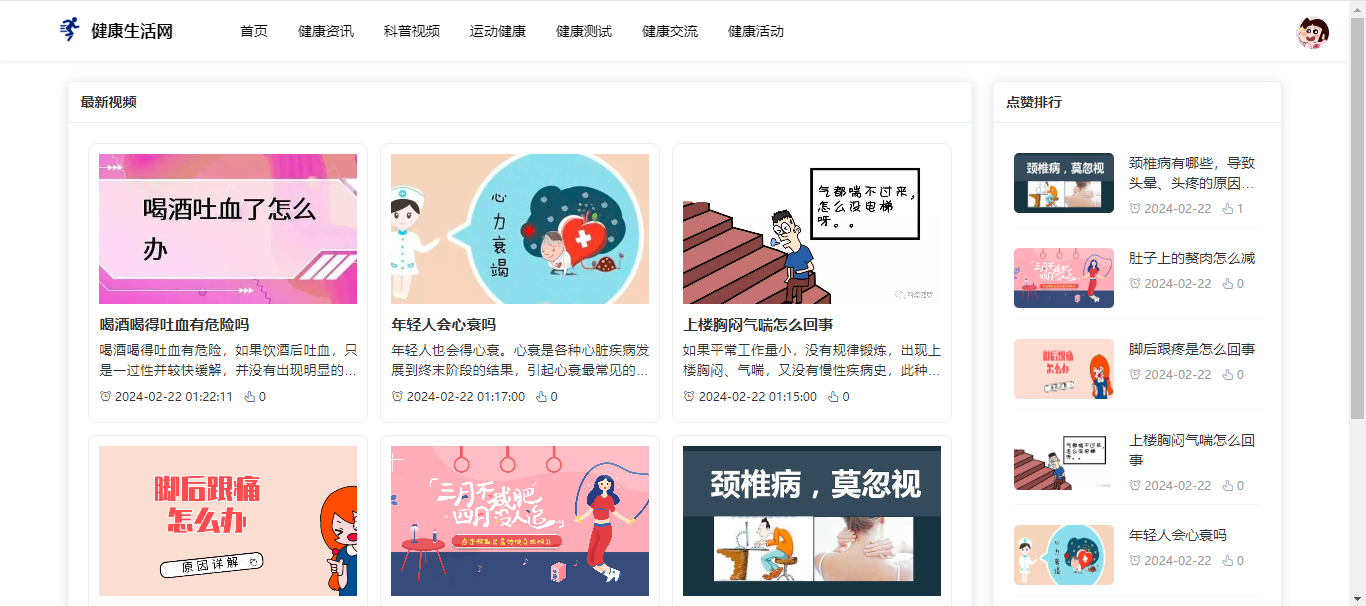 基于SpringBoot+Vue前后端分离的健康生活网(源码+文档),本人原创开发。