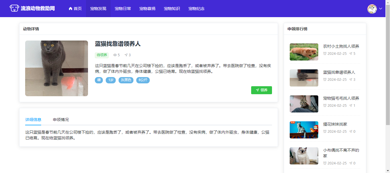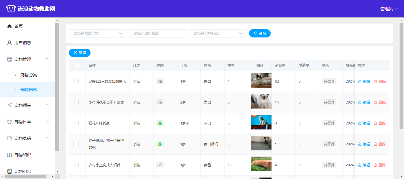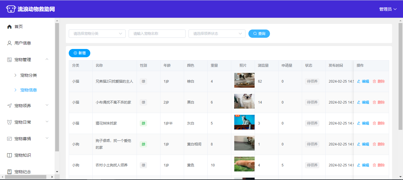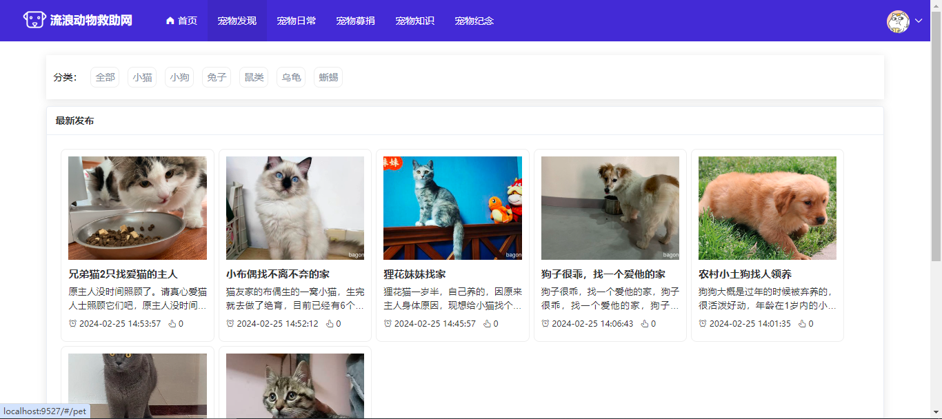 Tags: springboot vue 前后端分离 宠物网 流浪动物救助