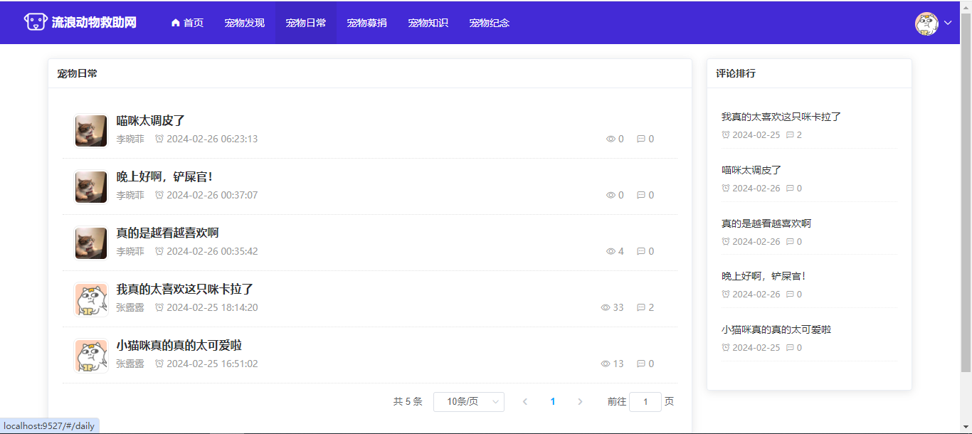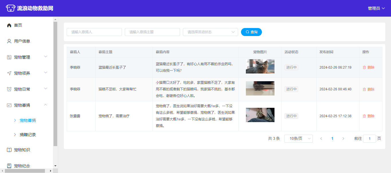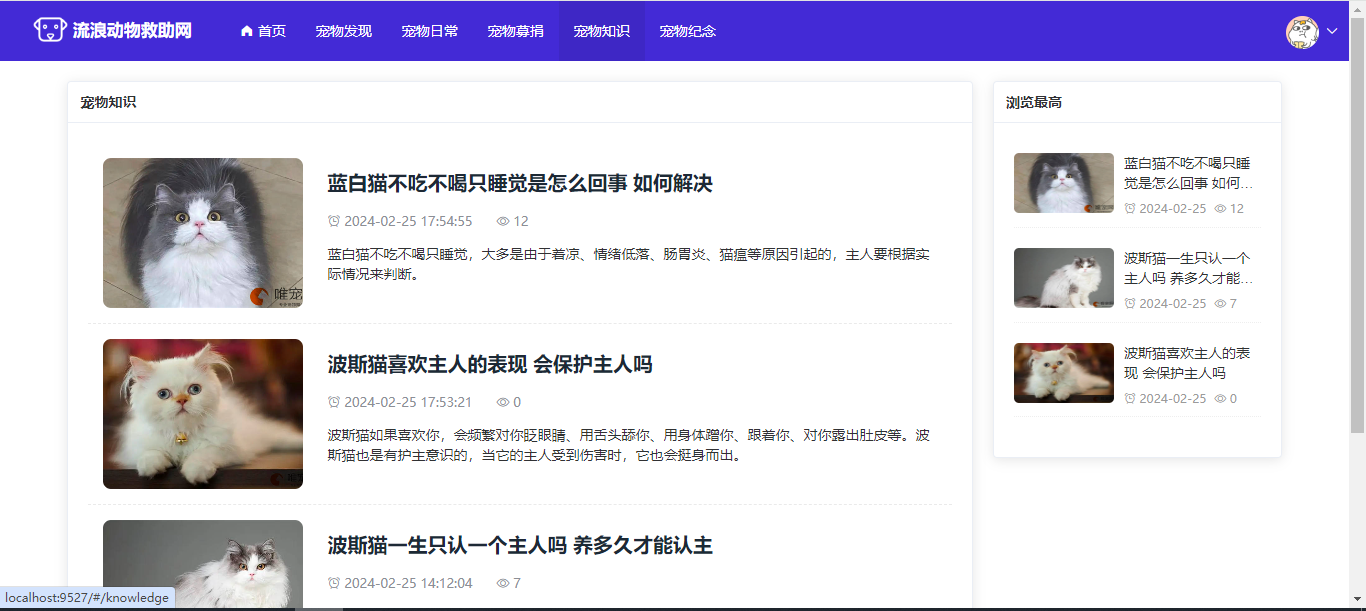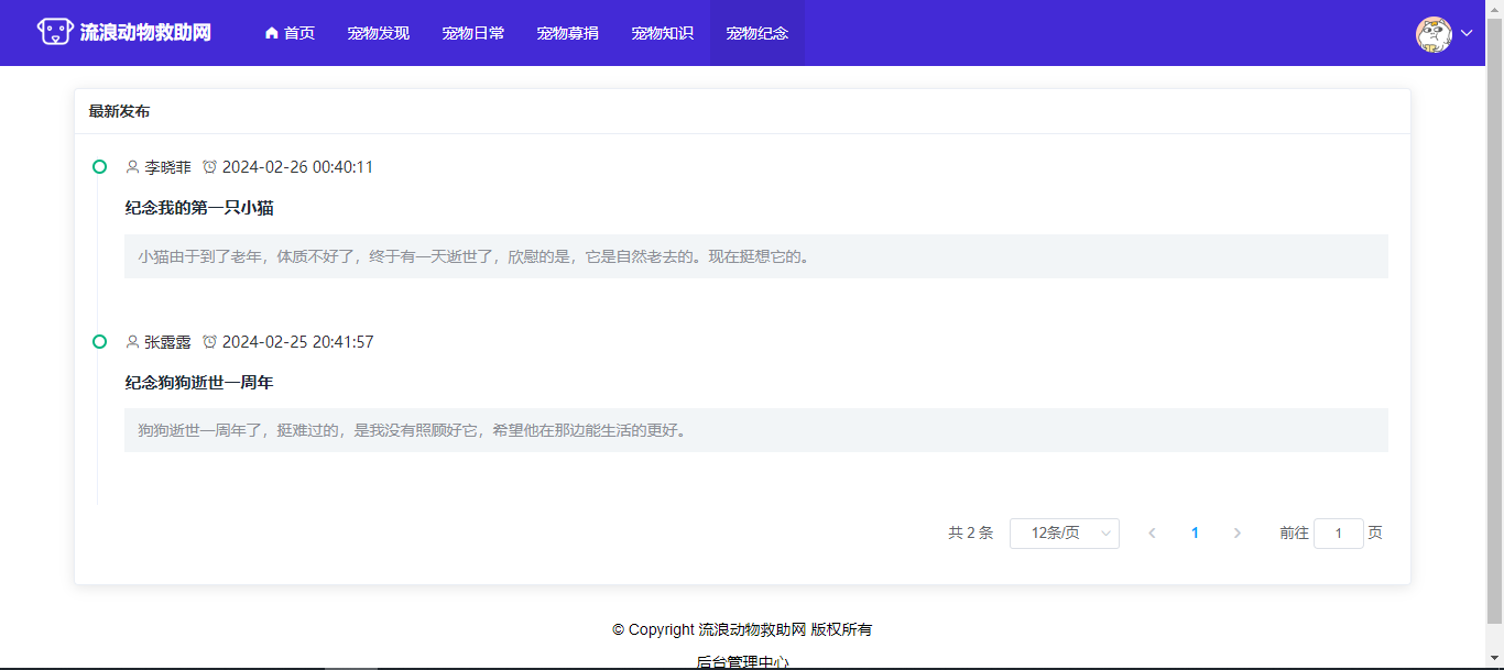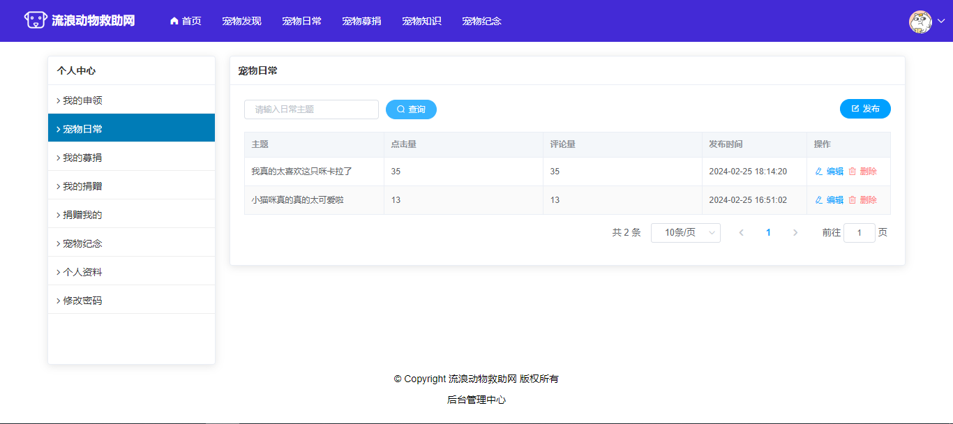 Tags: springboot vue 前后端分离 宠物网 流浪动物救助