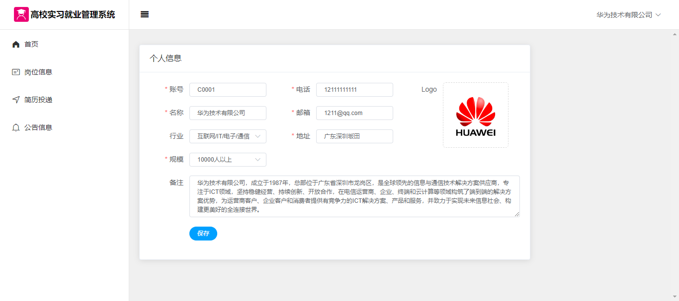 基于SpringBoot+Vue前后端分离的高校实习就业管理系统,系统包含管理员、企业、学生角色,功能如下: