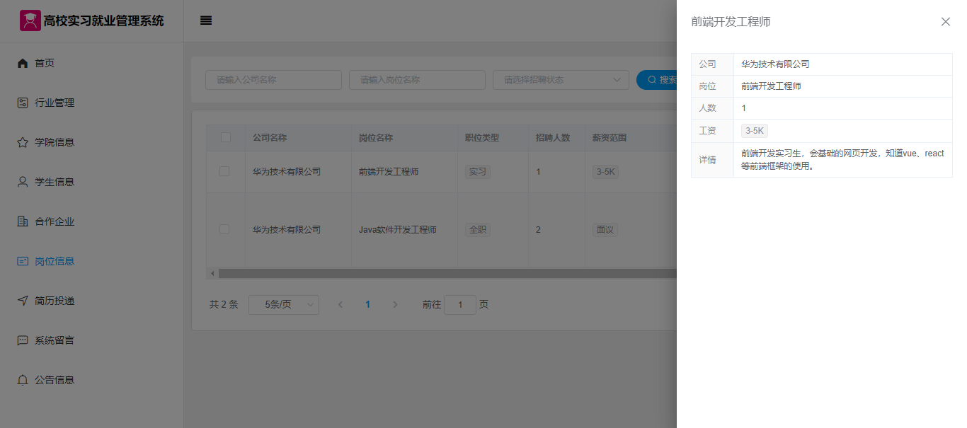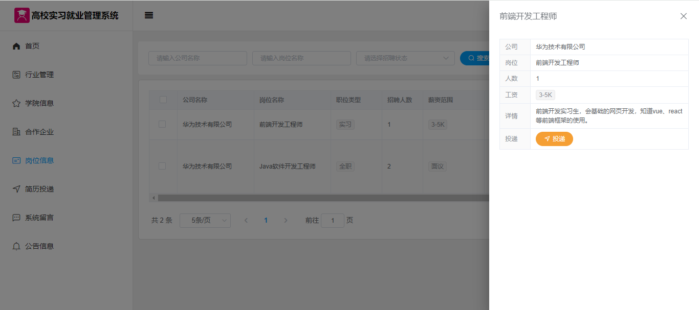 基于SpringBoot+Vue前后端分离的高校实习就业管理系统,本人原创开发。