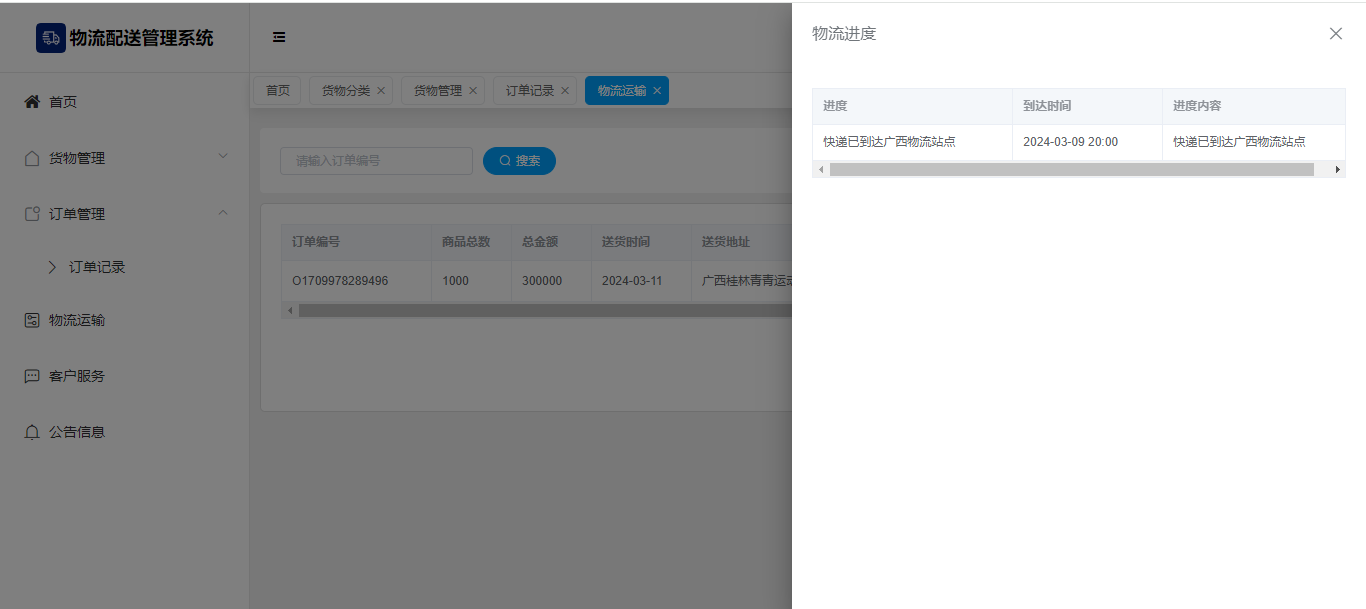 基于SpringBoot+Vue前后端分离的物流配送管理系统,本人原创开发。