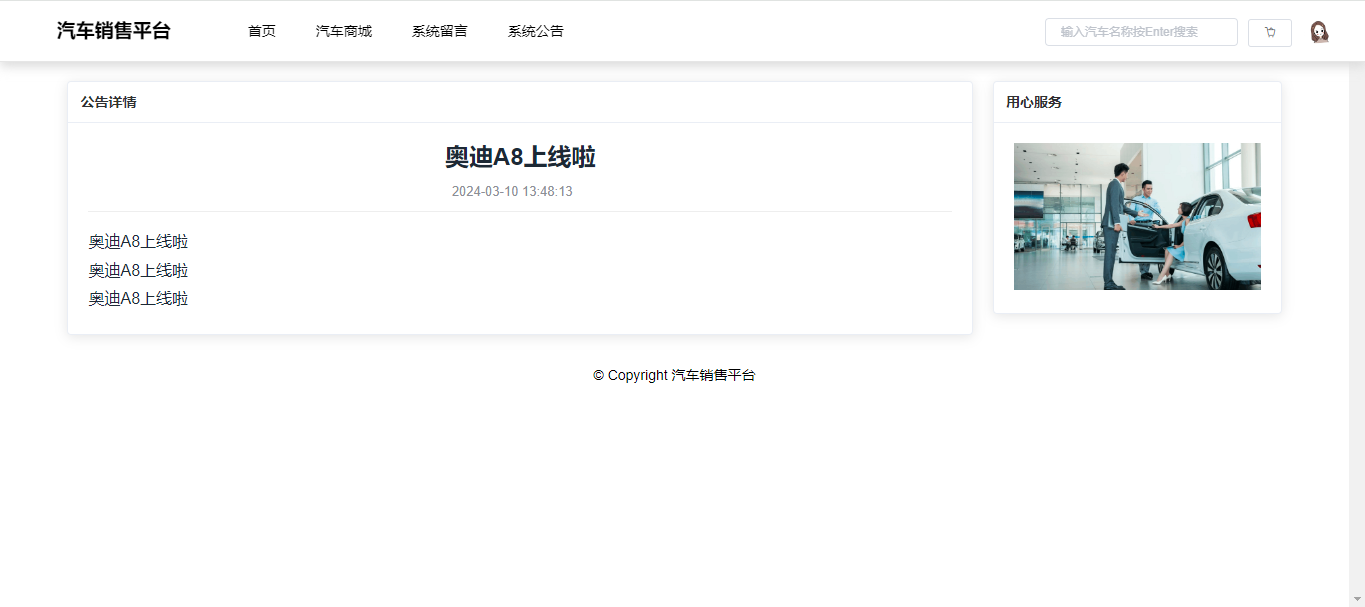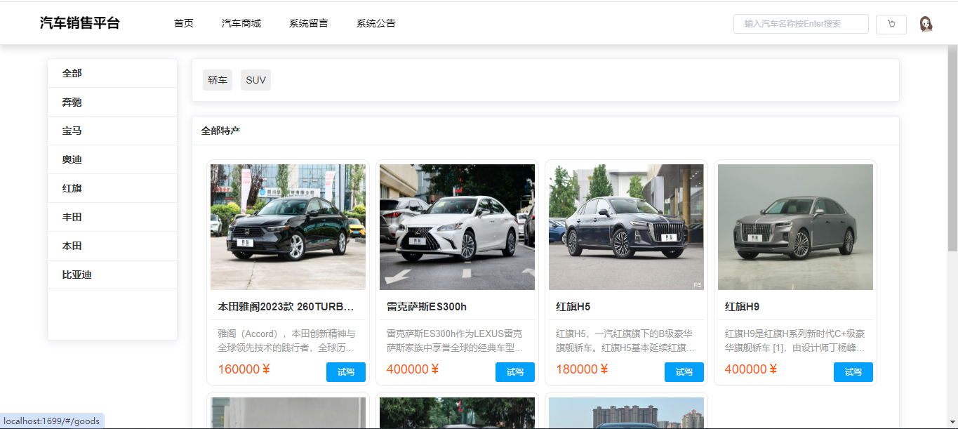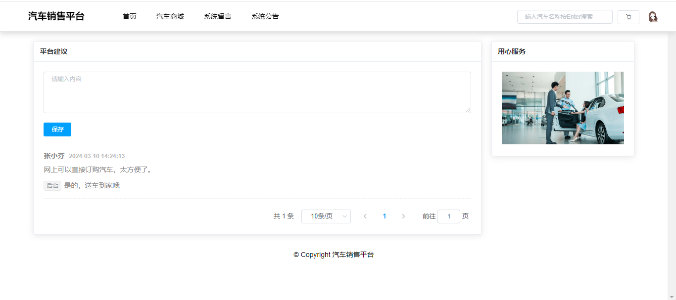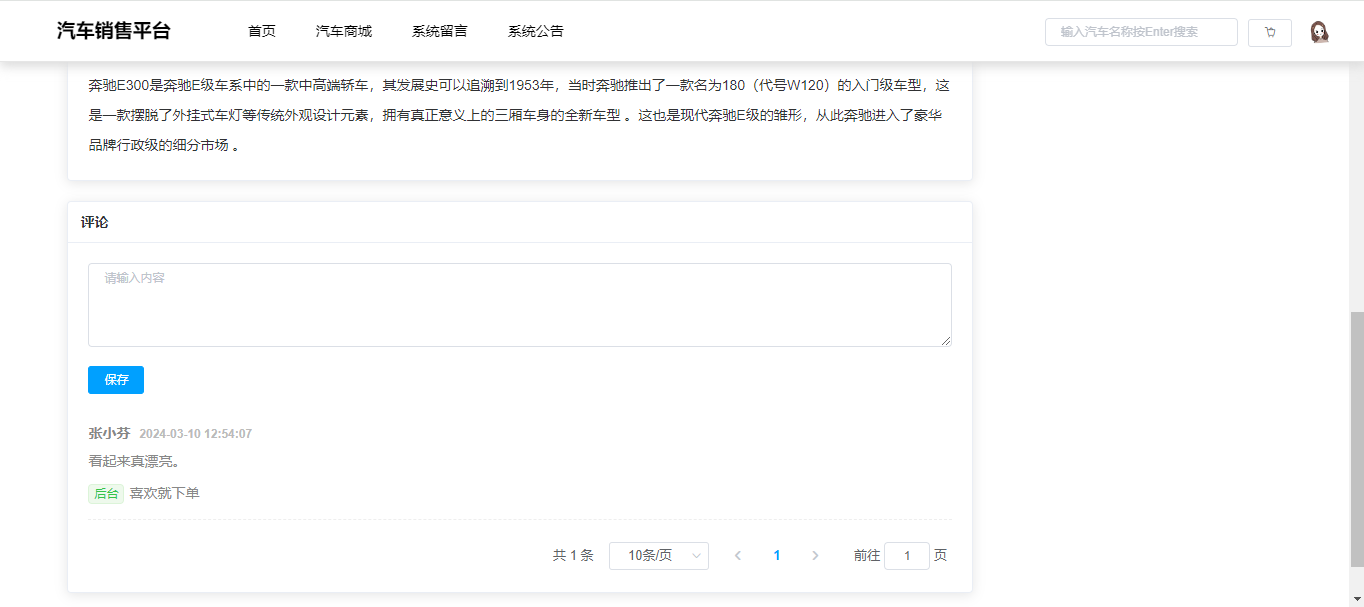 基于SpringBoot+Vue前后端分离的汽车销售平台(源码+文档),本人原创开发。