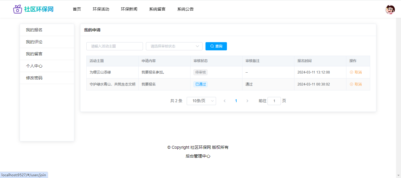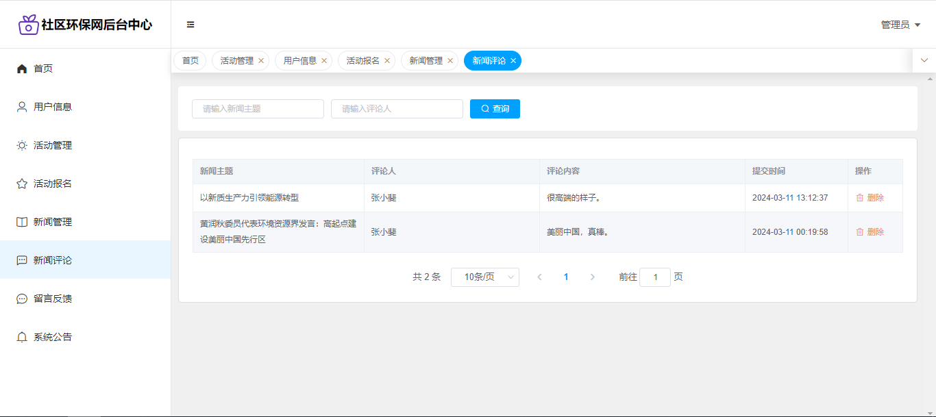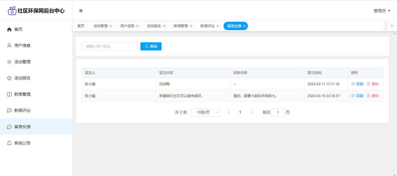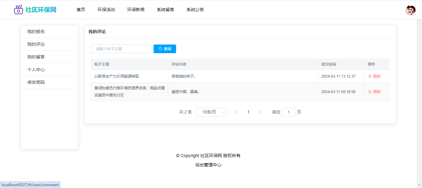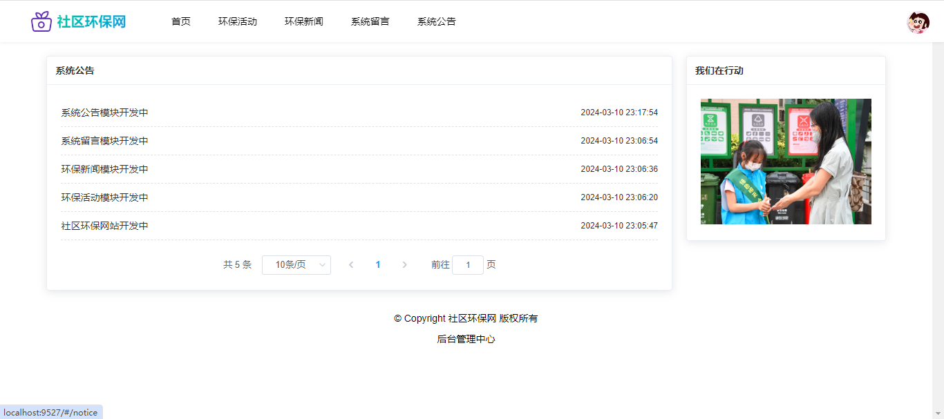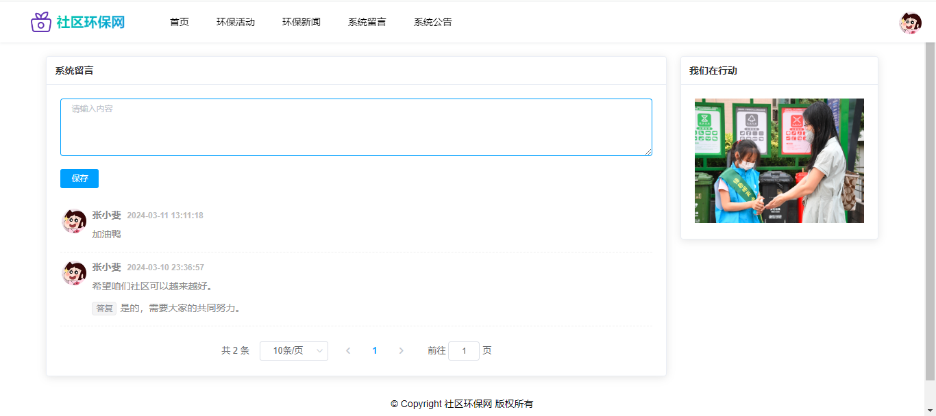 基于SpringBoot+Vue前后端分离的社区环保网,本人原创开发。