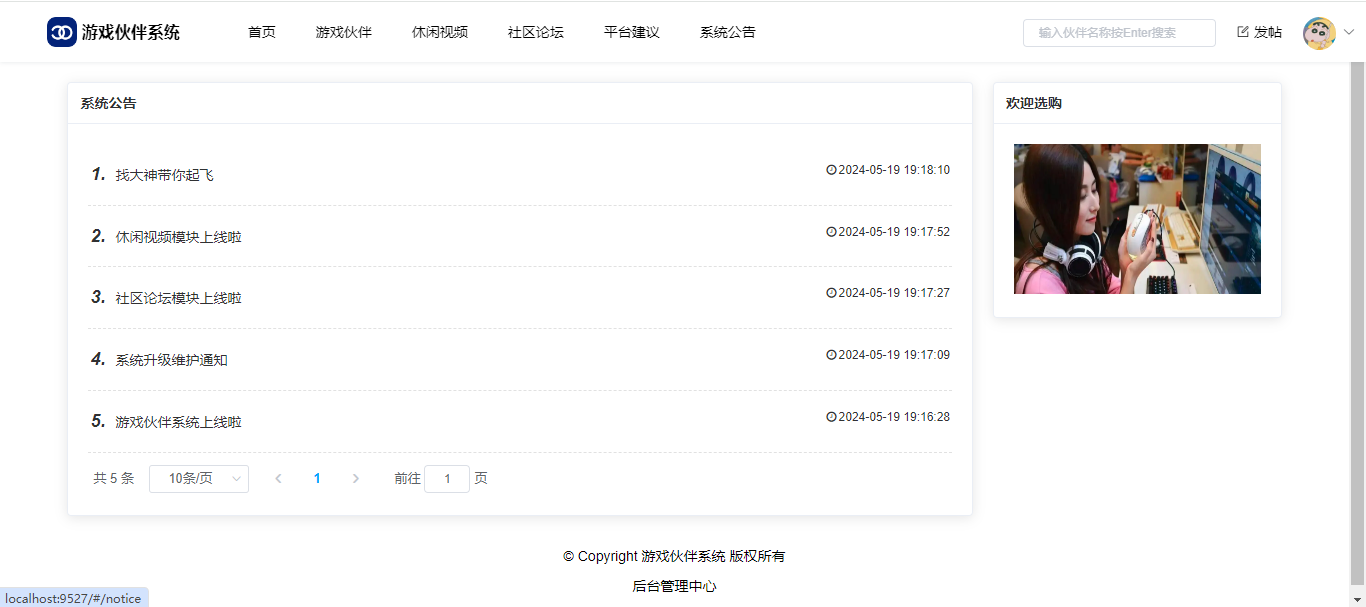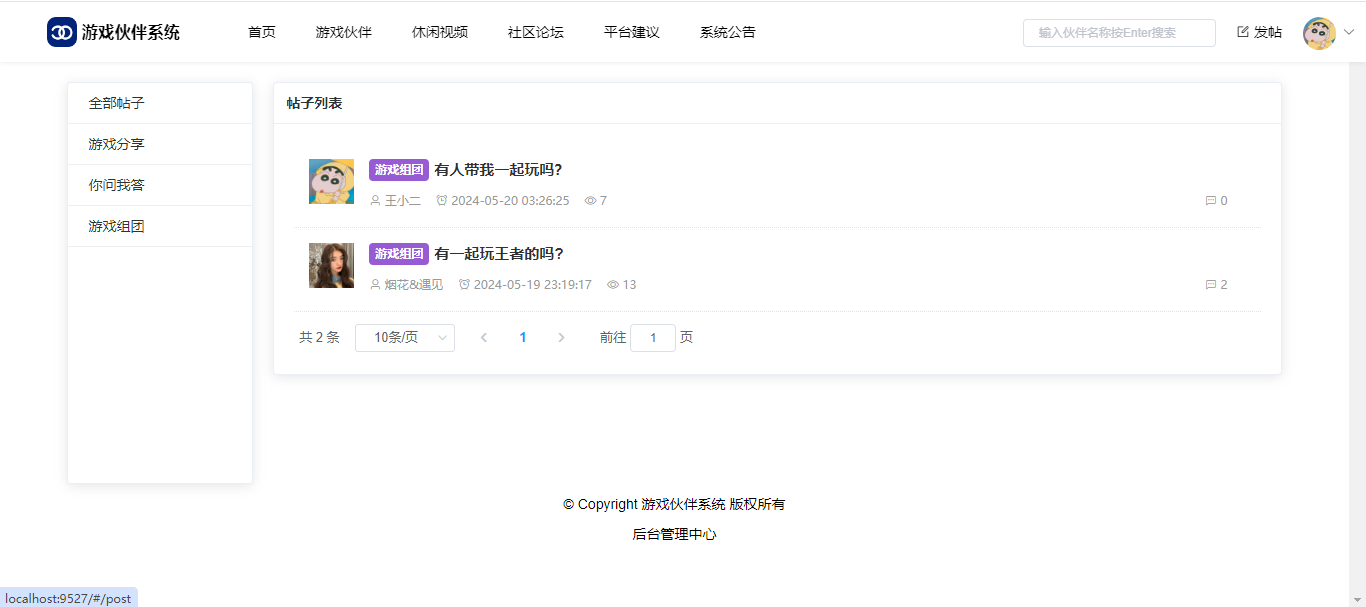 基于SpringBoot+Vue前后端分离的游戏伙伴系统,本人原创开发。