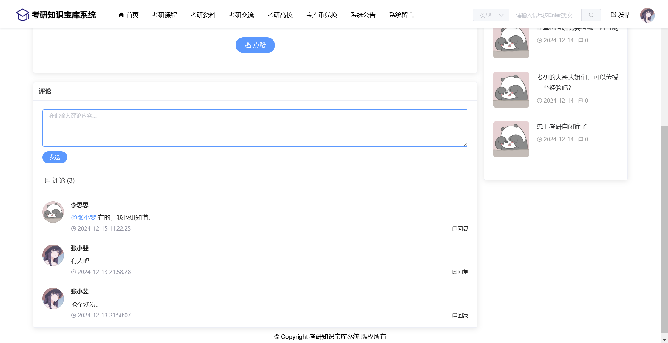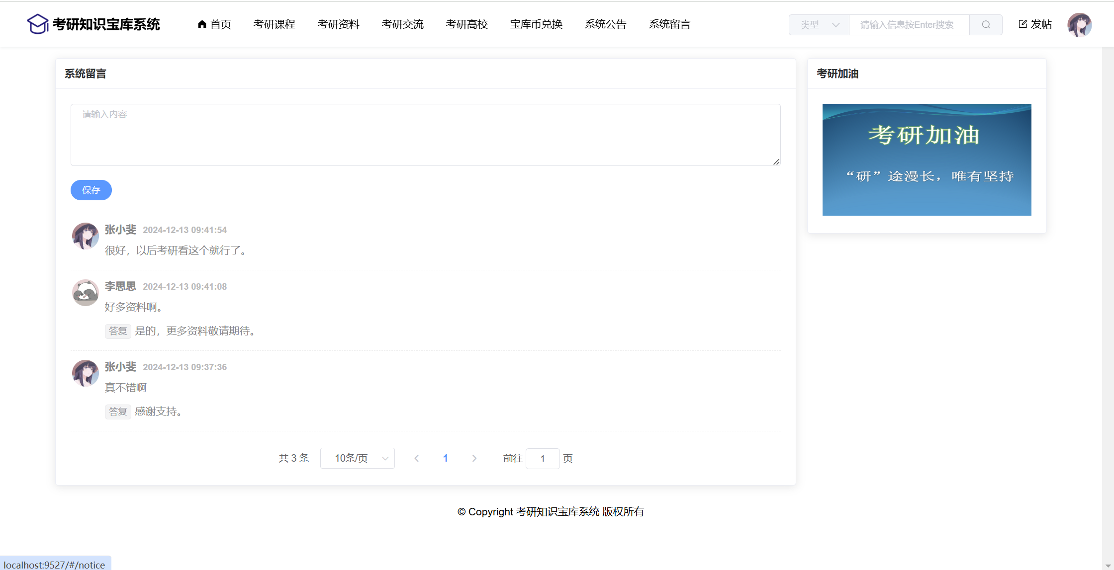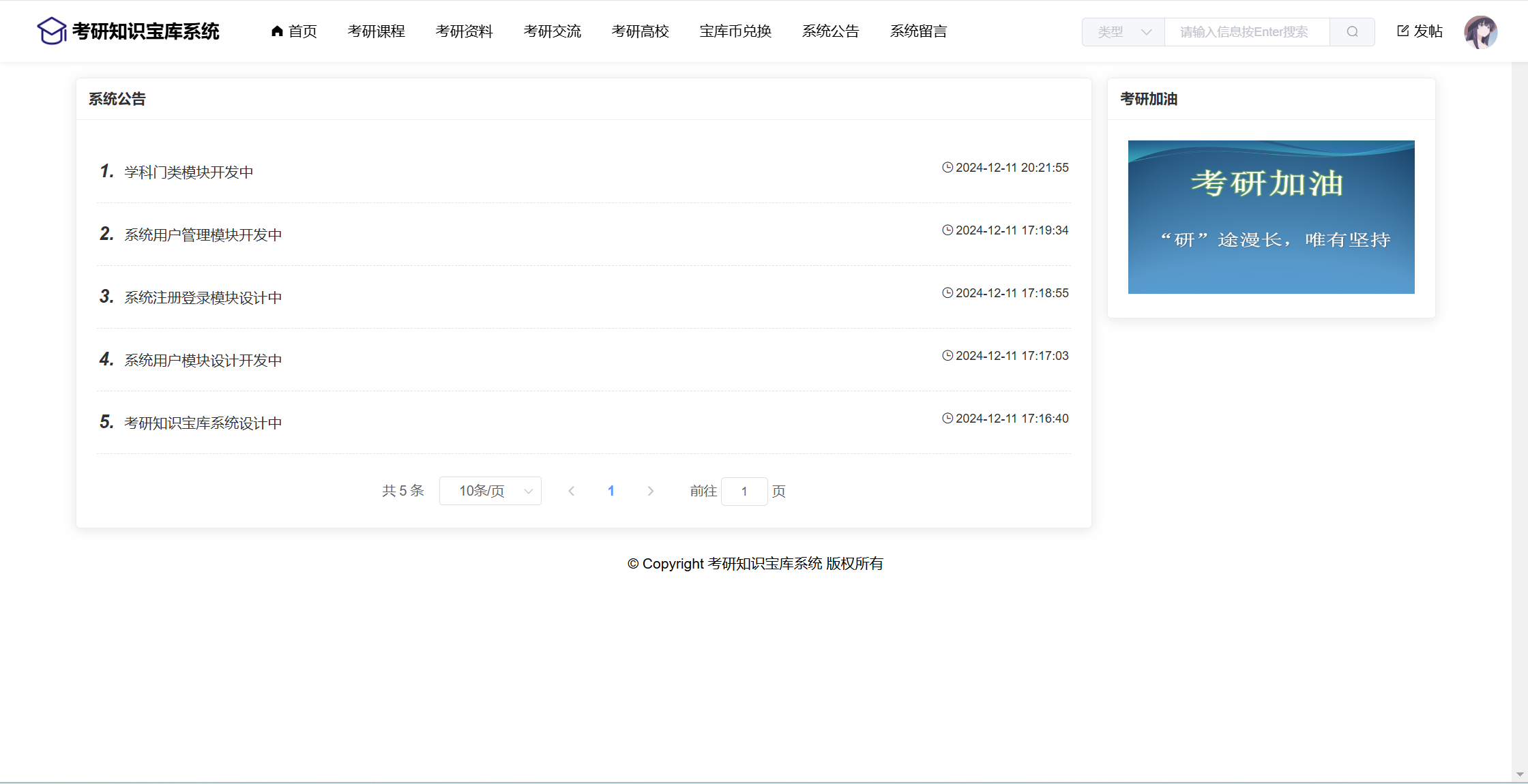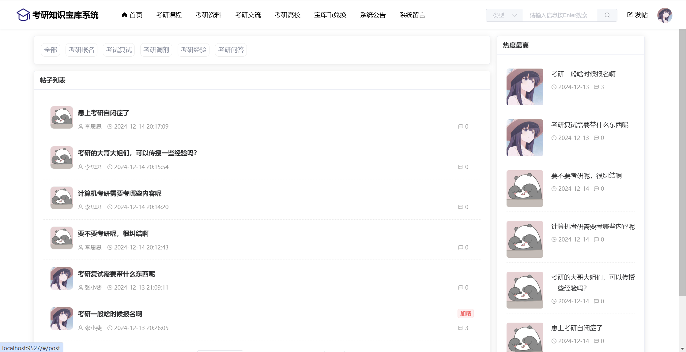 基于SpringBoot+Vue前后端分离的考研知识宝库系统,本人原创开发。