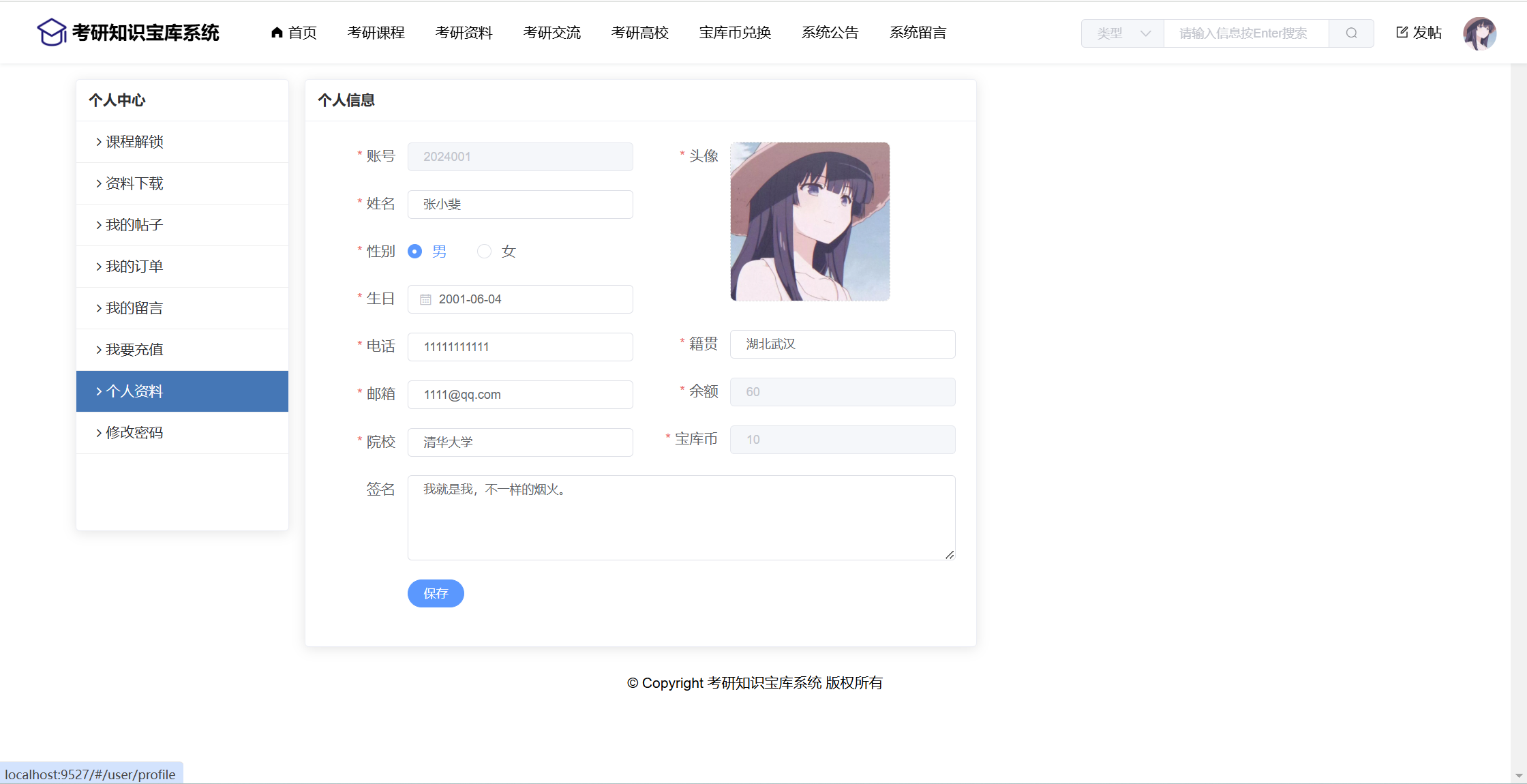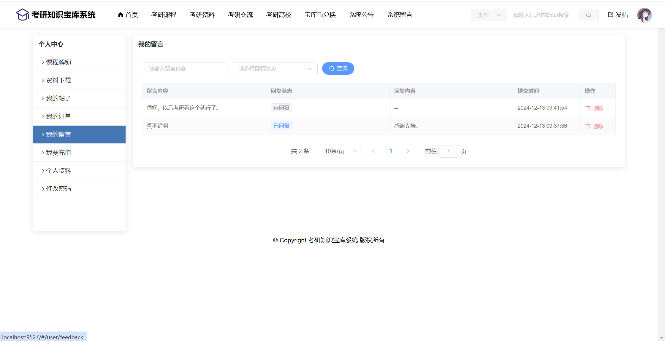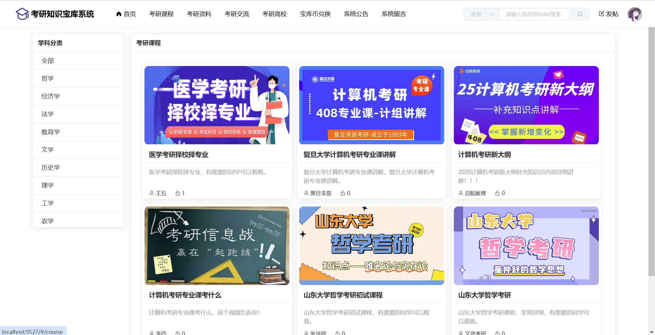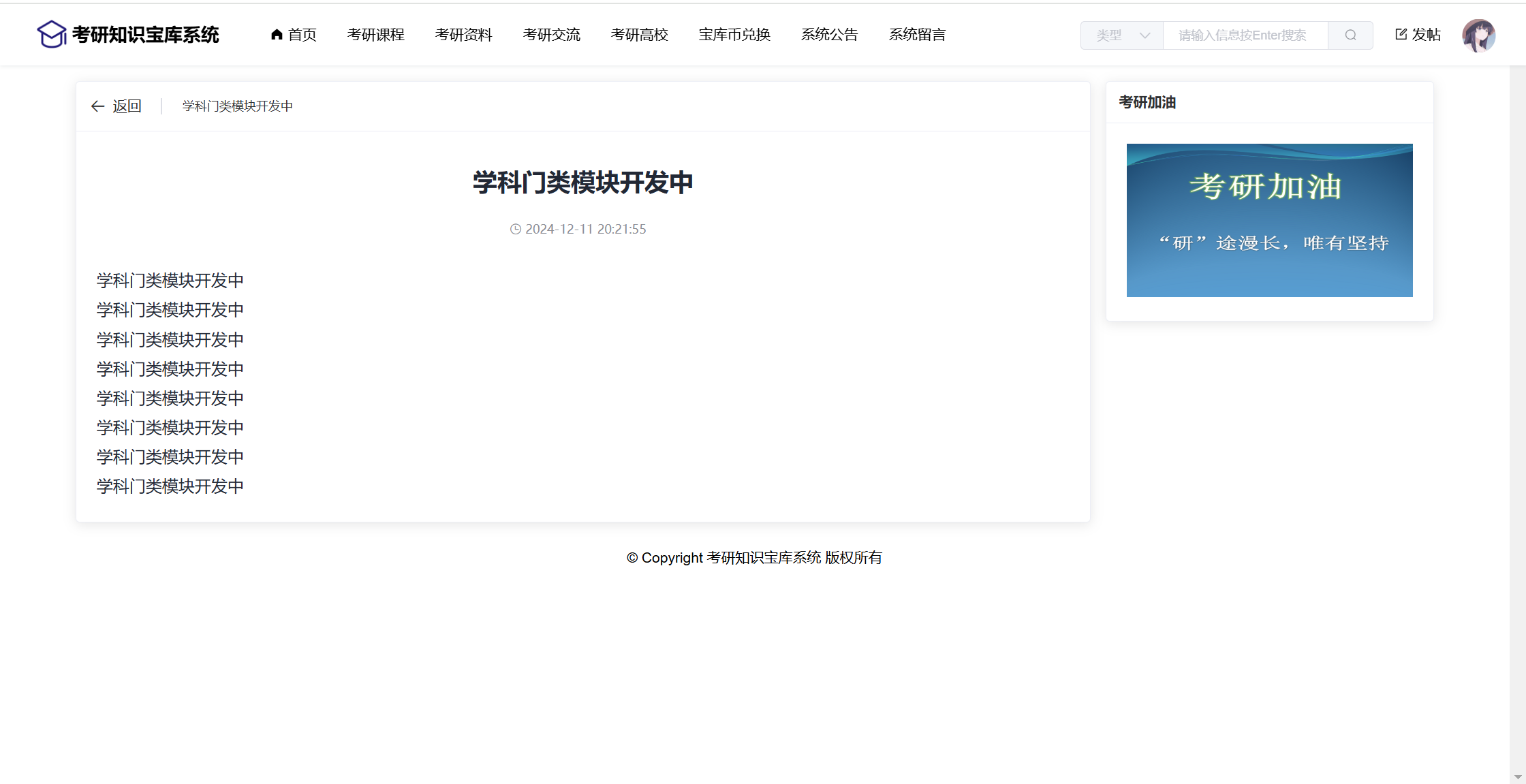 基于SpringBoot+Vue前后端分离的考研知识宝库系统,本人原创开发。