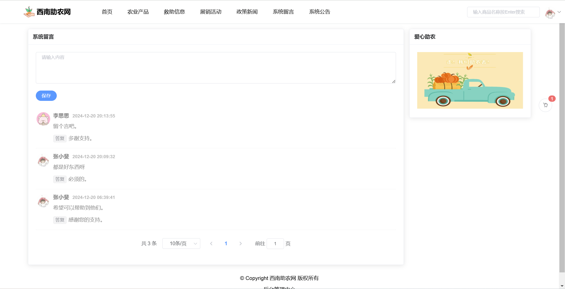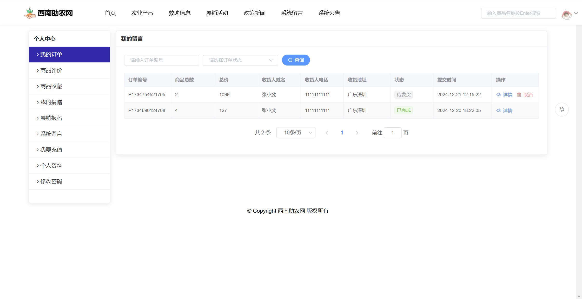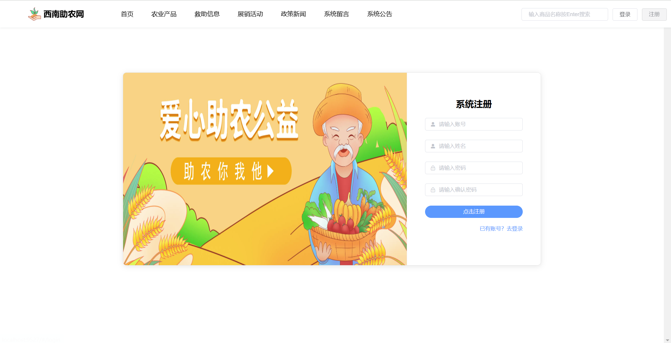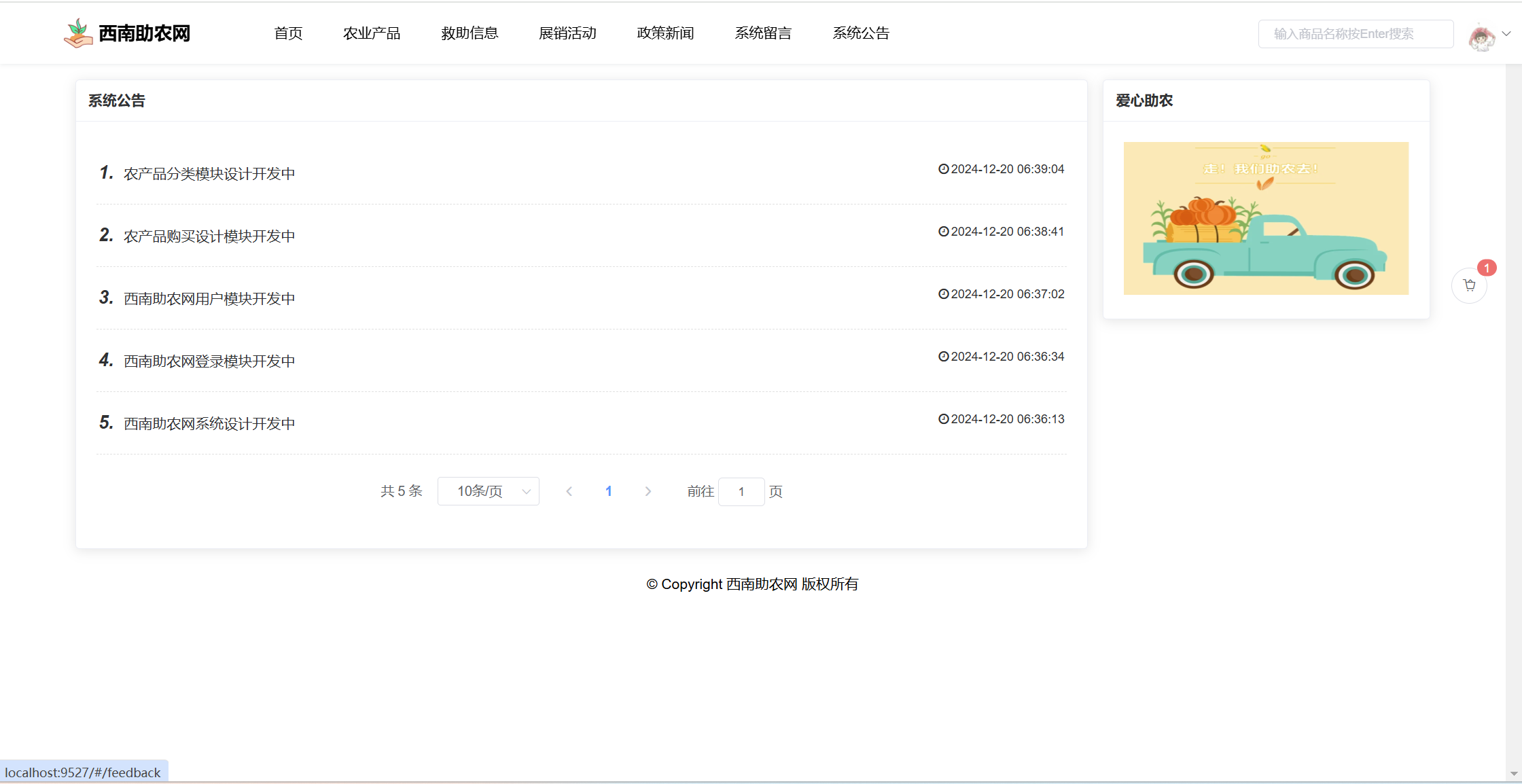 基于SpringBoot+Vue前后端分离的西南助农网站系统,本人原创开发。