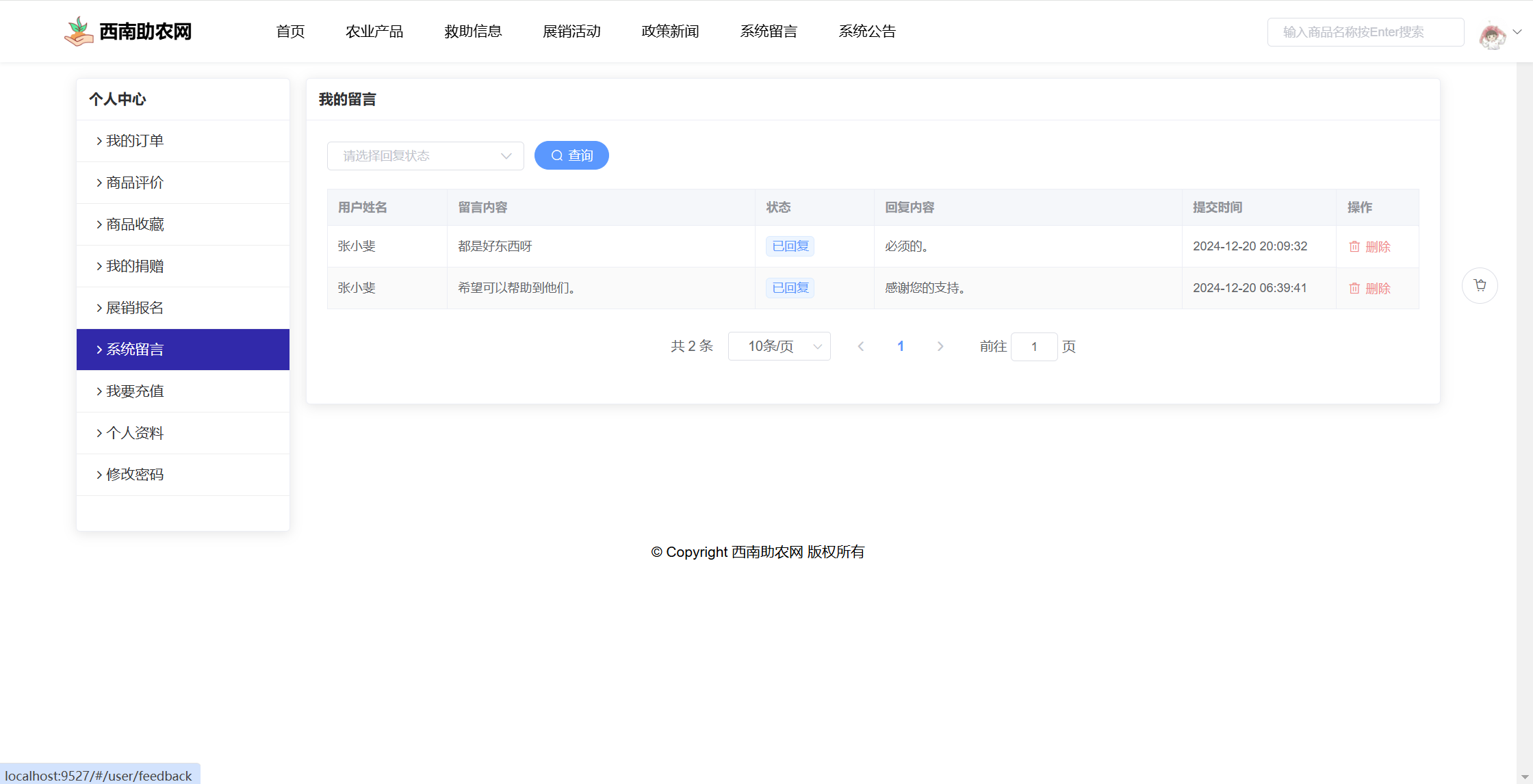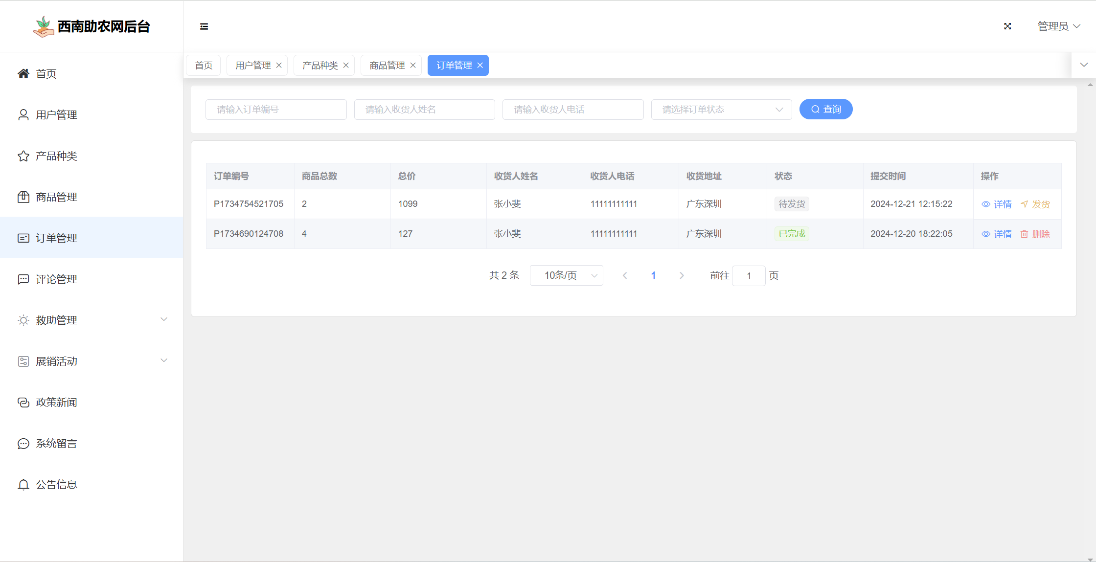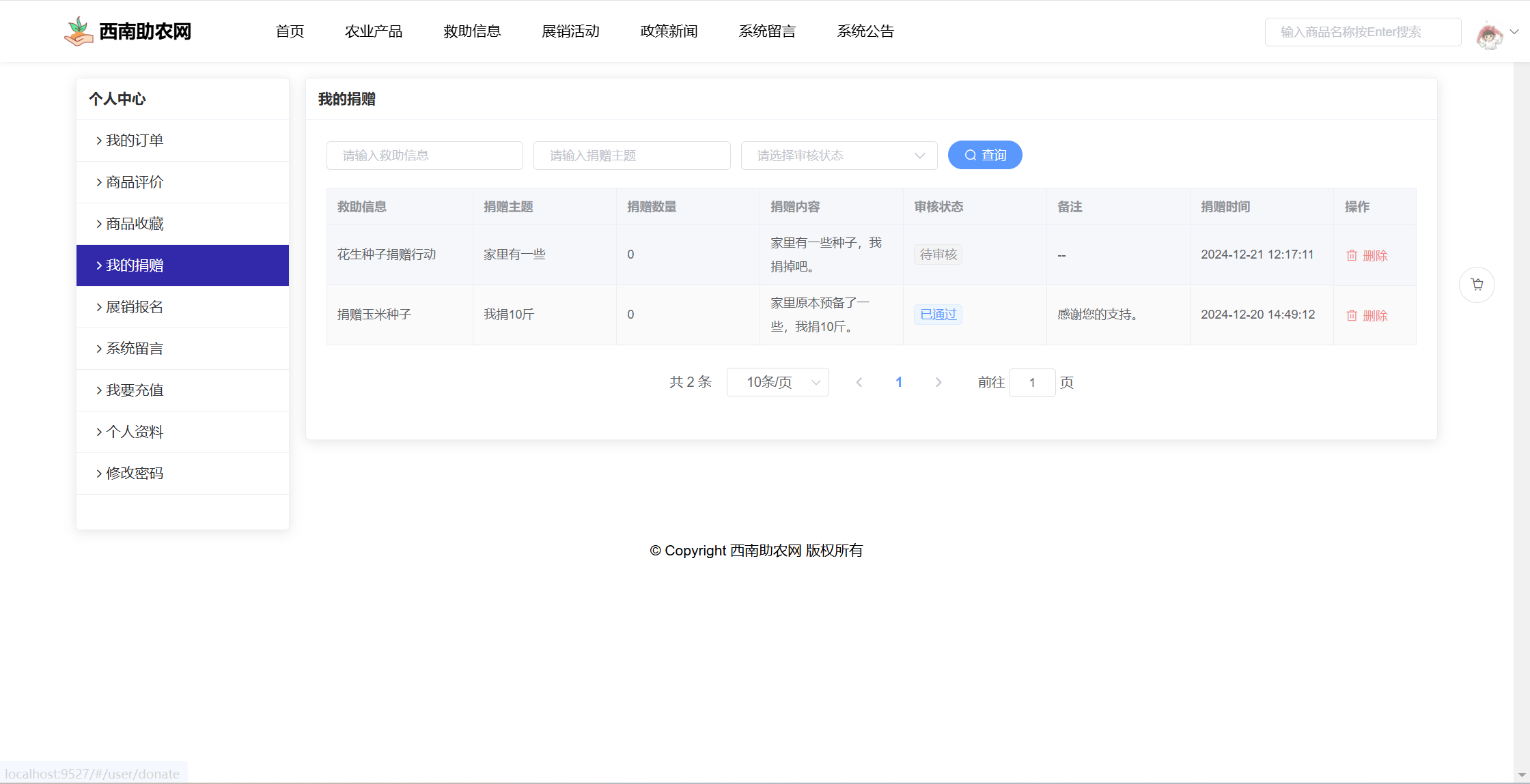 基于SpringBoot+Vue前后端分离的西南助农网站系统,本人原创开发。