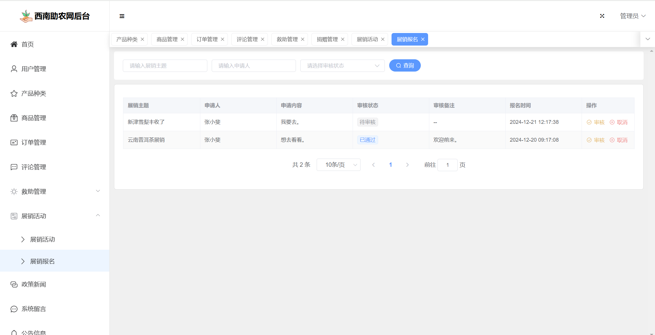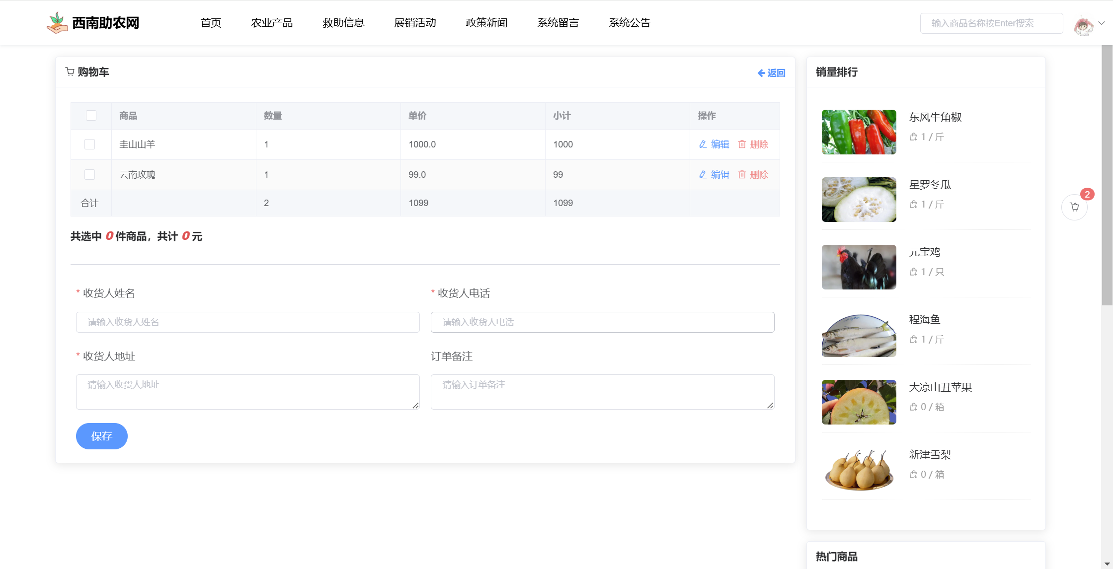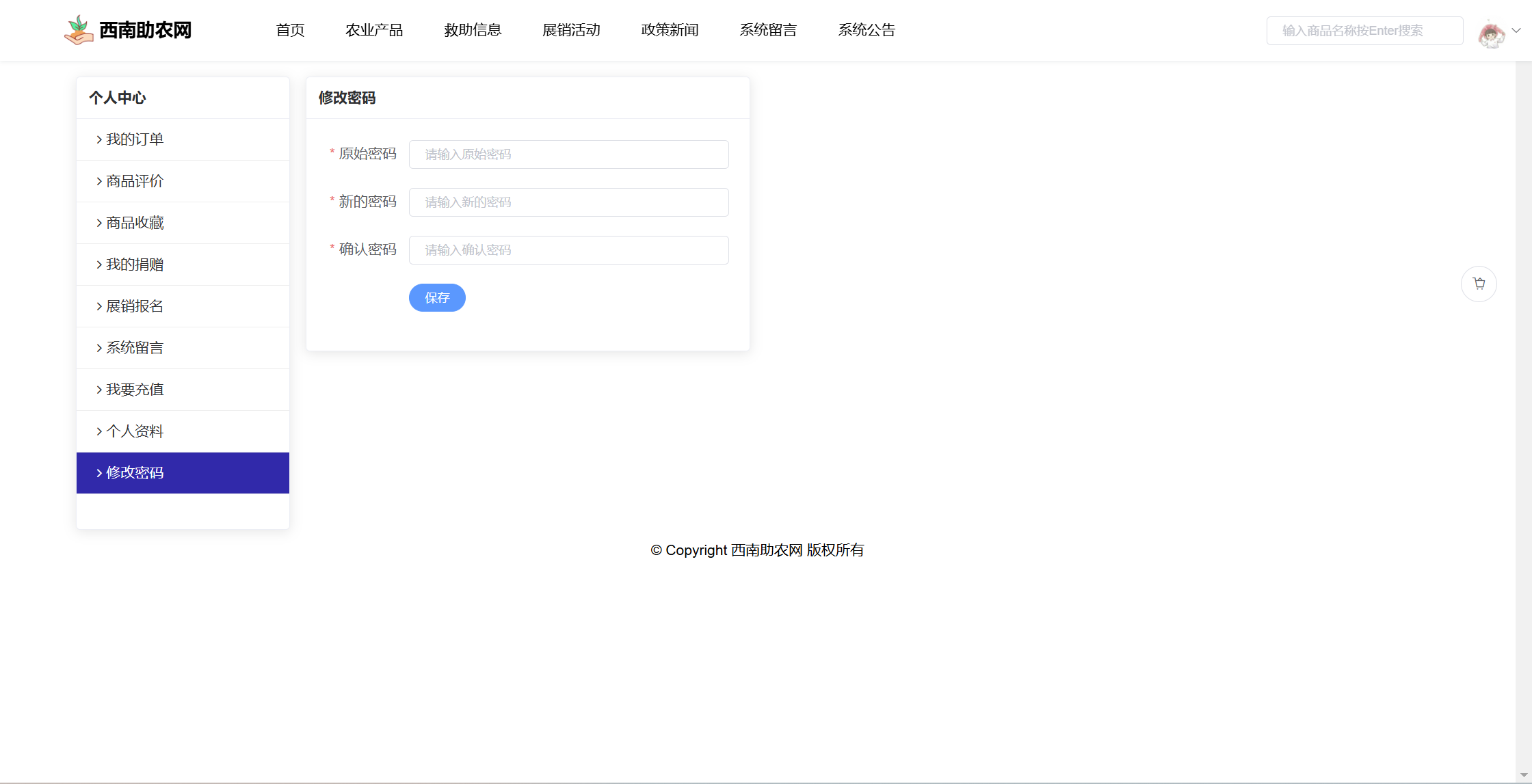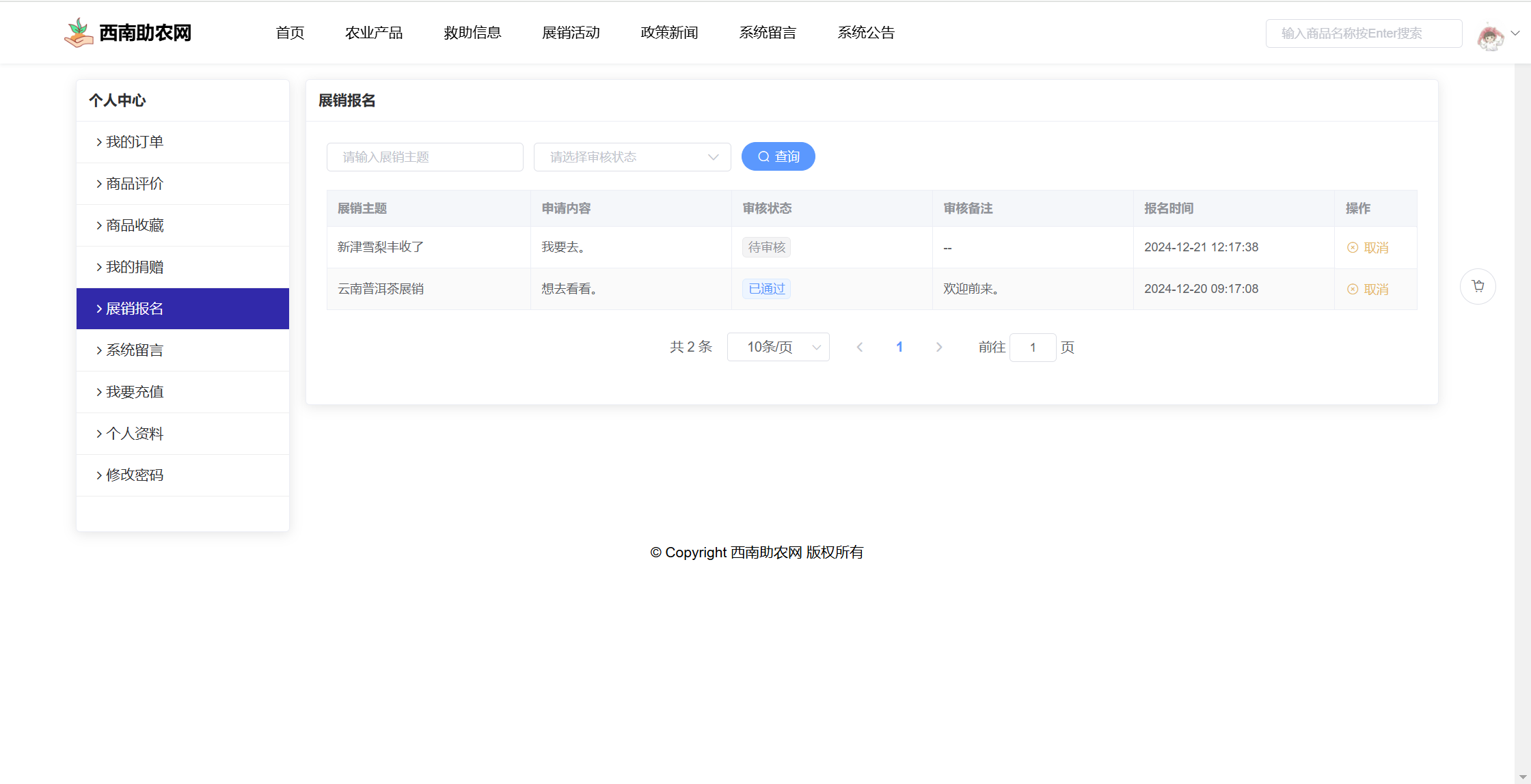 基于SpringBoot+Vue前后端分离的西南助农网站系统,本人原创开发。
