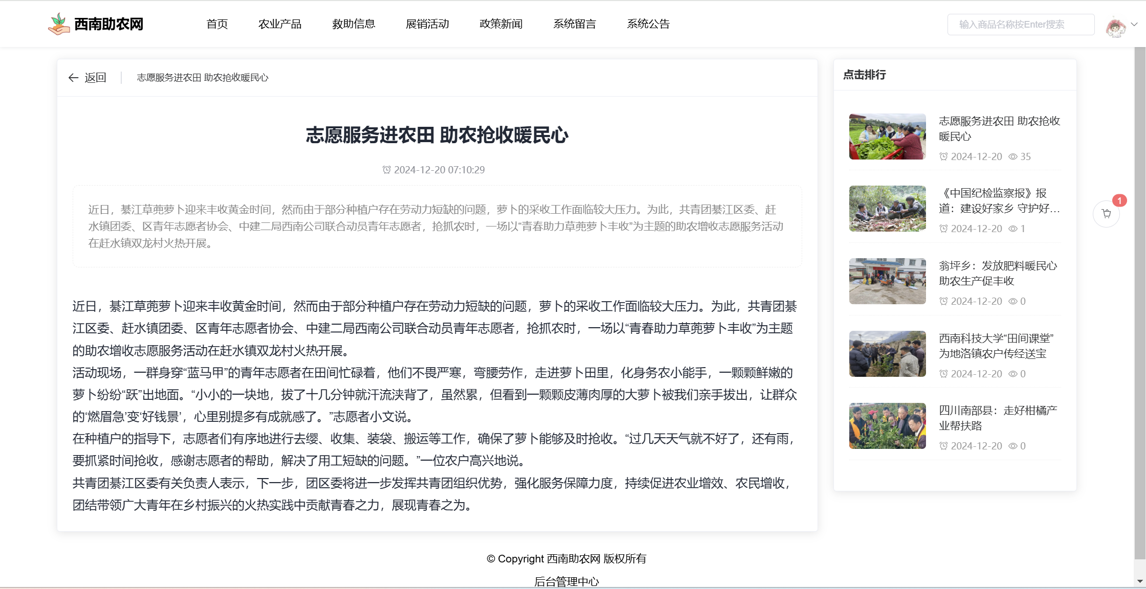 【原创】SpringBoot+Vue西南助农网站系统