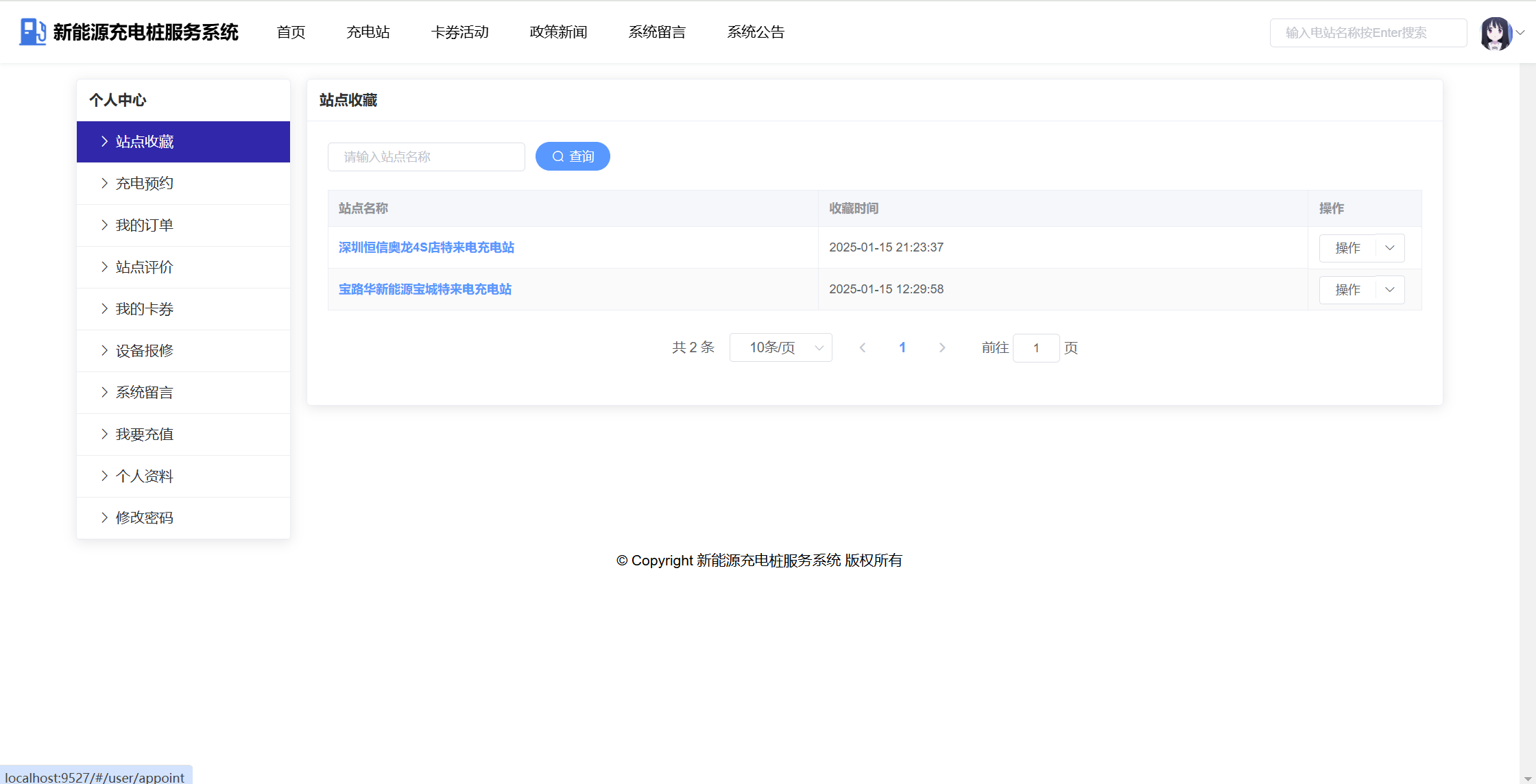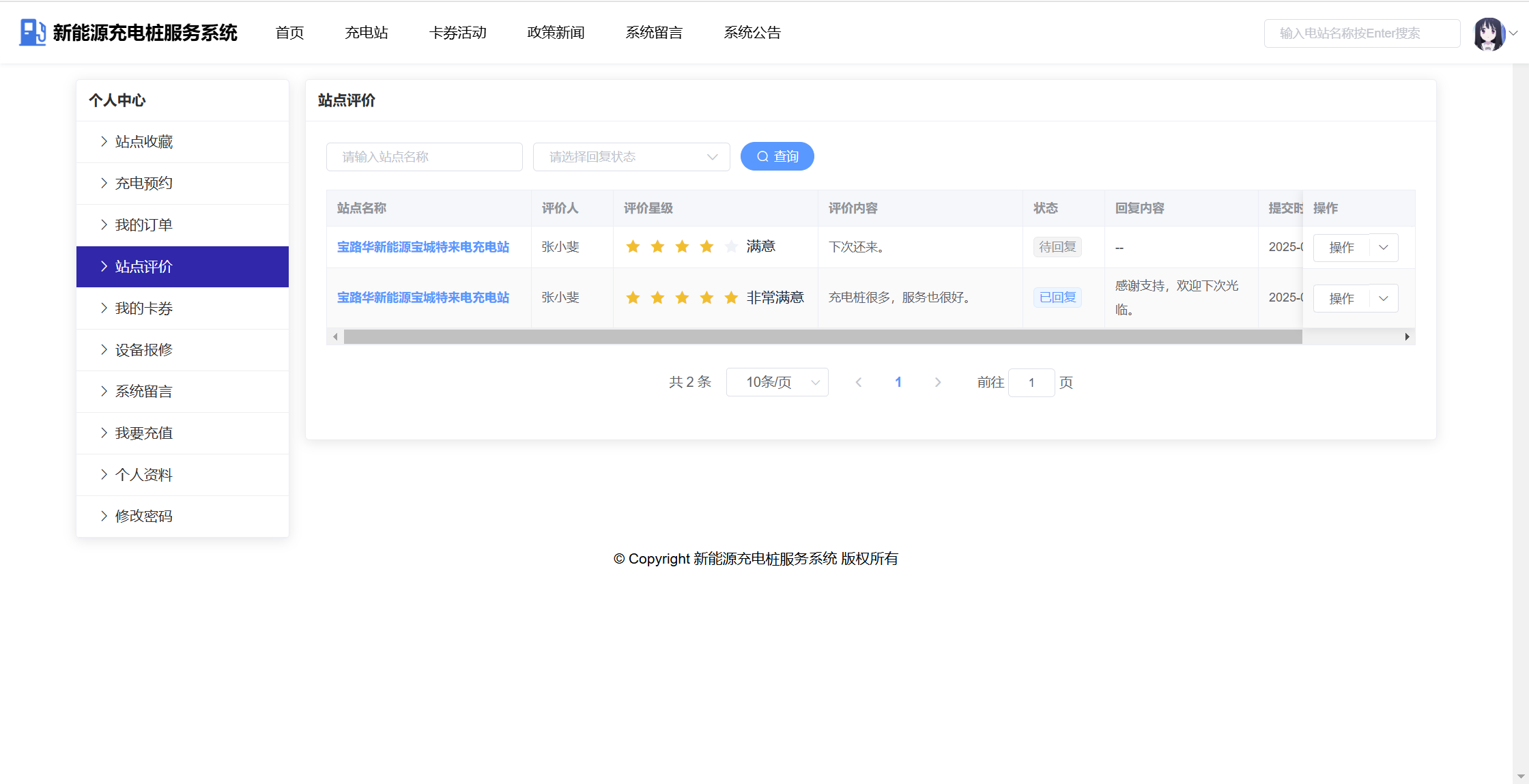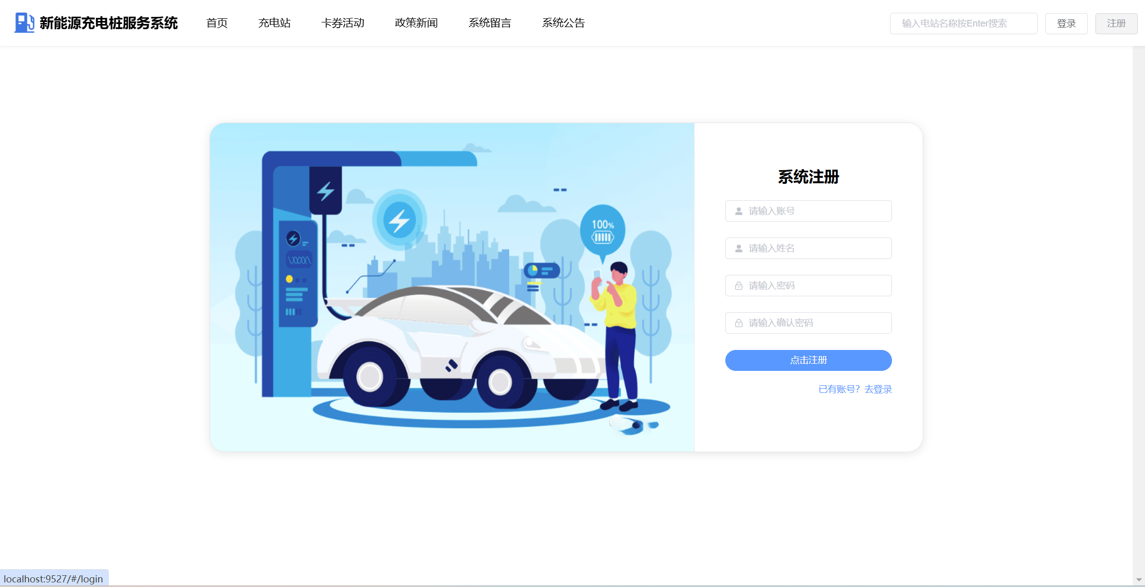 基于SpringBoot+Vue前后端分离的新能源充电桩服务网站,本人原创开发。