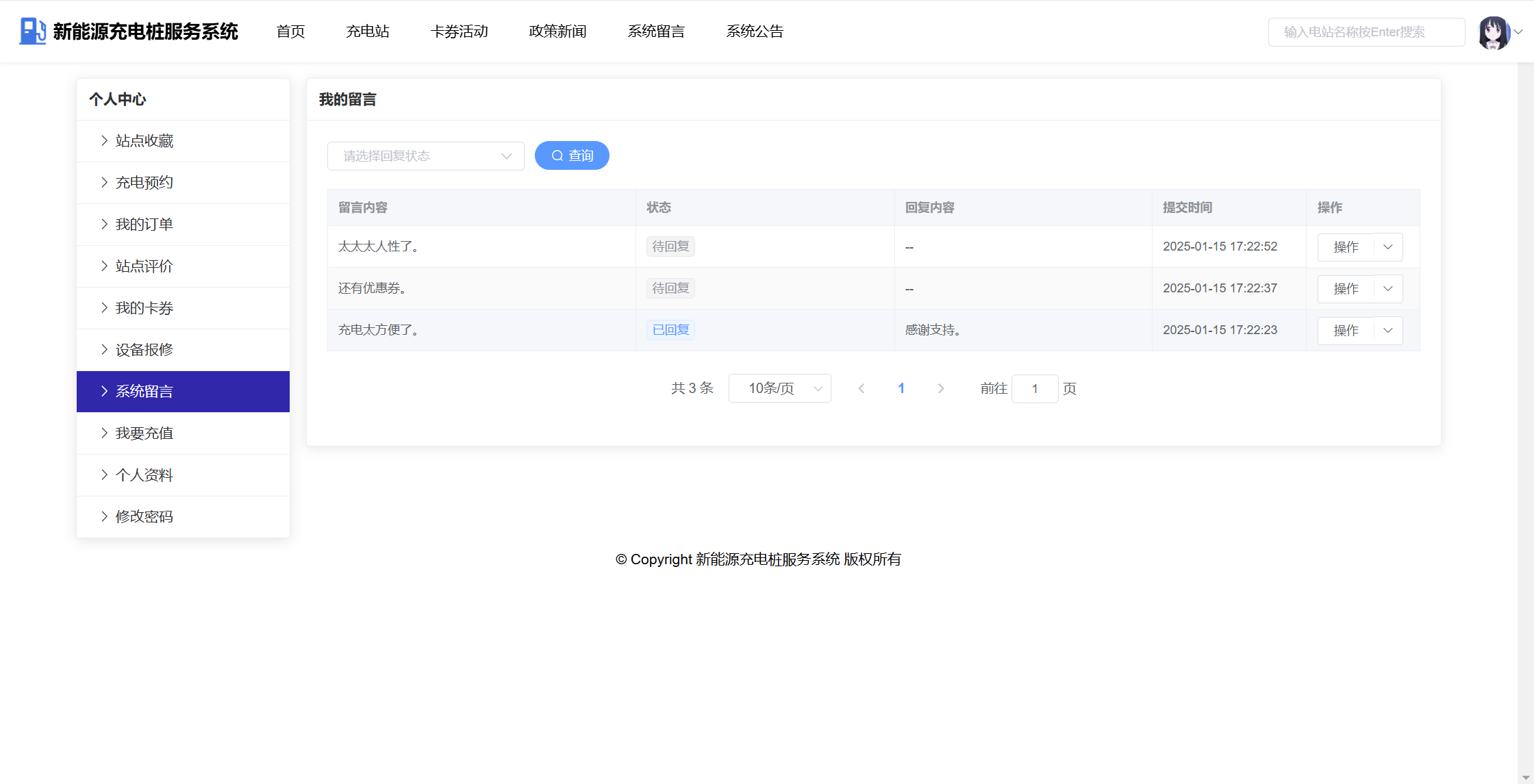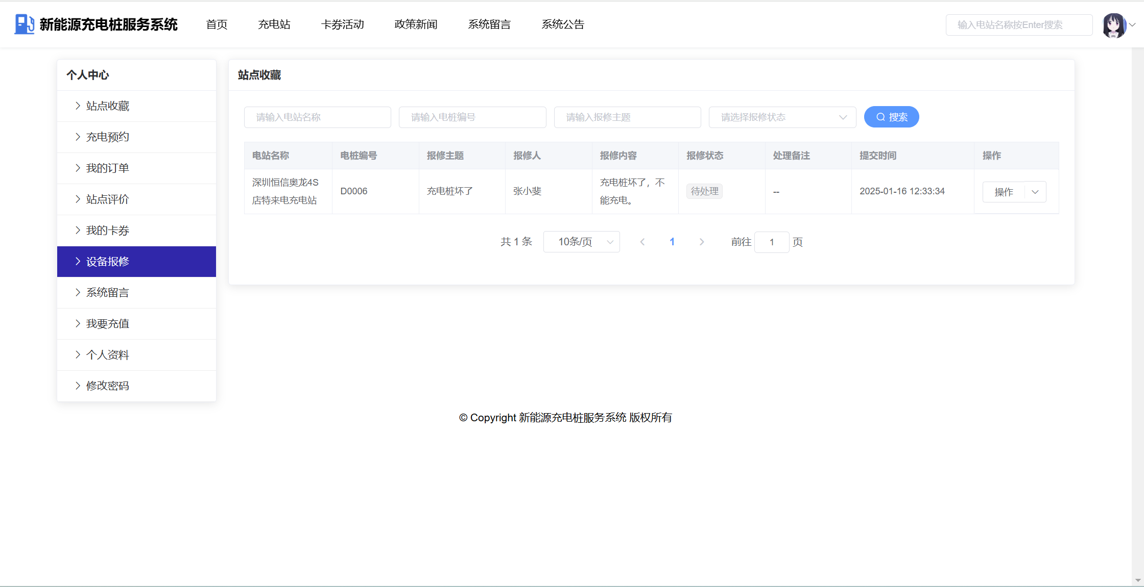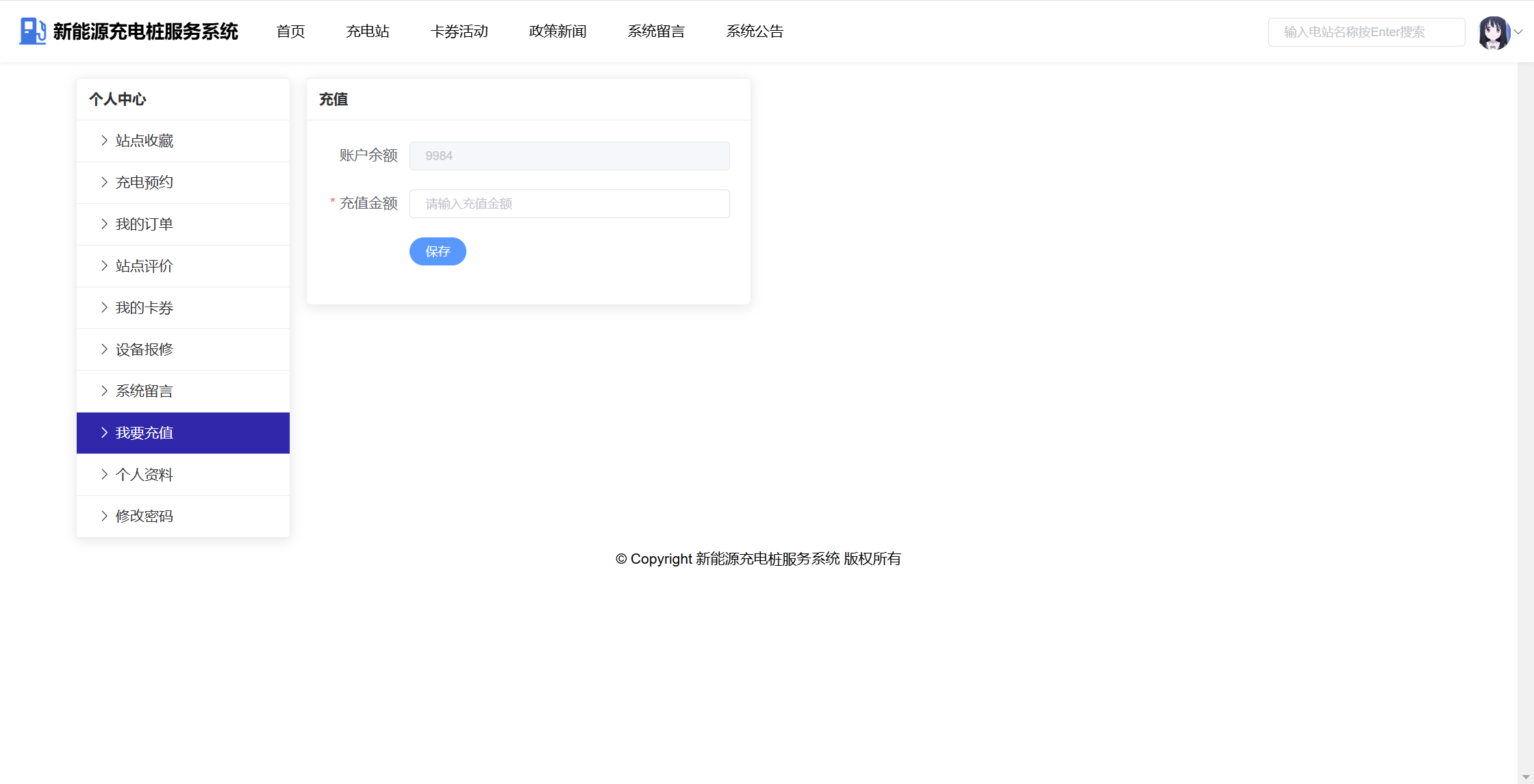 基于SpringBoot+Vue前后端分离的新能源充电桩服务网站,本人原创开发。