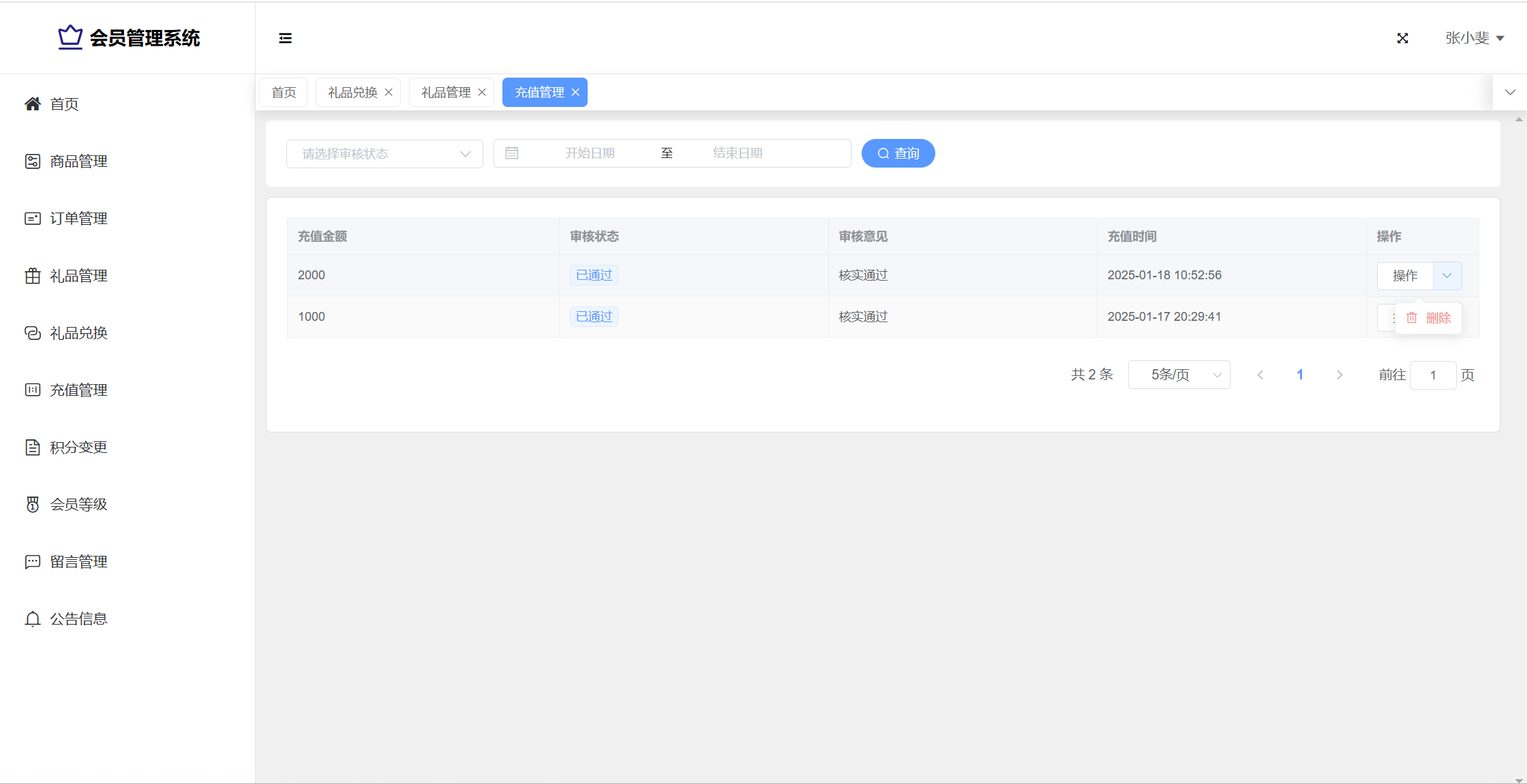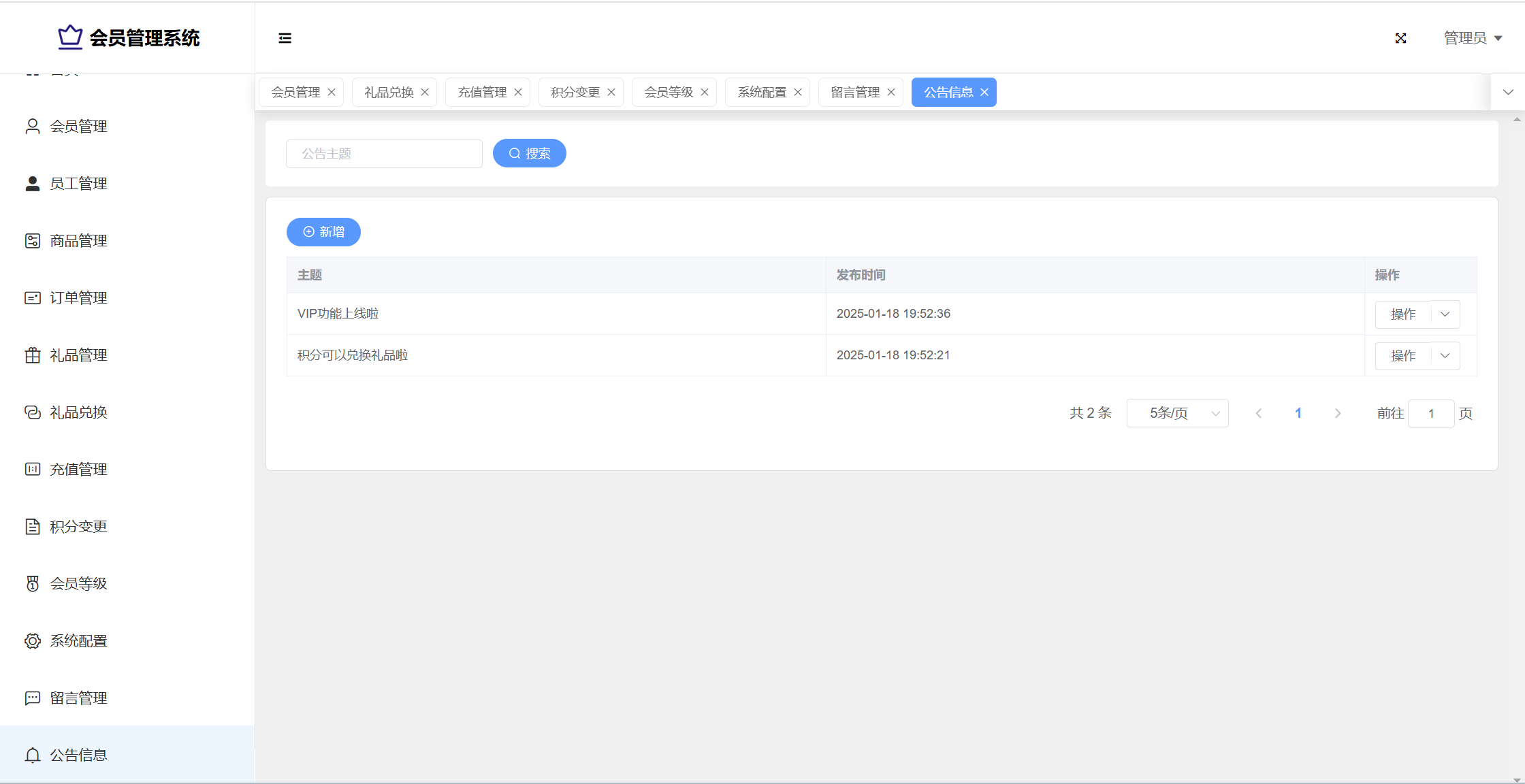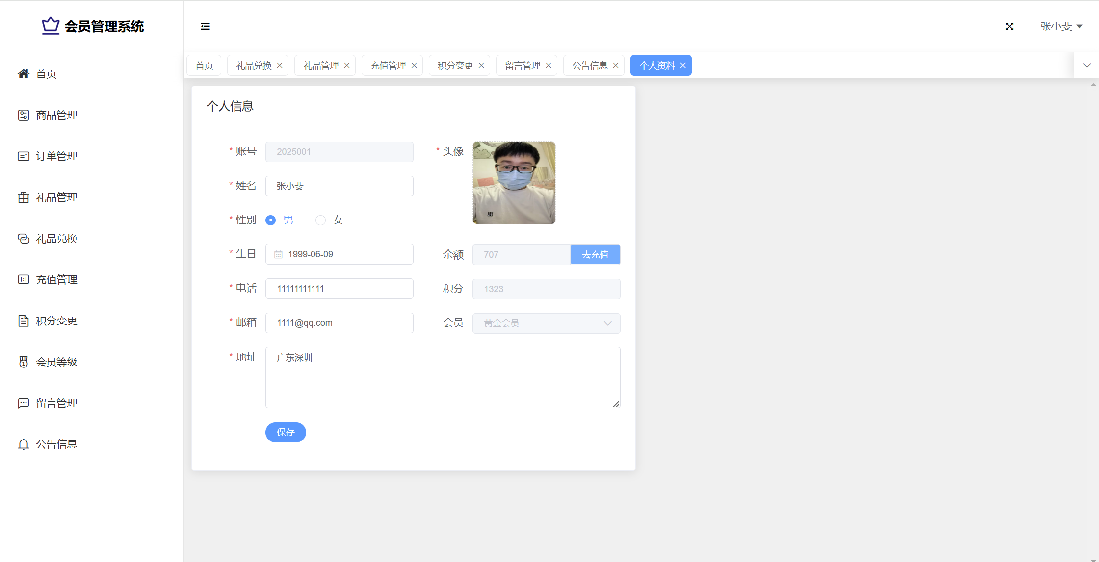 基于SpringBoot+Vue前后端分离的会员信息管理网站,本人原创开发。