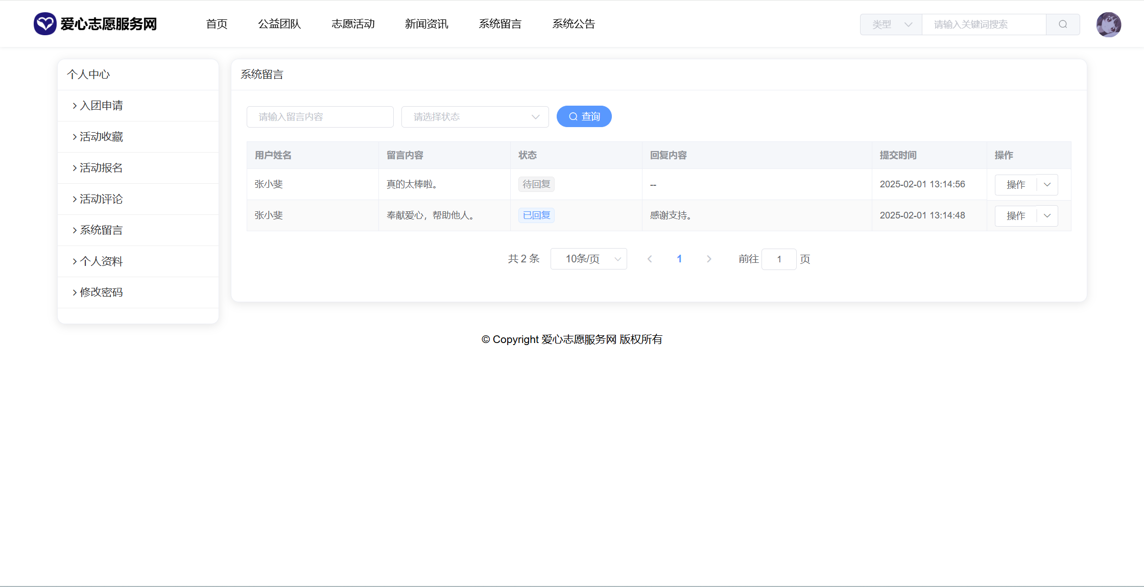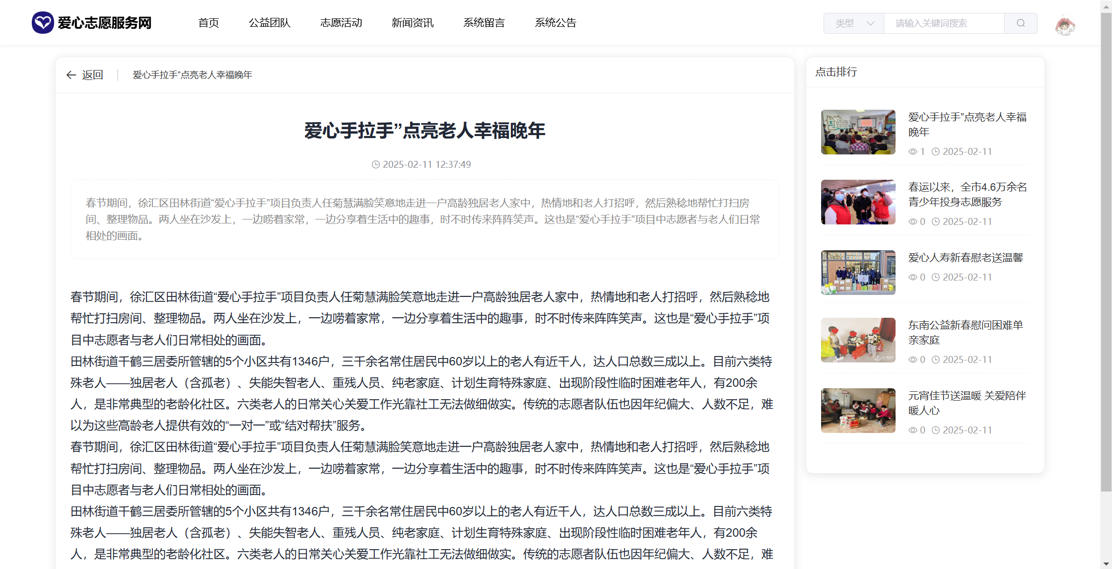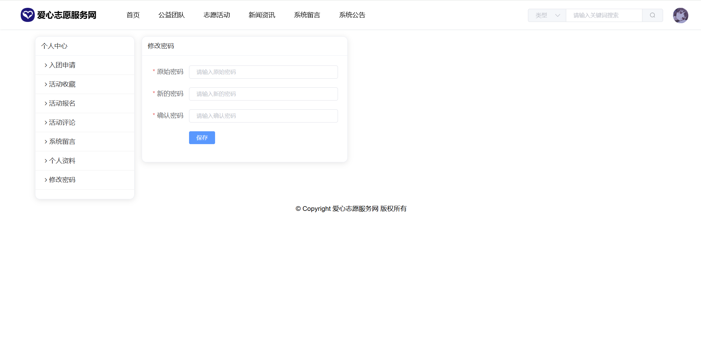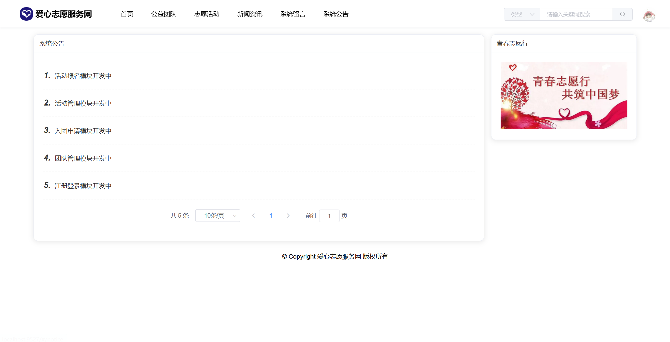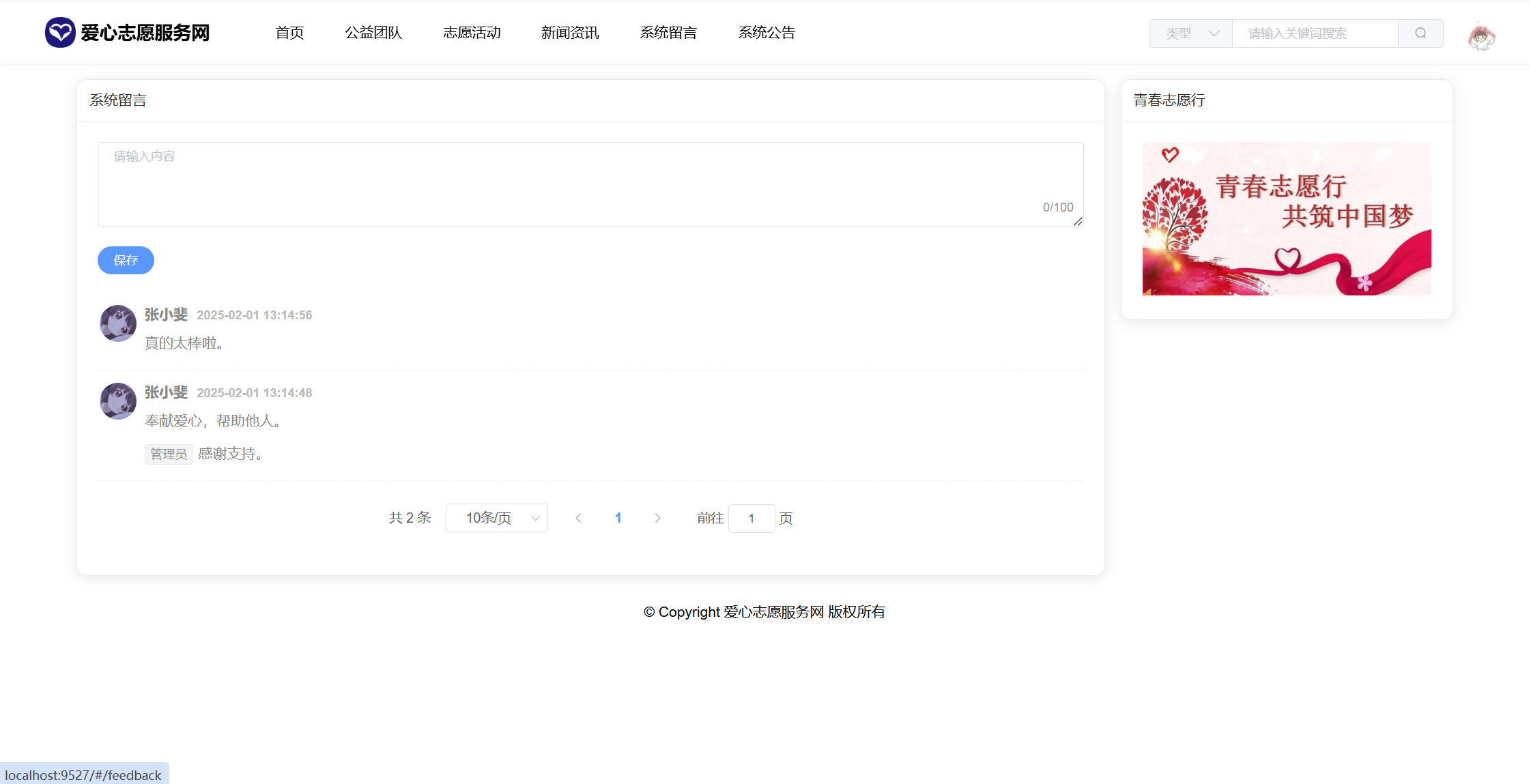 基于SpringBoot+Vue前后端分离的爱心志愿服务网系统(源码+文档),本人原创开发。