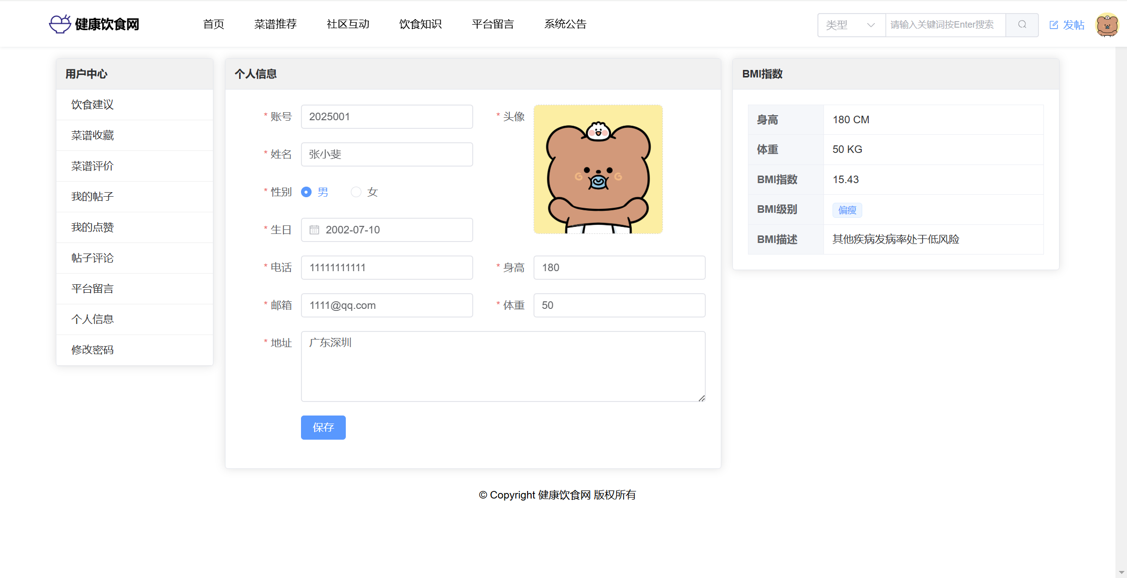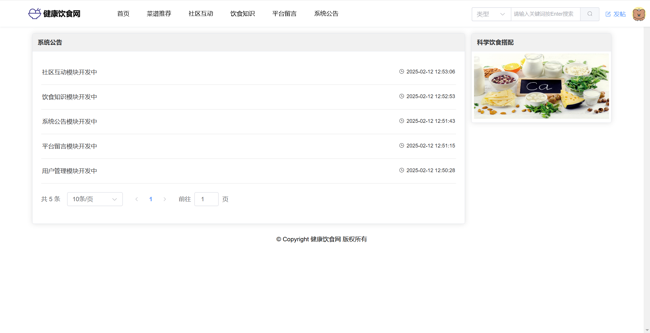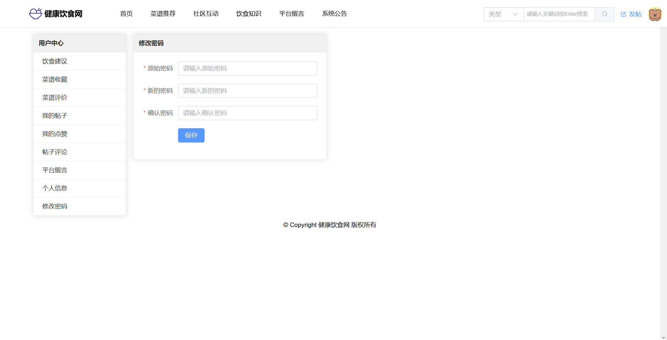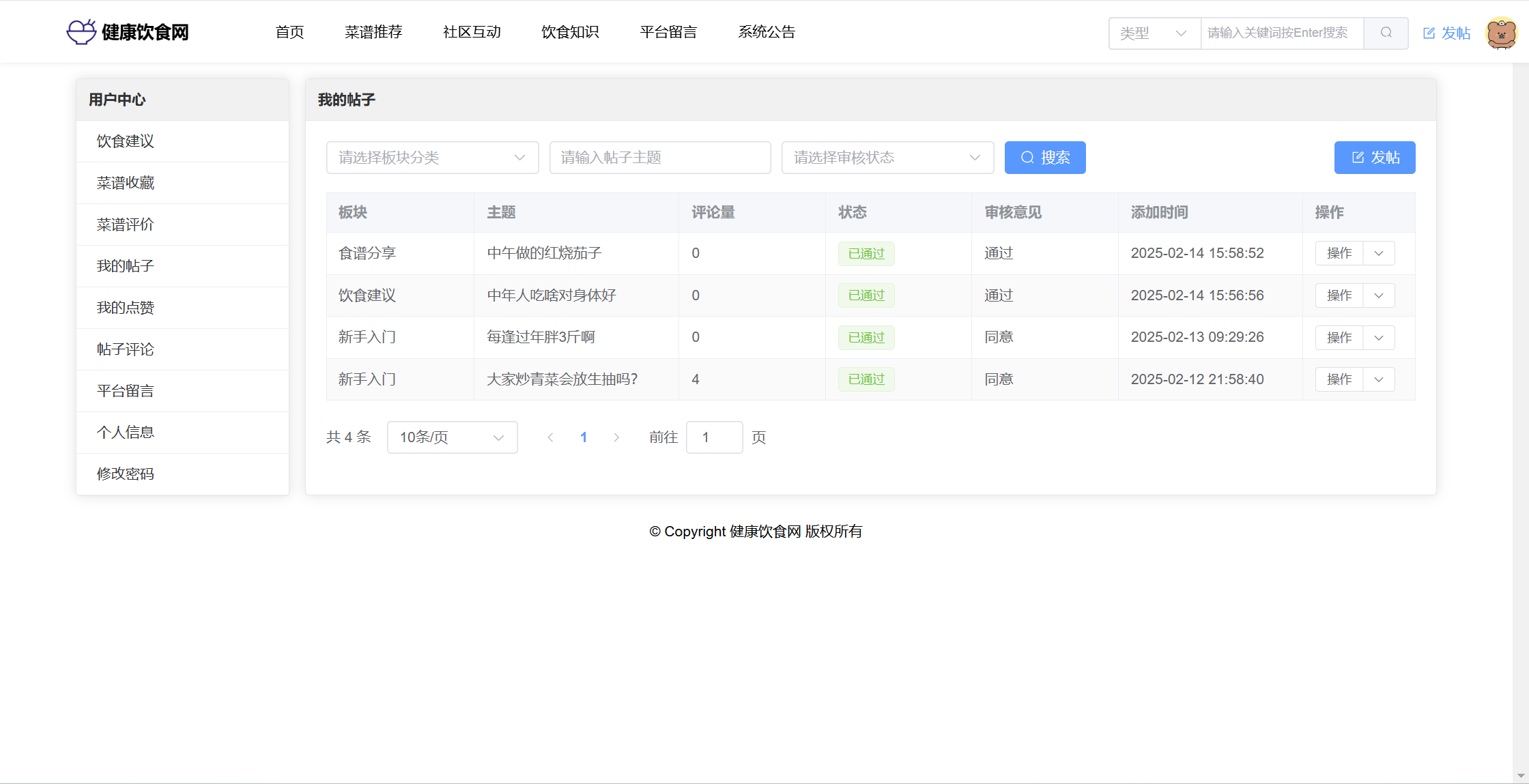 基于SpringBoot+Vue前后端分离的健康饮食网系统(源码+文档),本人原创开发。