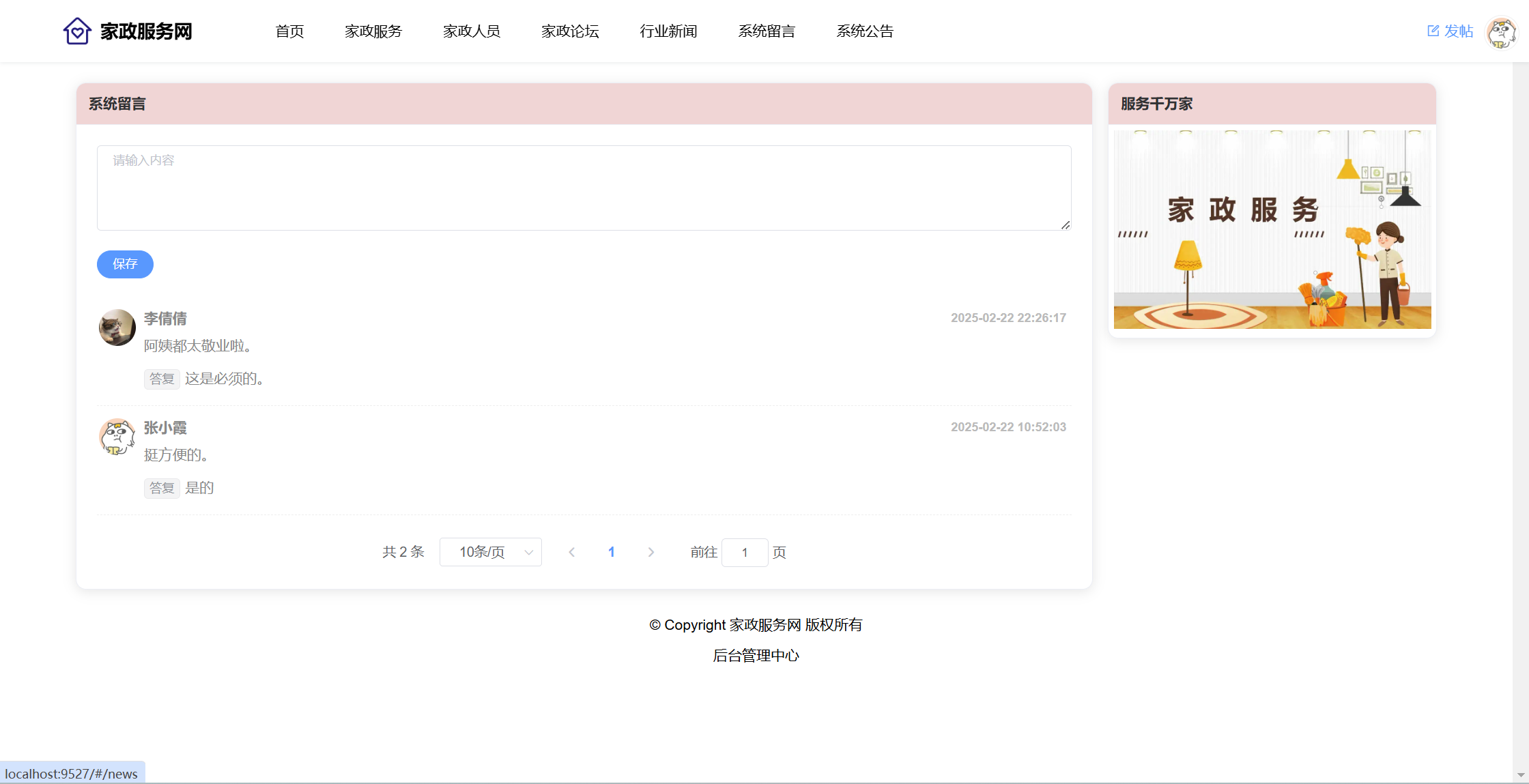 基于SpringBoot+Vue前后端分离的家政服务网系统(源码+文档),本人原创开发。