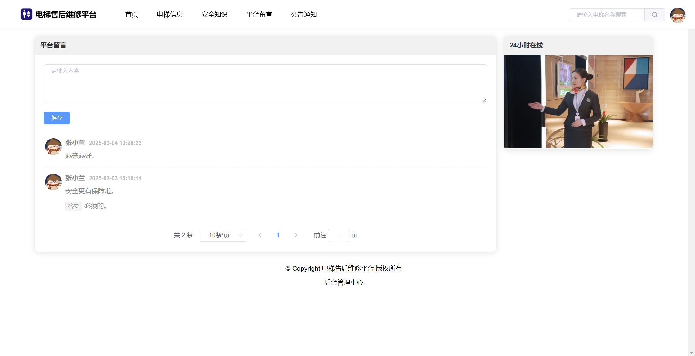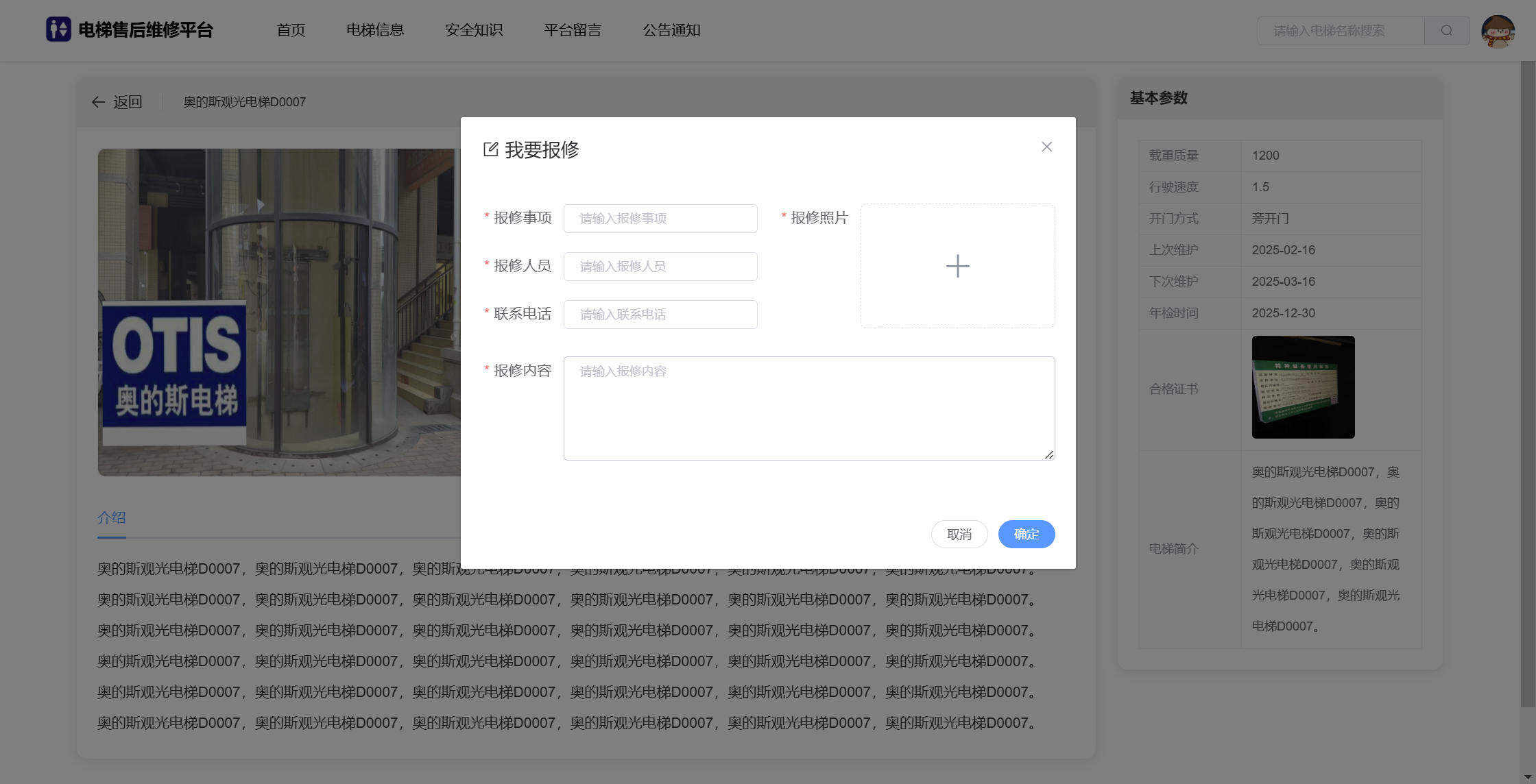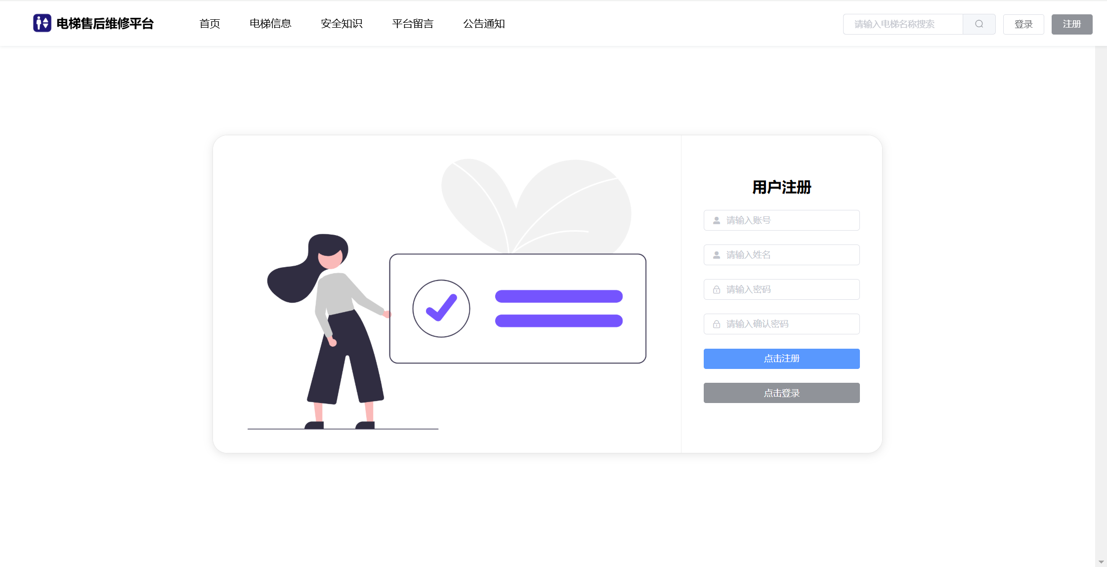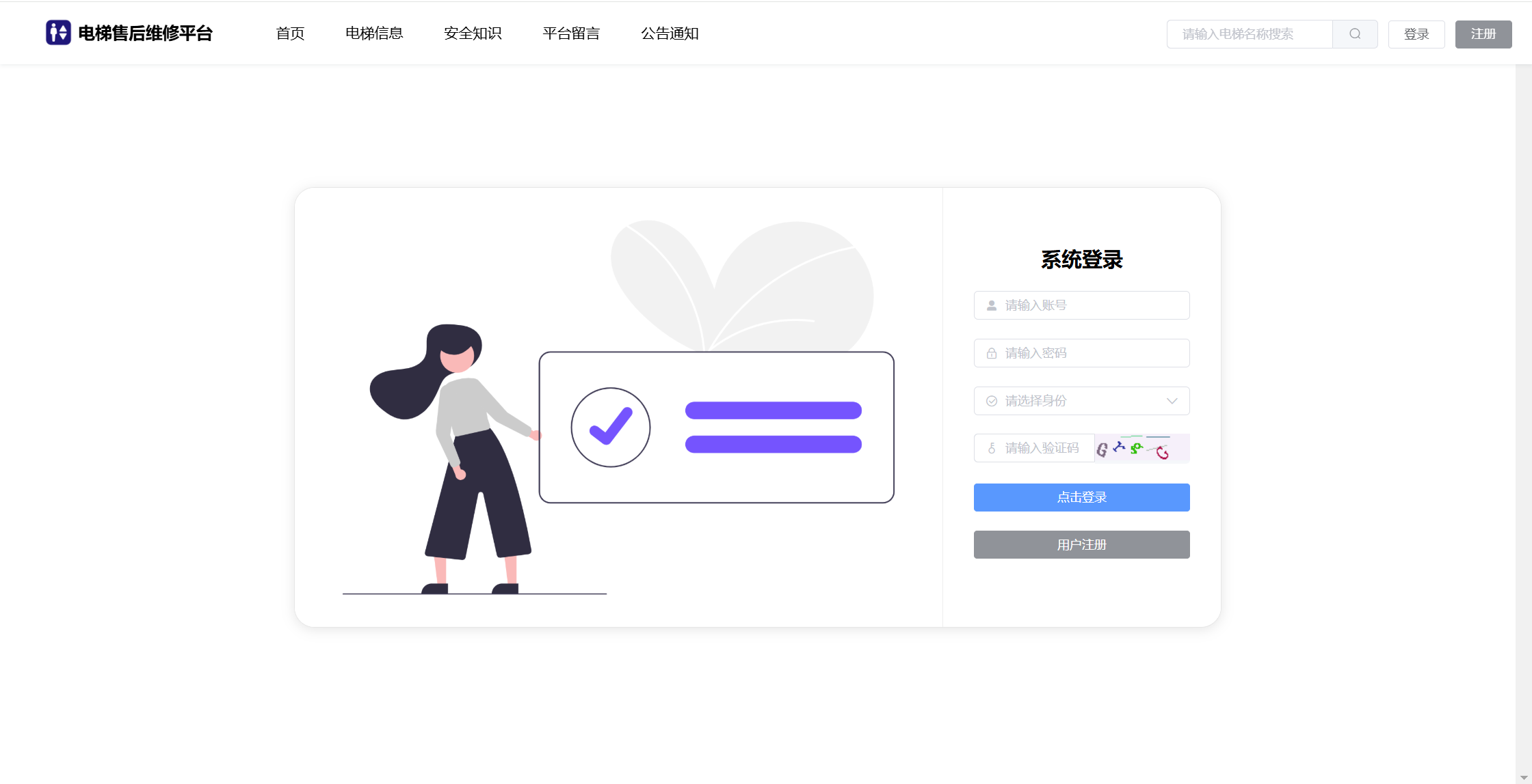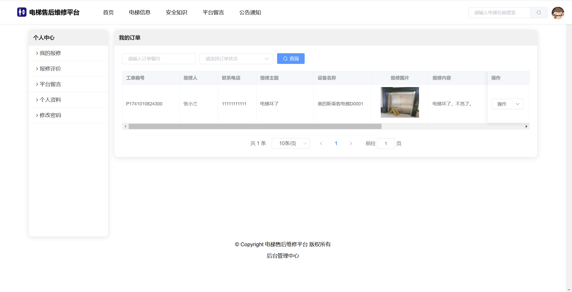 基于SpringBoot+Vue前后端分离的电梯售后维修平台网站,本人原创开发。
