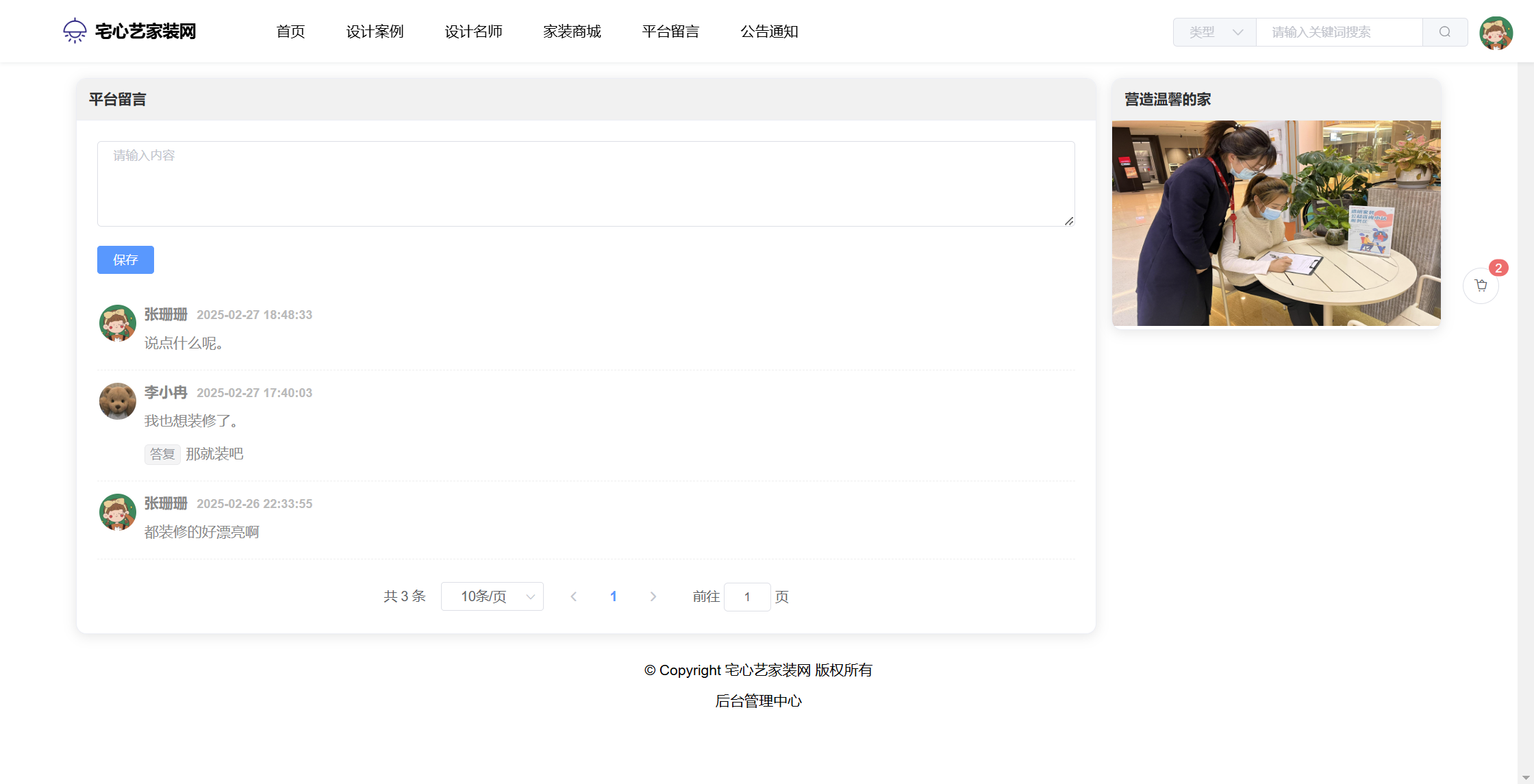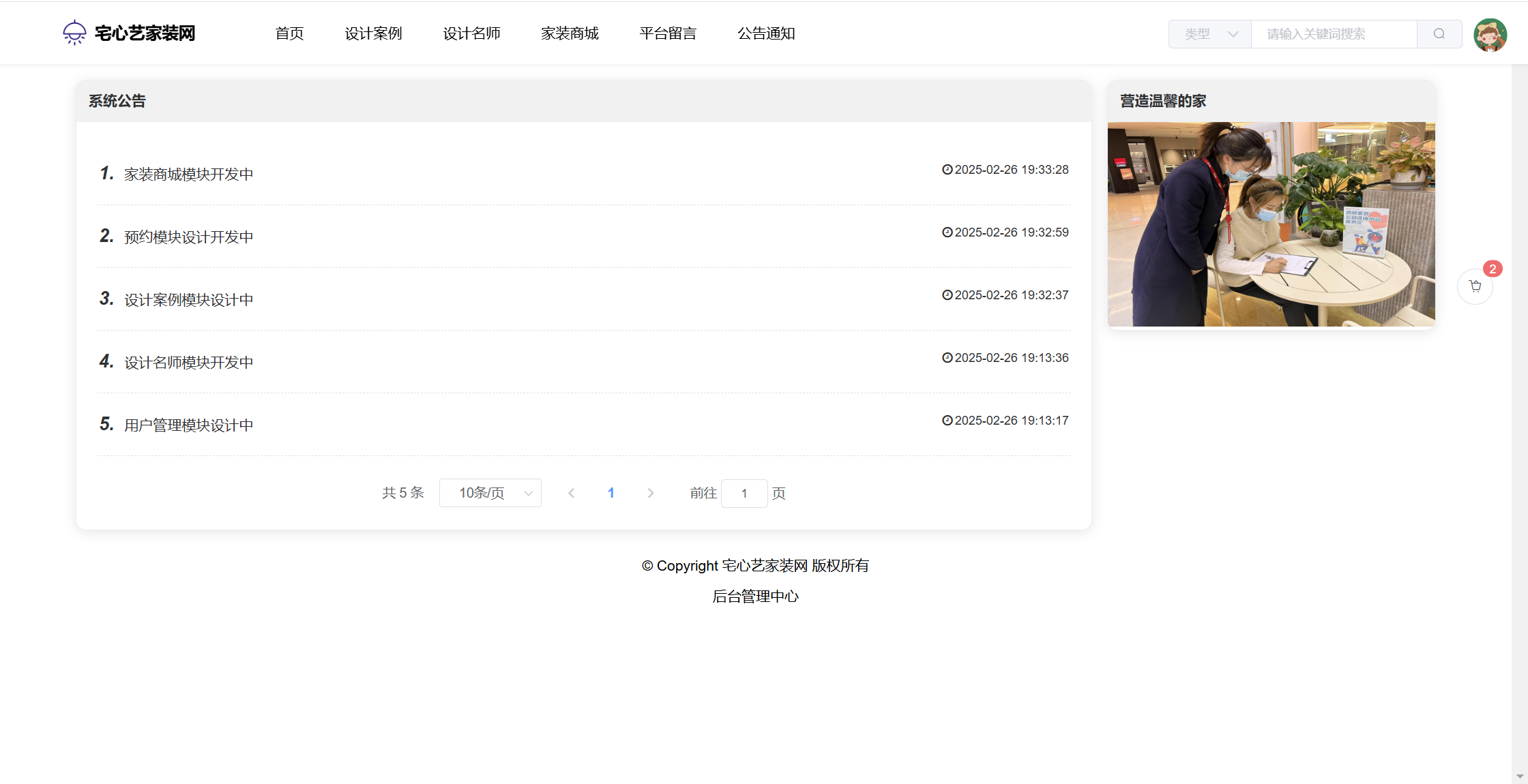基于SpringBoot+Vue前后端分离的宅心艺家装网系统(源码+文档),本人原创开发。
