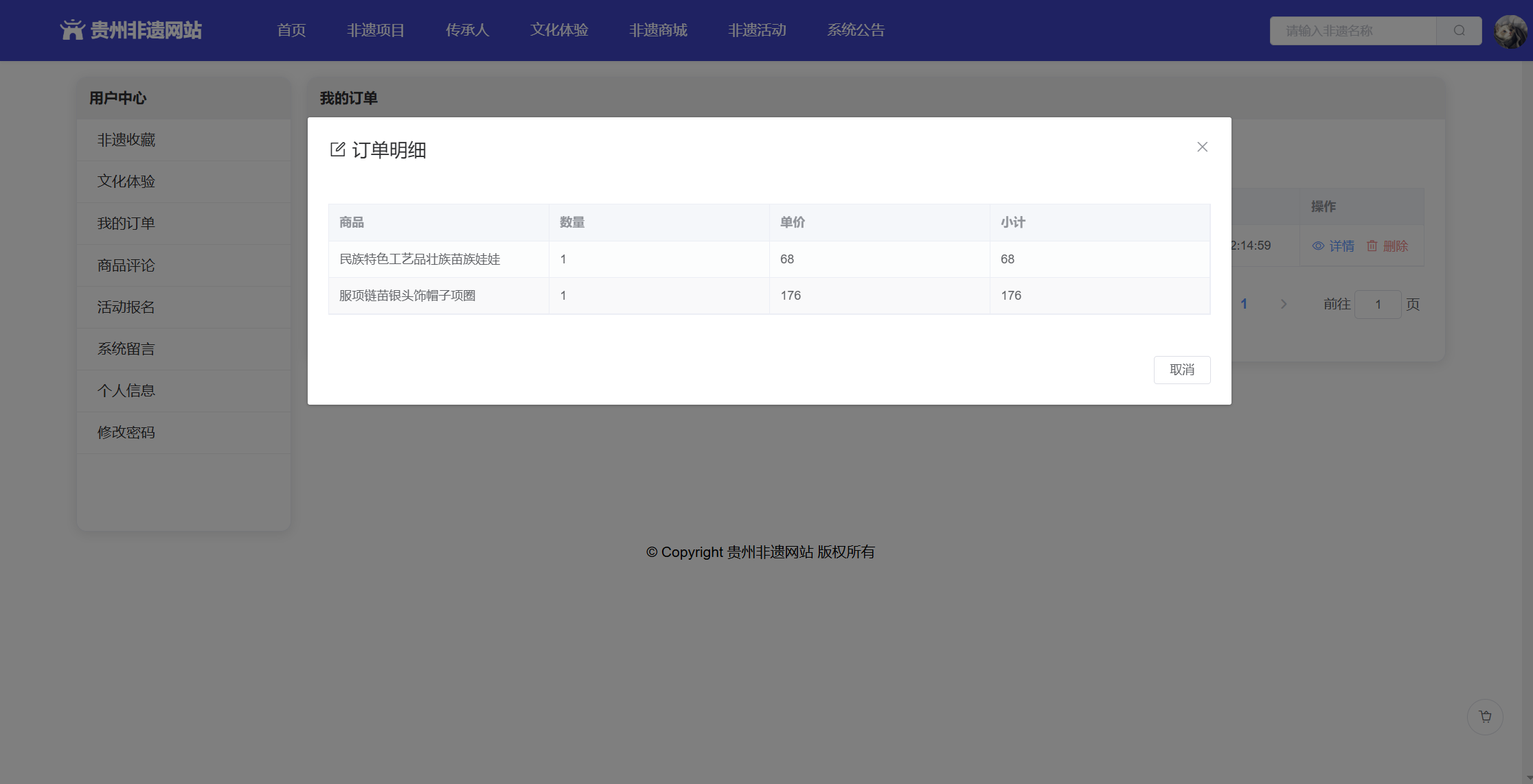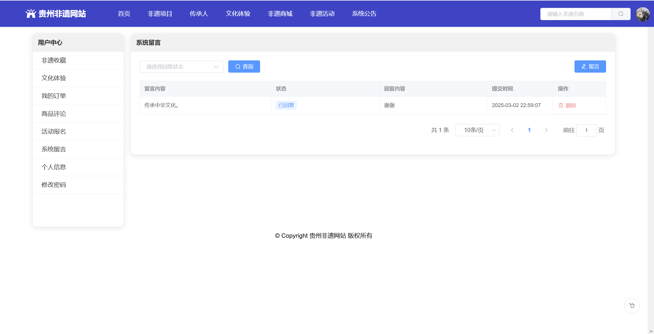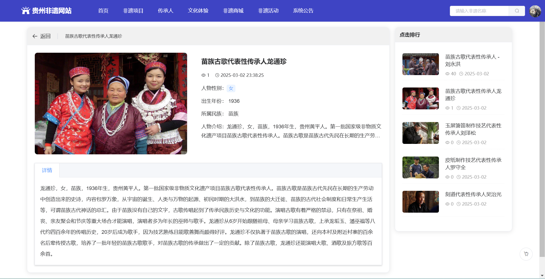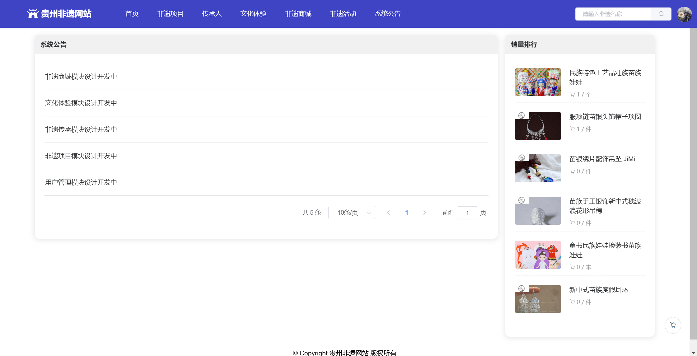 基于SpringBoot+Vue前后端分离的贵州非遗网站,本人原创开发。