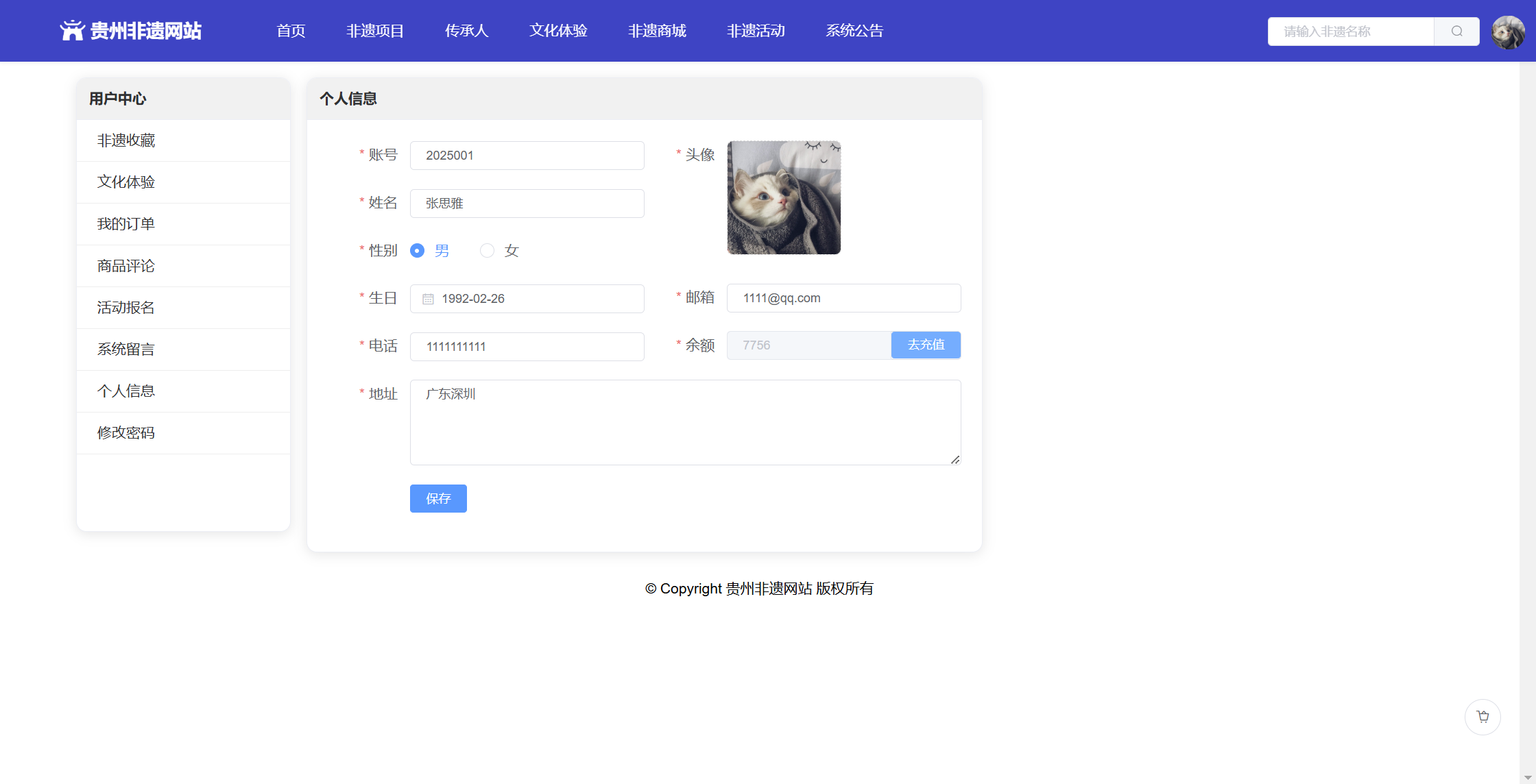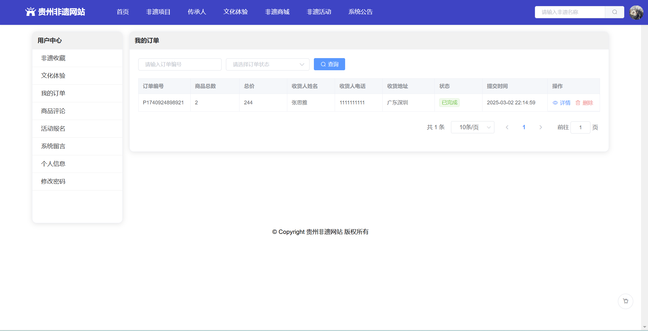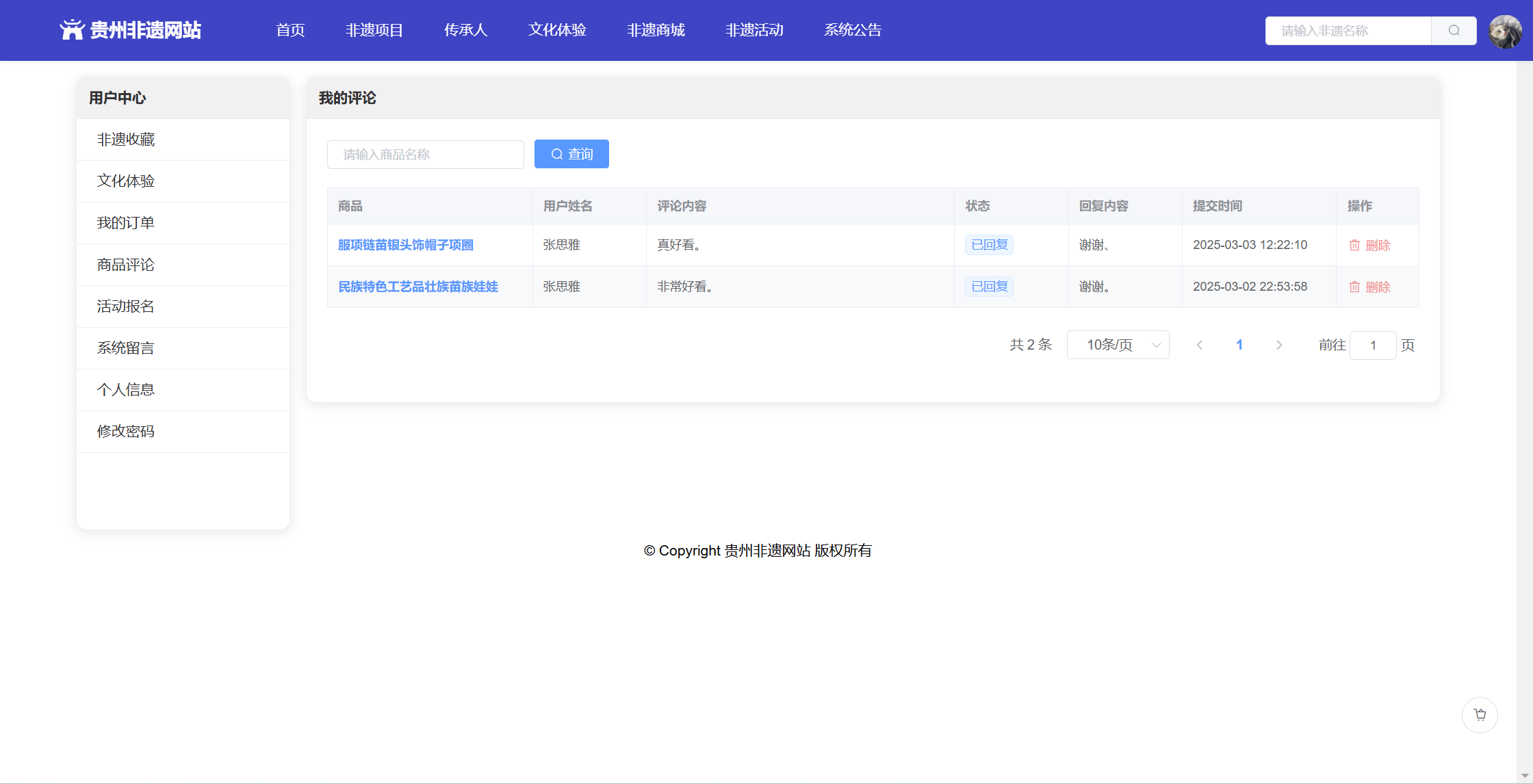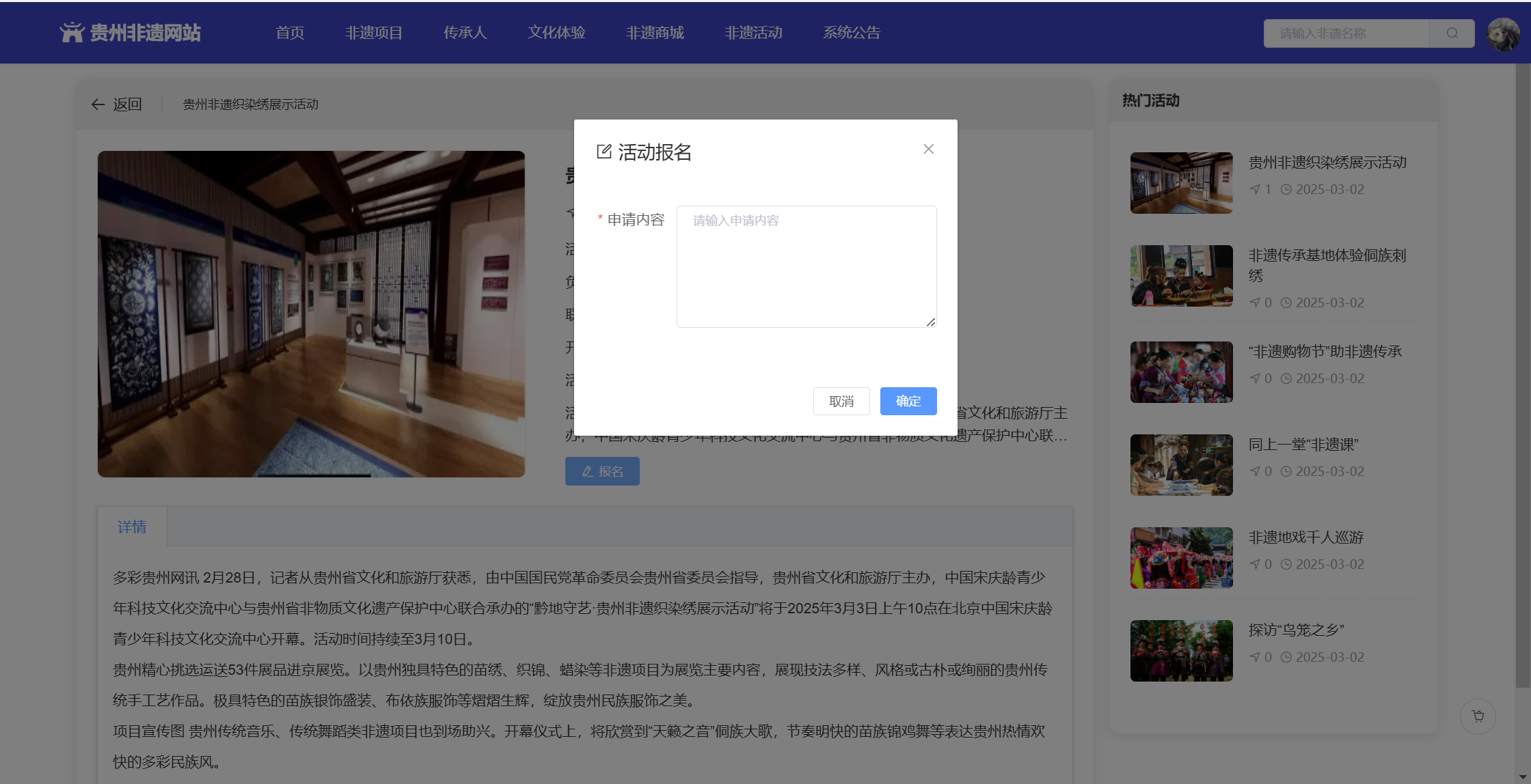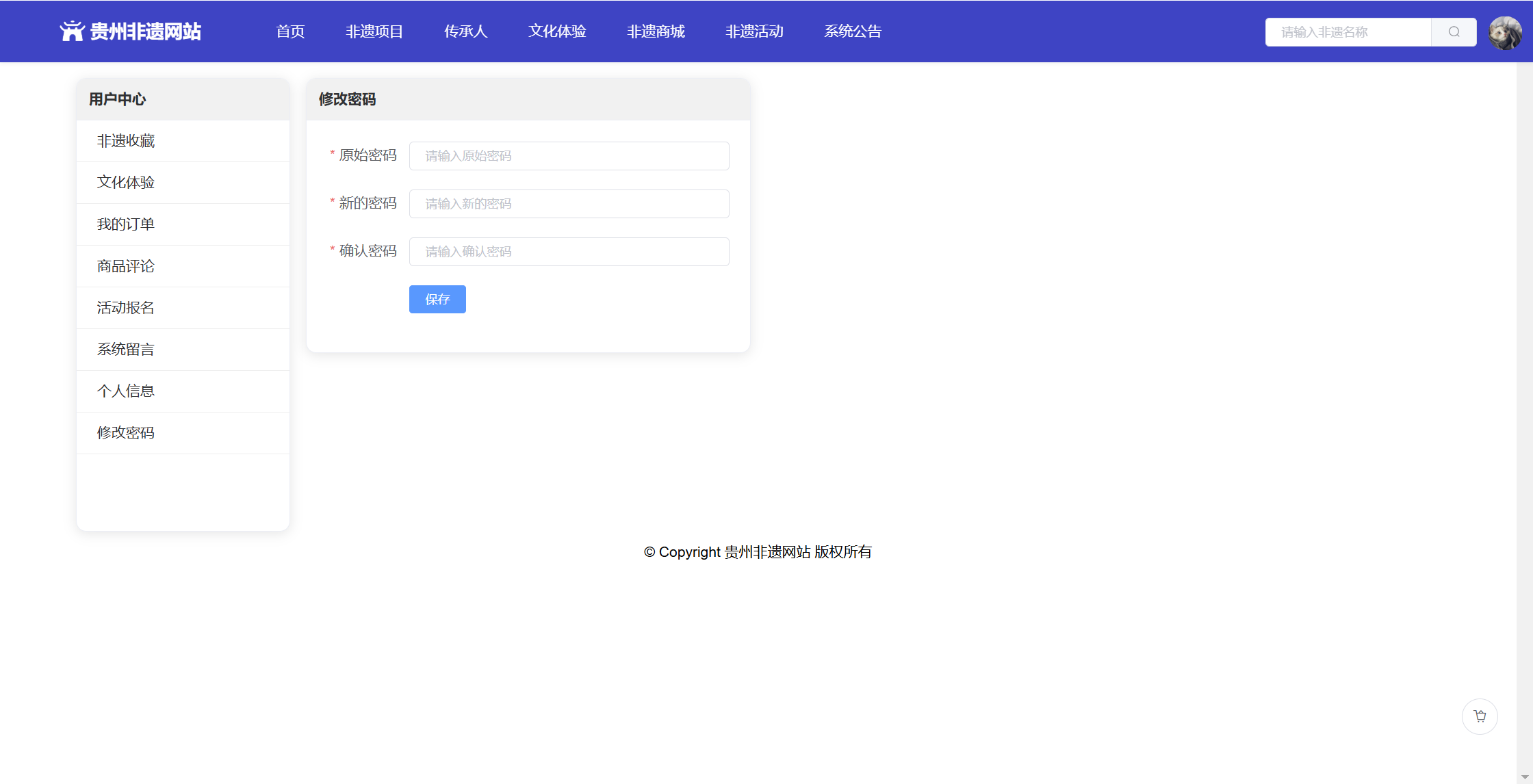 基于SpringBoot+Vue前后端分离的贵州非遗网站,本人原创开发。