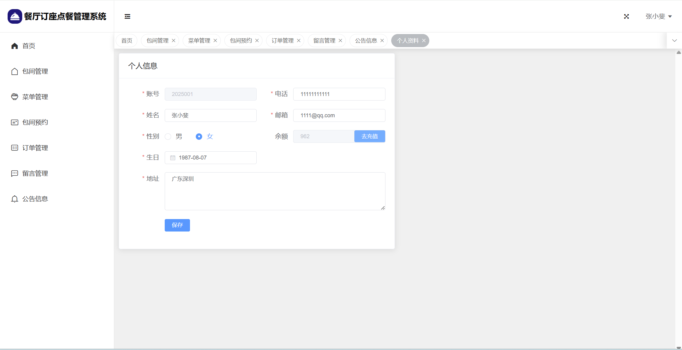 【原创】SpringBoot+Vue餐厅订座点餐管理系统