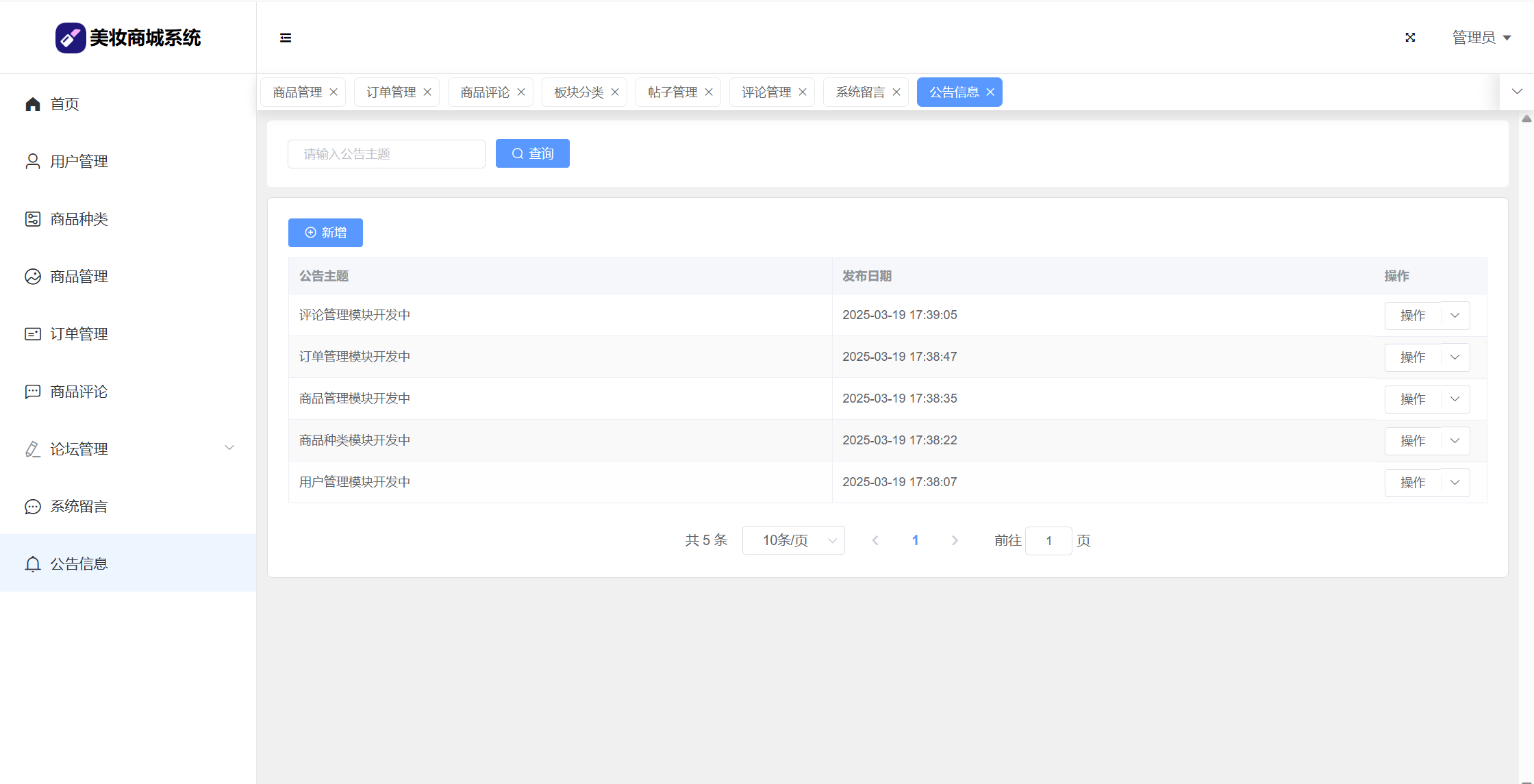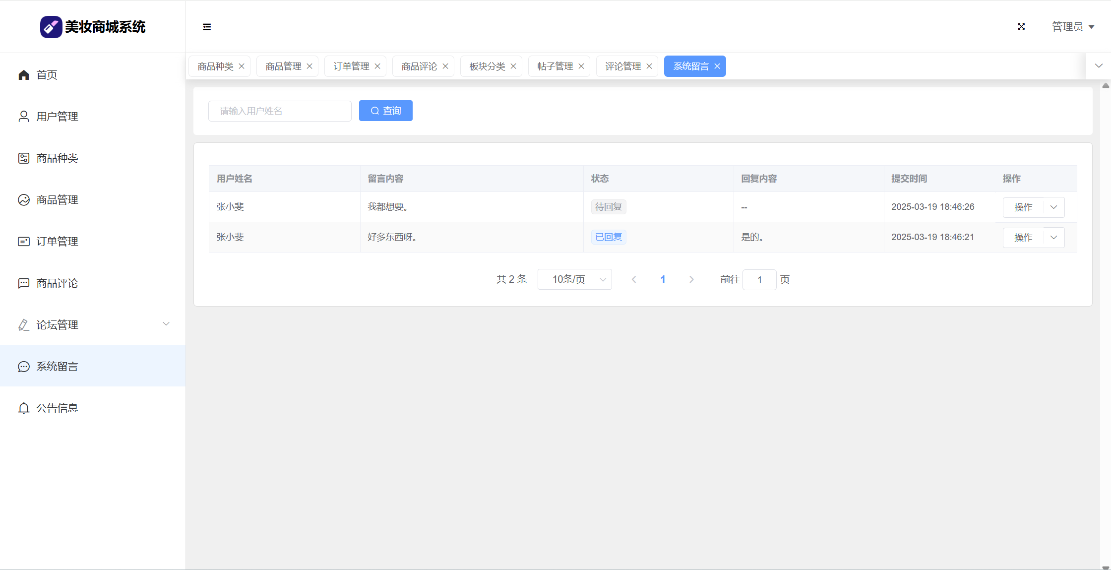 Tags: springboot vue 前后端分离 美妆商城论坛