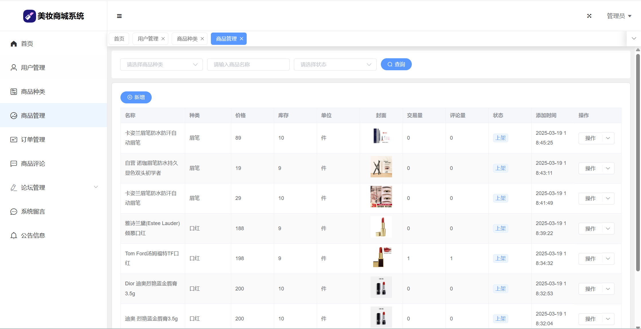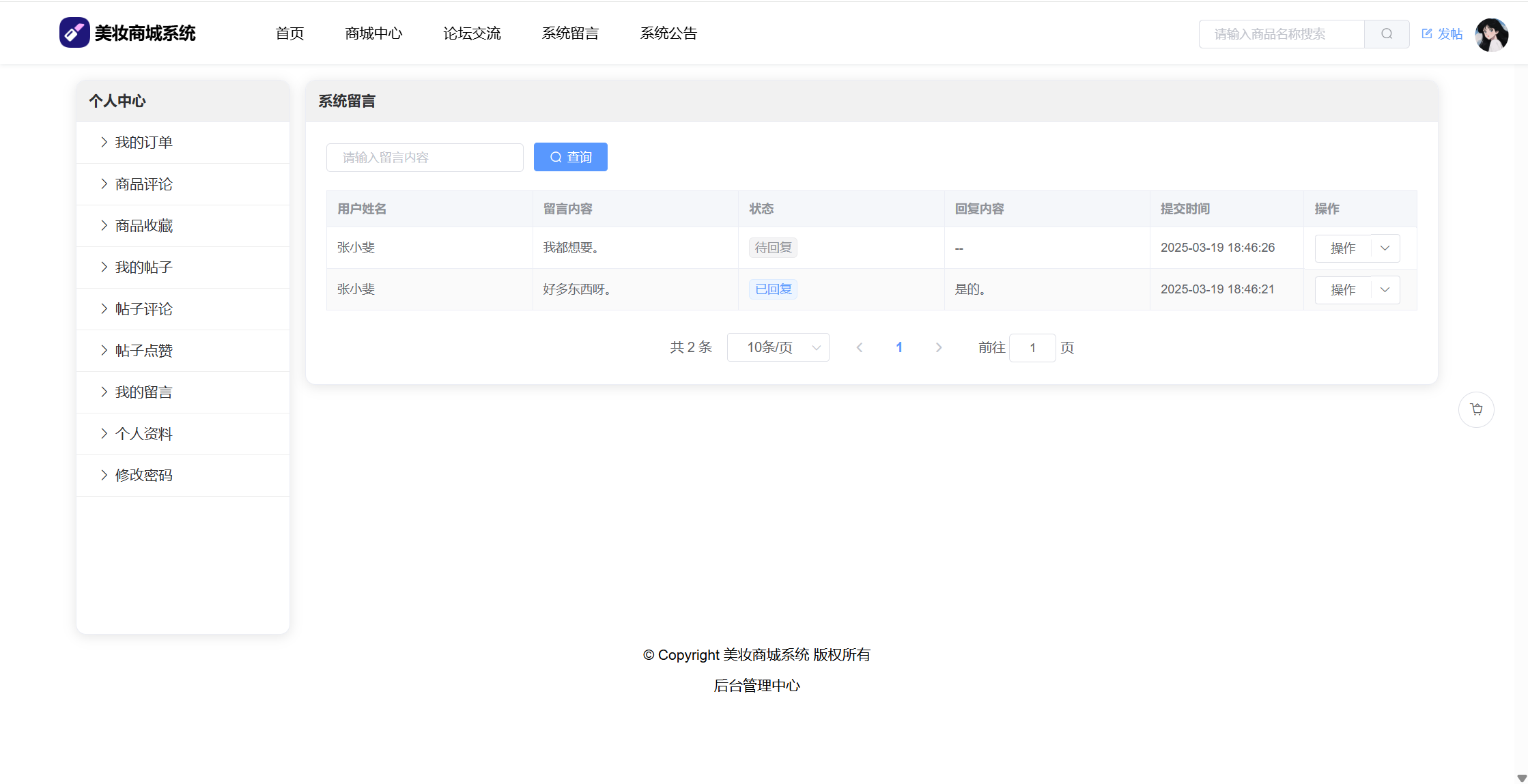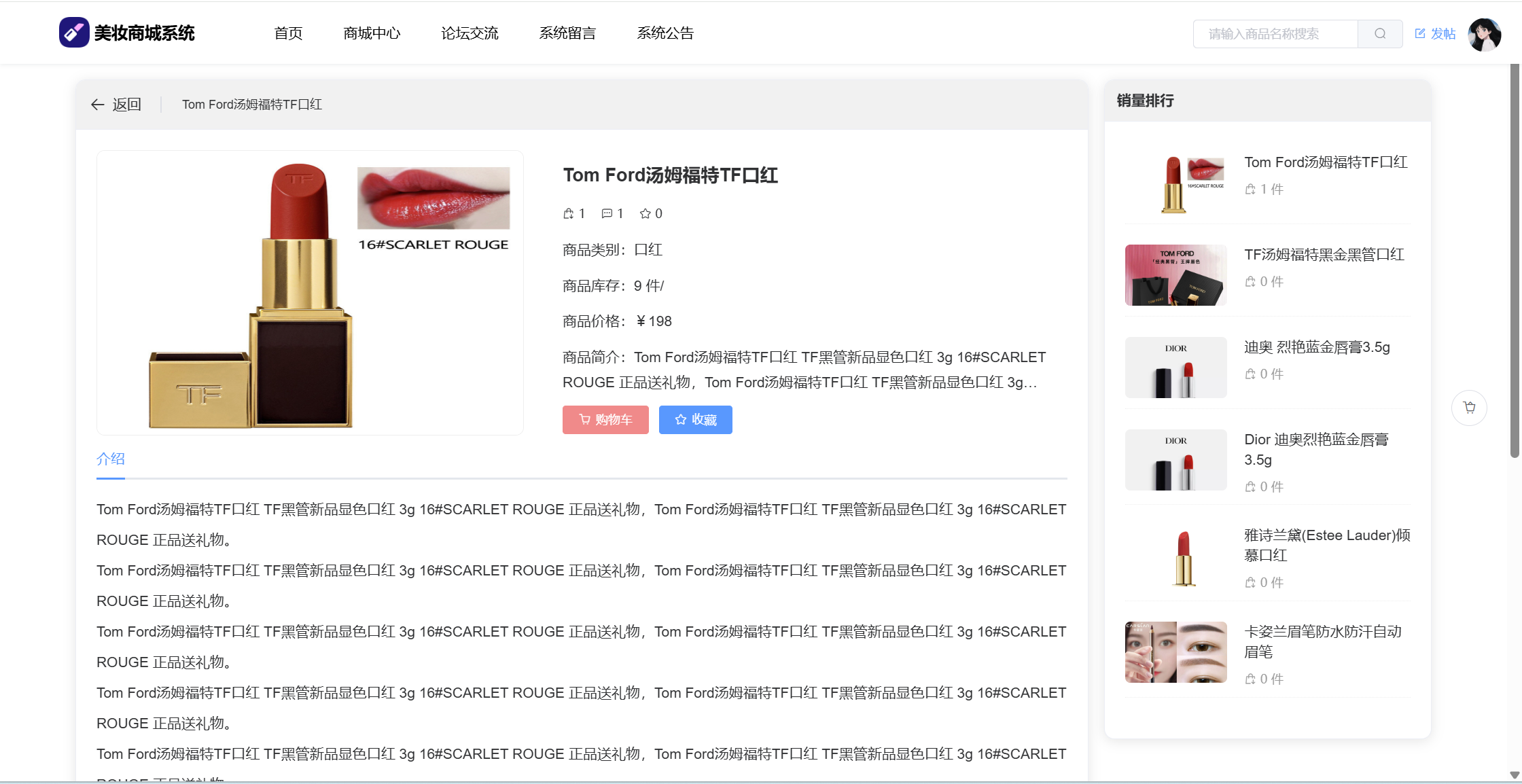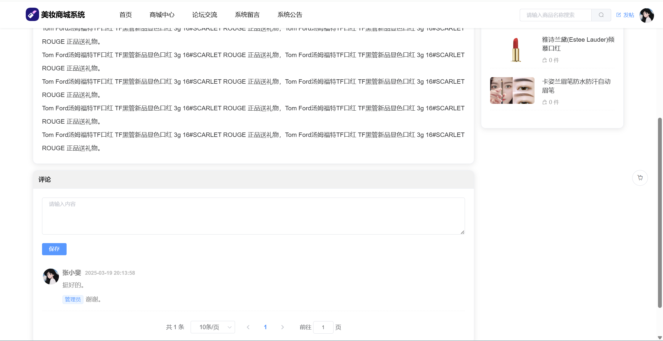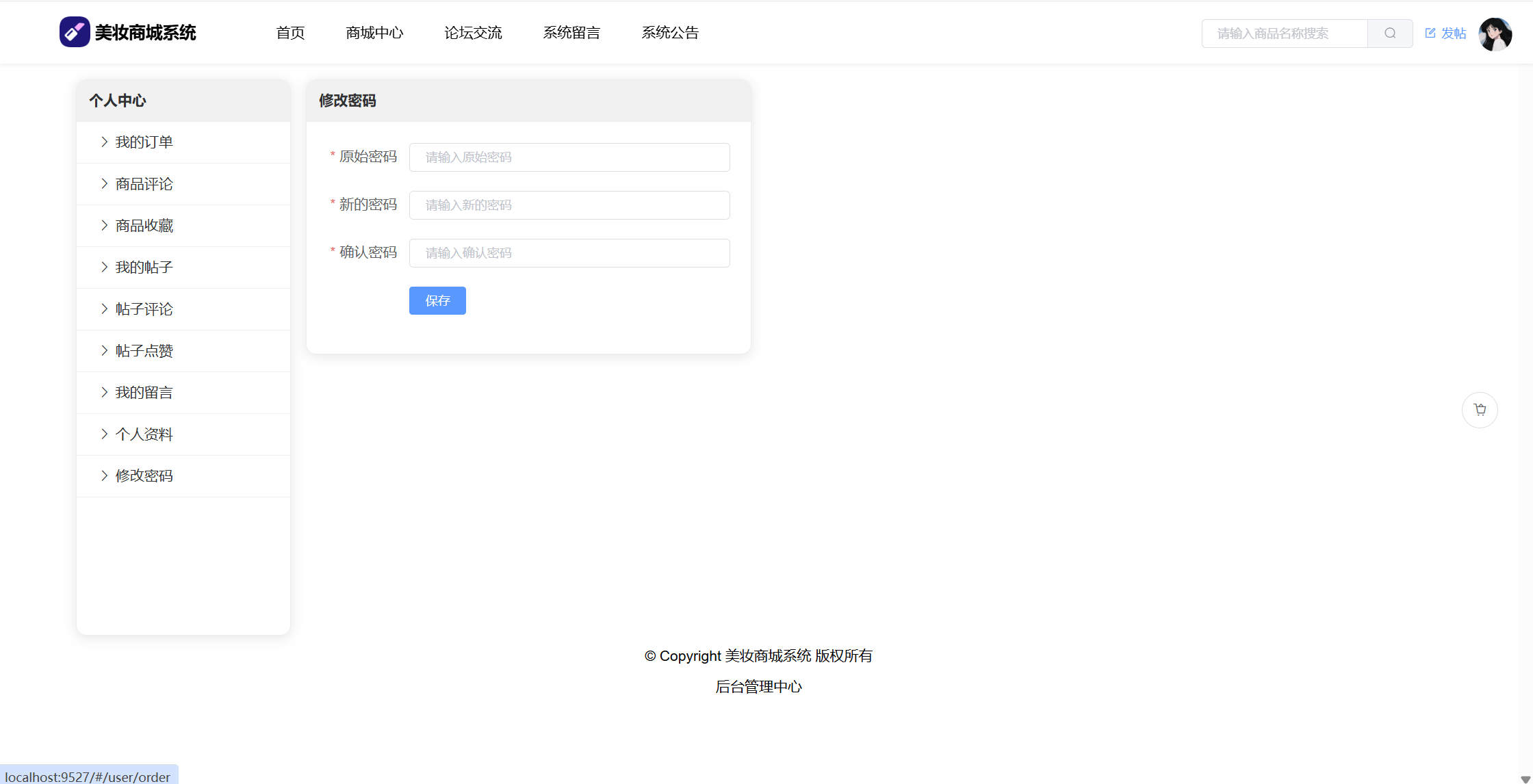 基于SpringBoot+Vue前后端分离的美妆商城论坛系统,本人原创开发。