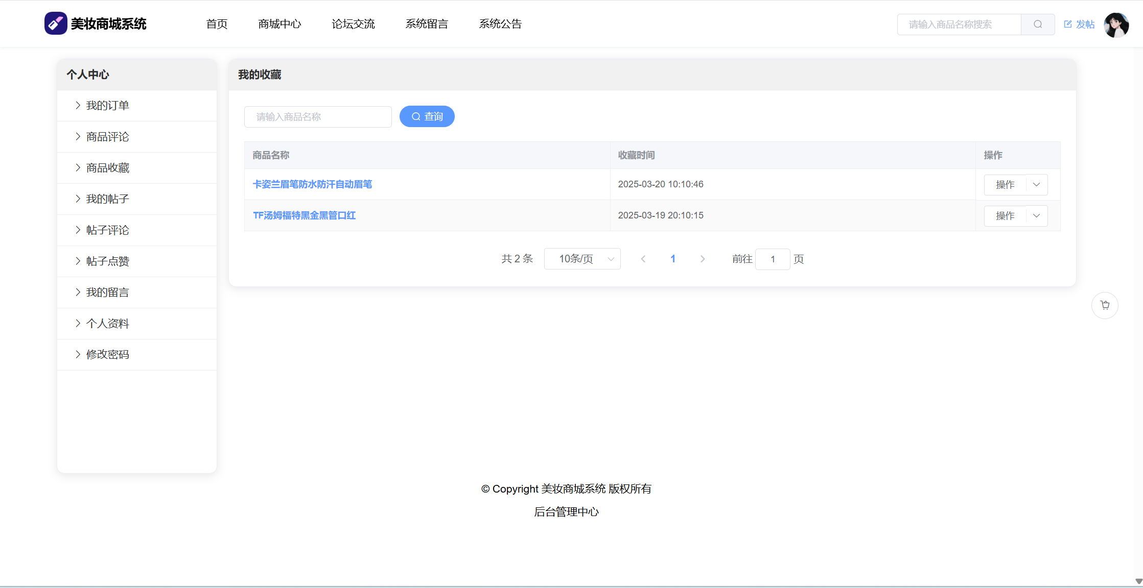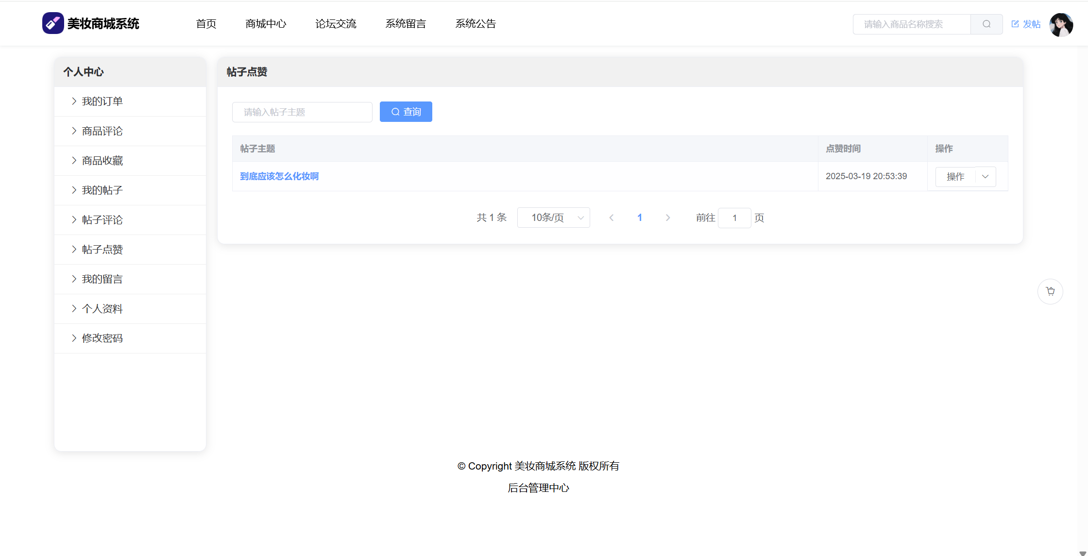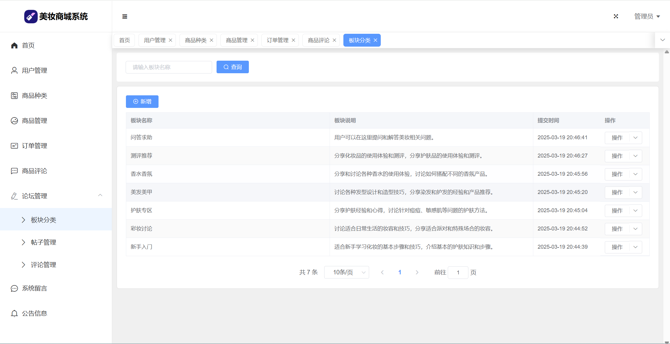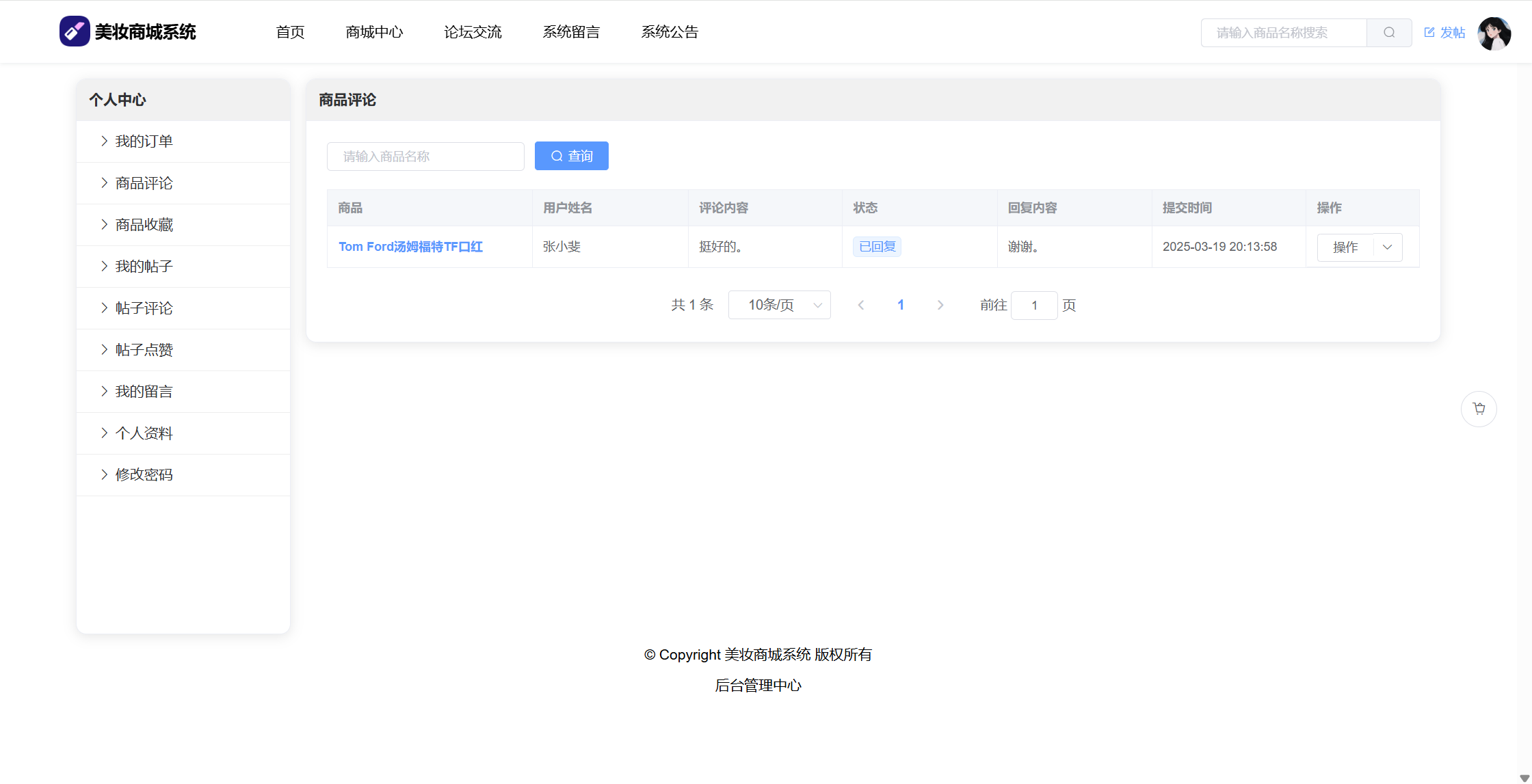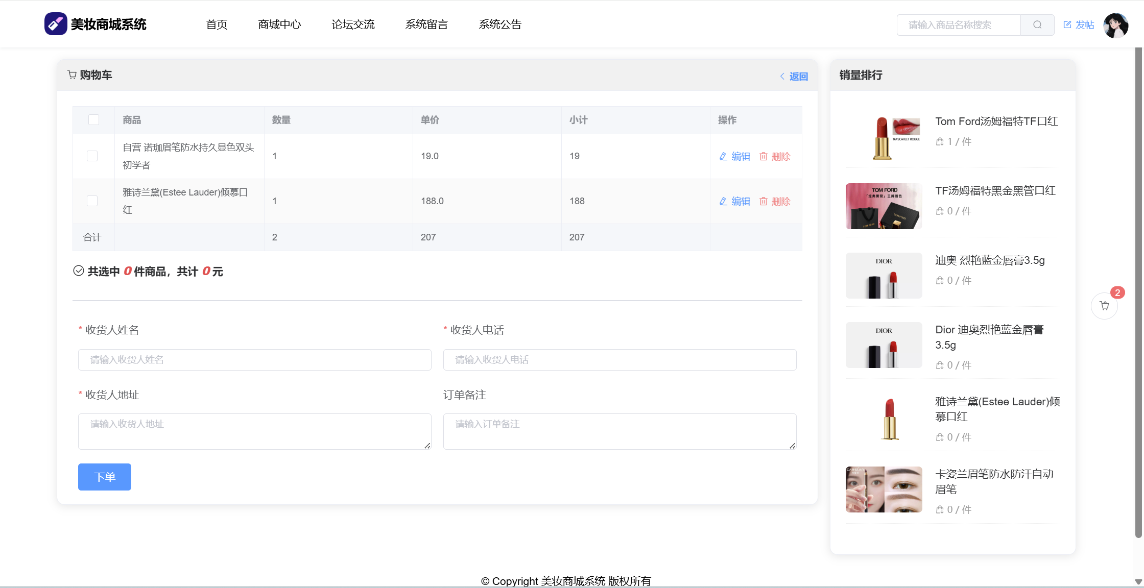 基于SpringBoot+Vue前后端分离的美妆商城论坛系统,本人原创开发。