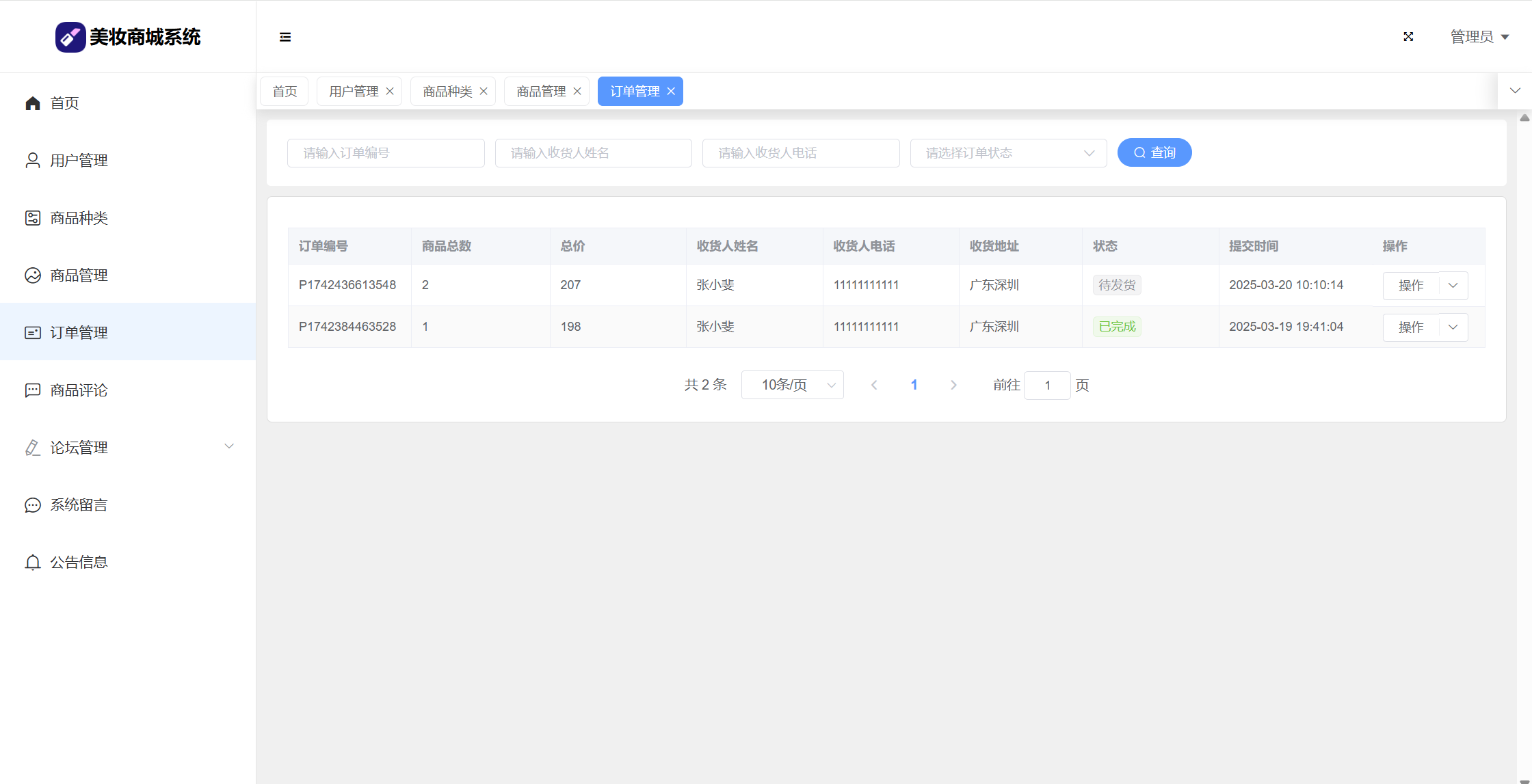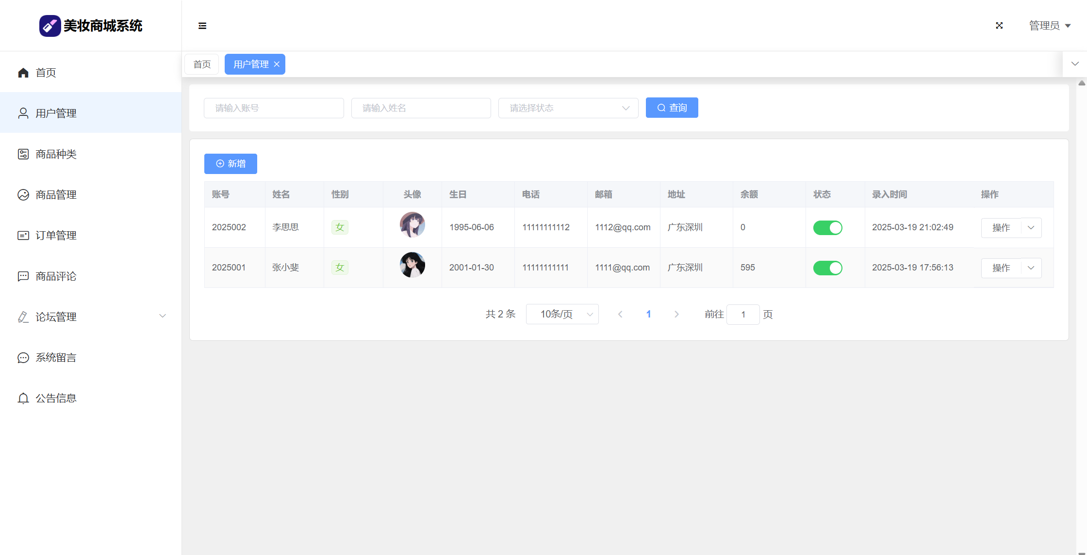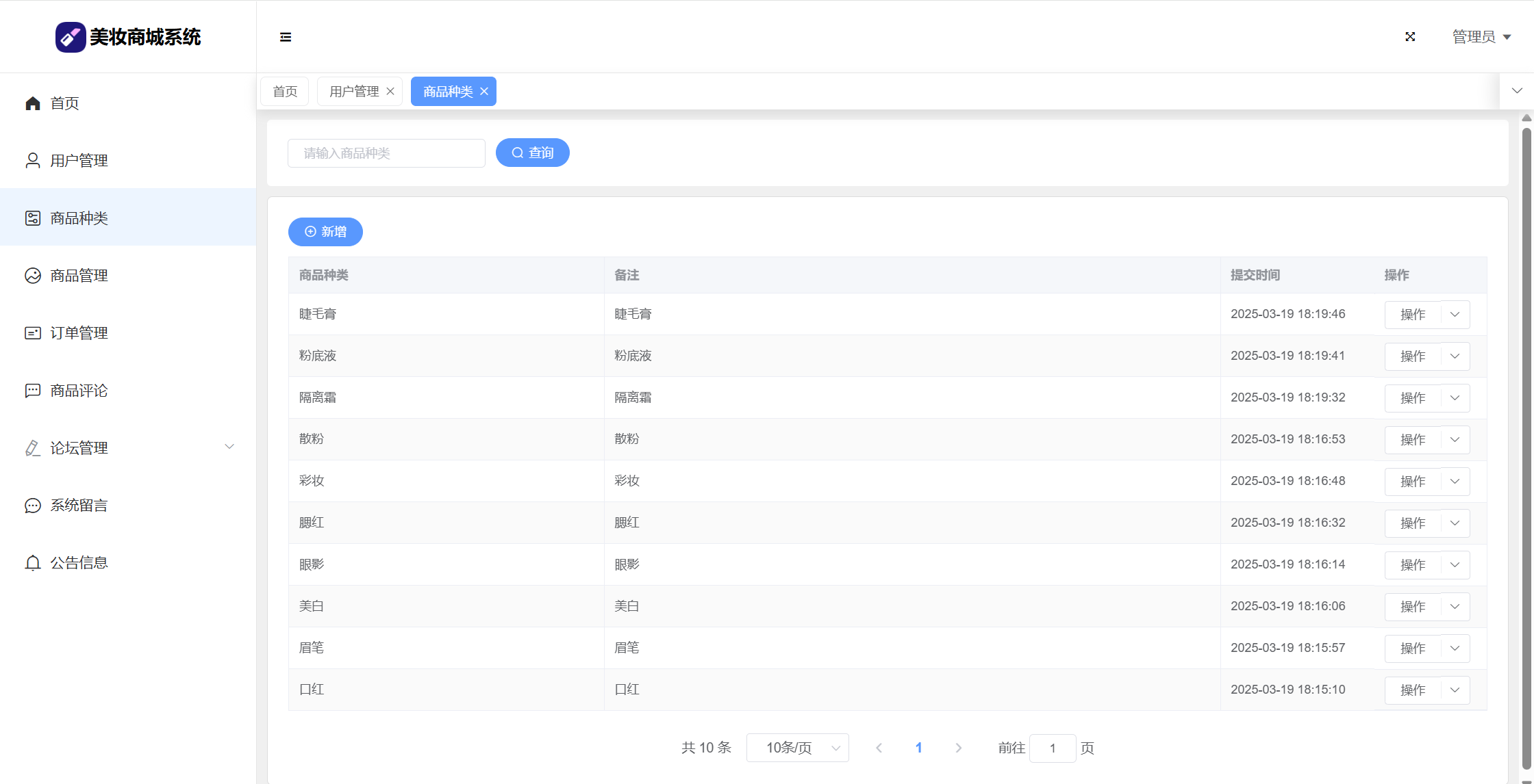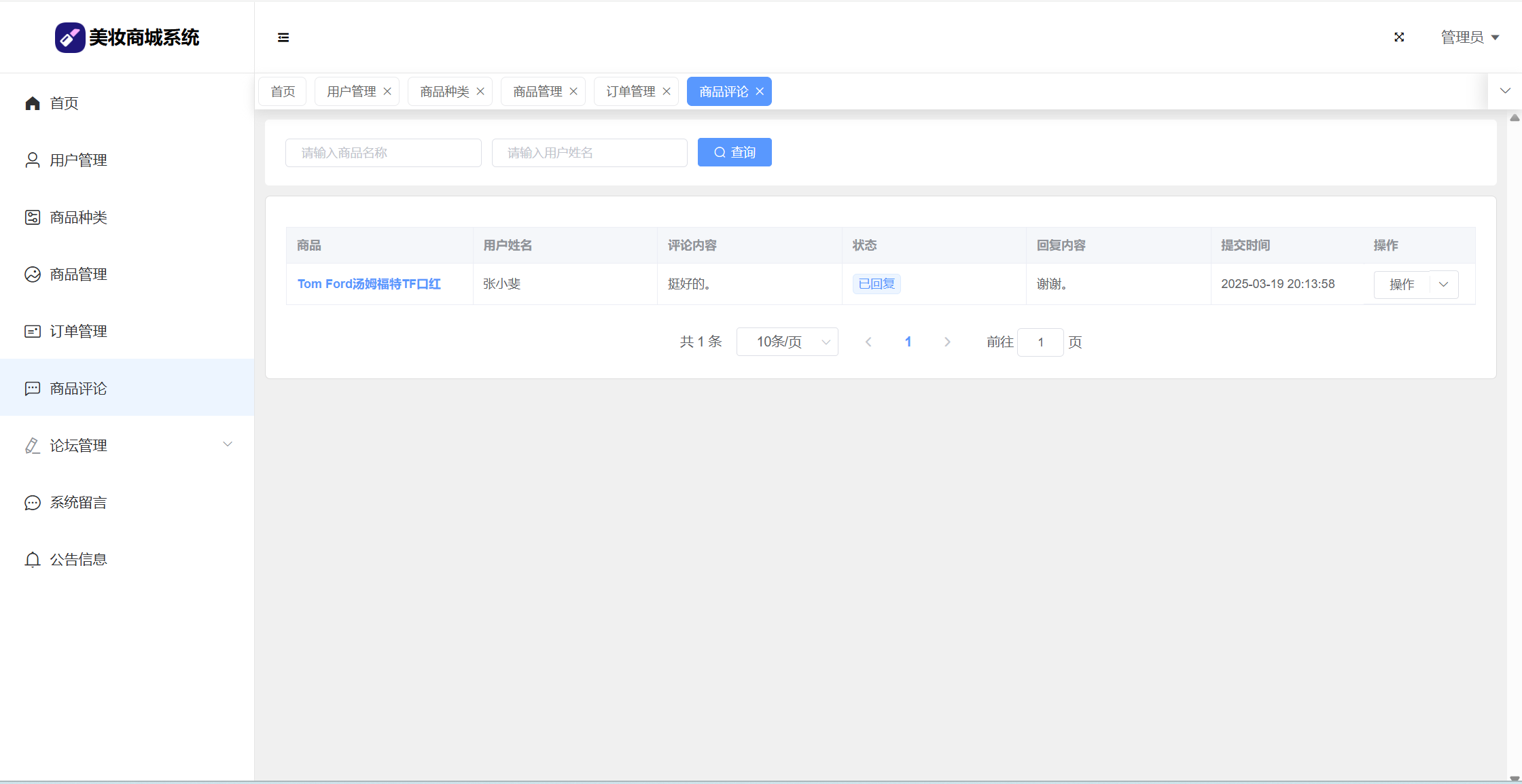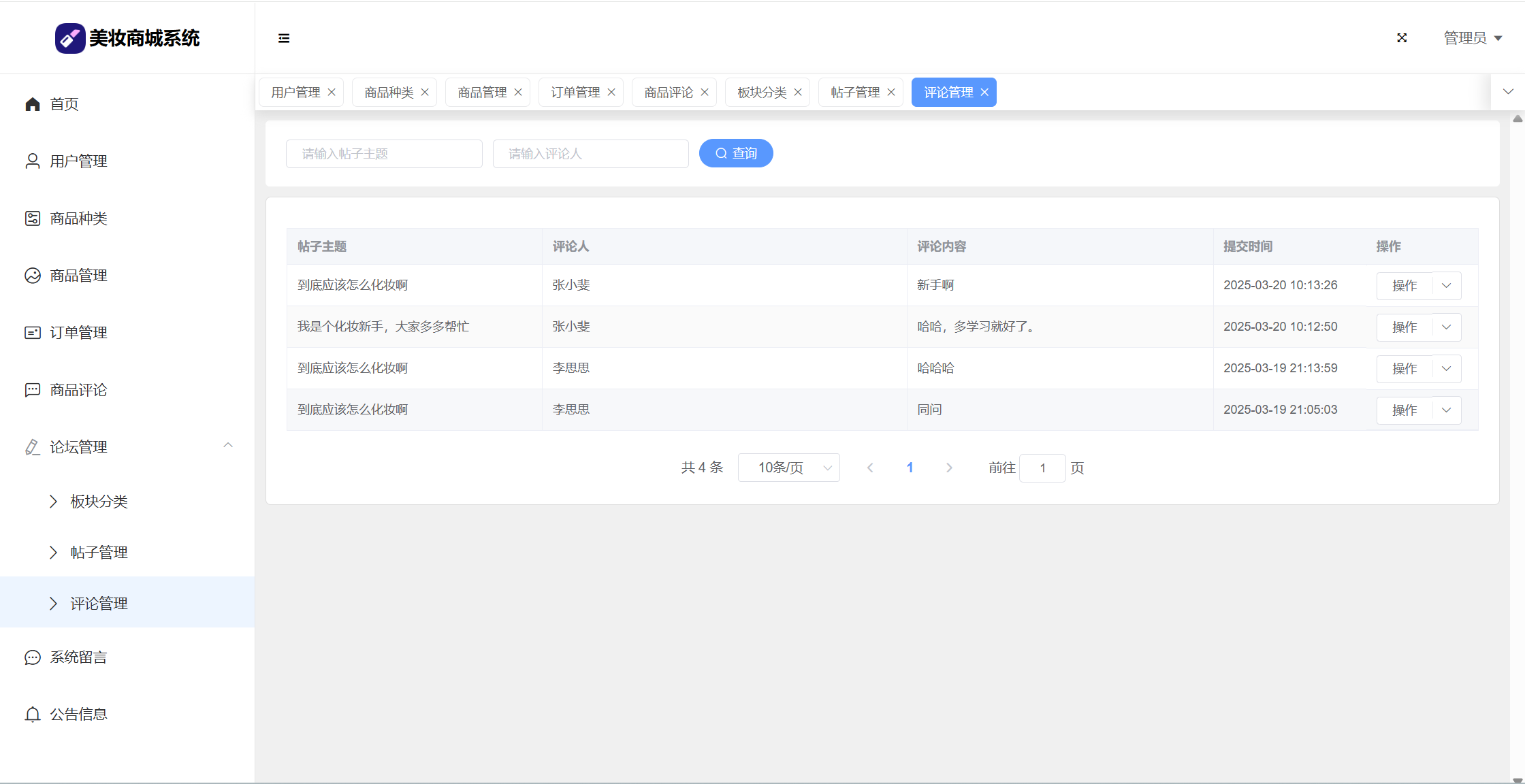 基于SpringBoot+Vue前后端分离的美妆商城论坛系统,本人原创开发。